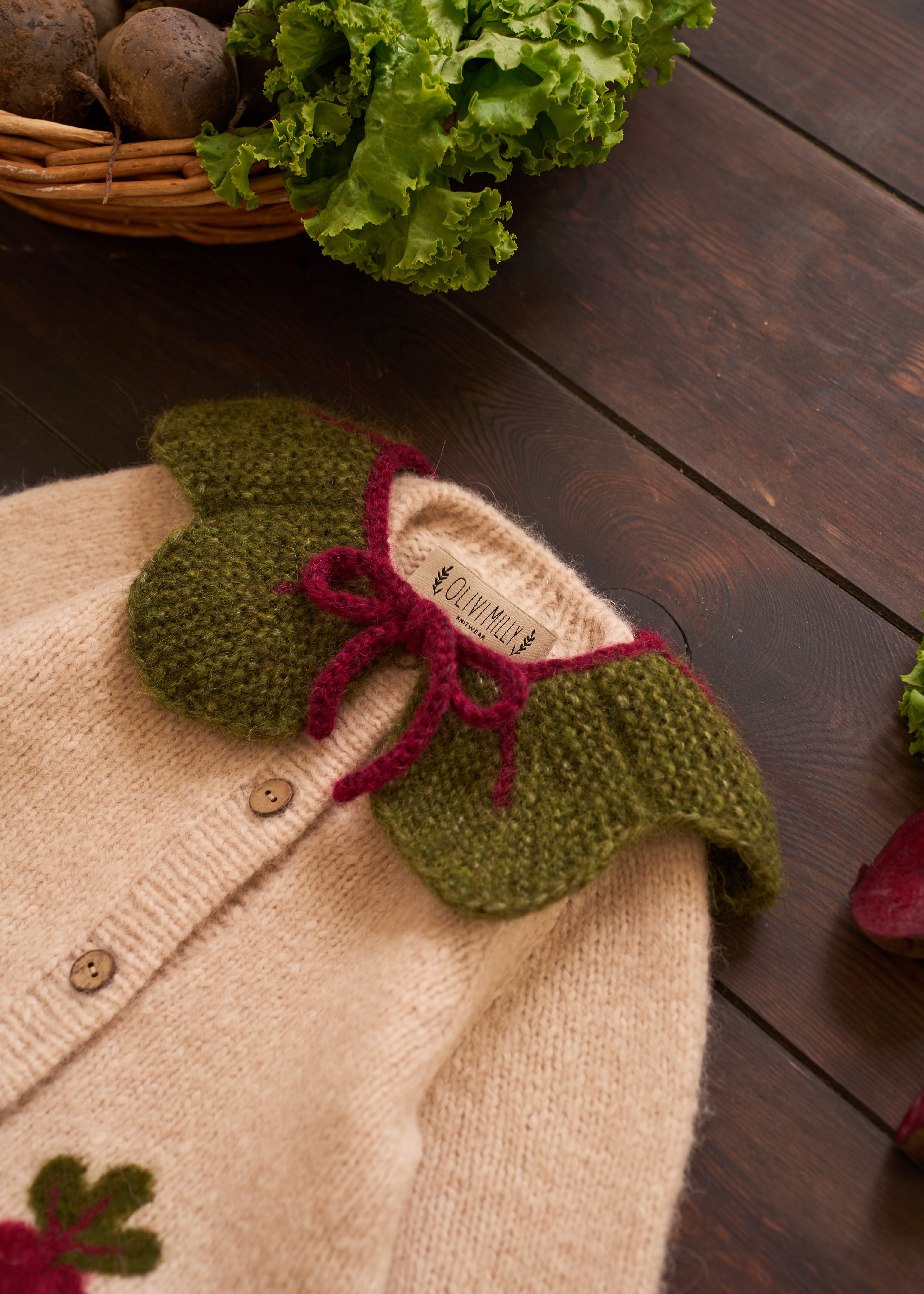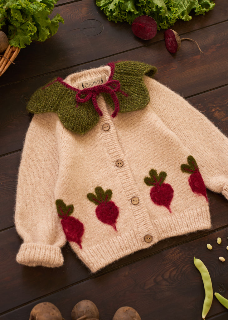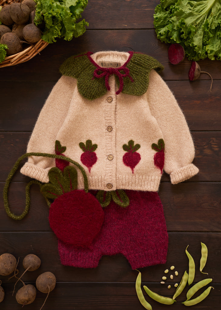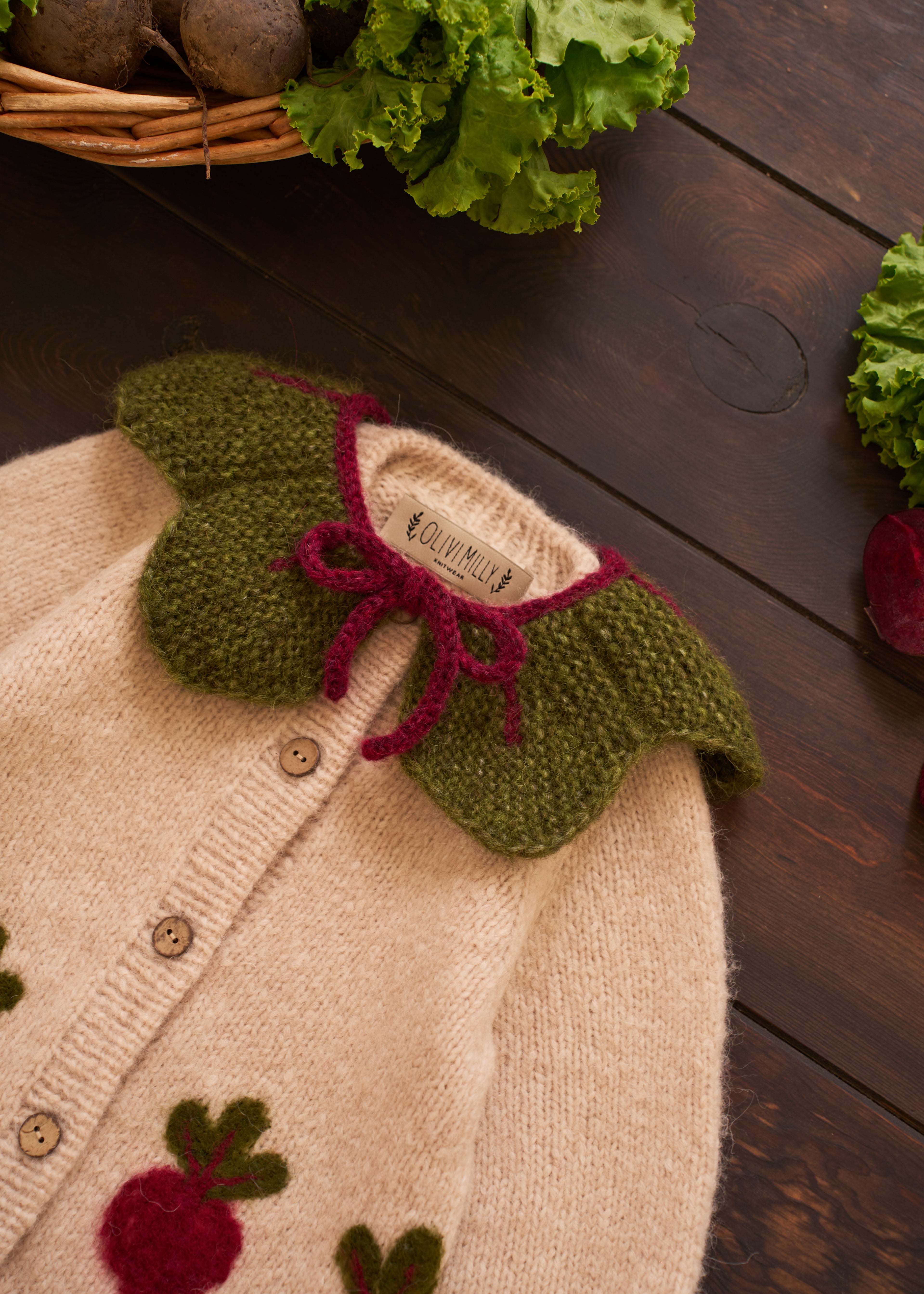 充滿童趣的Beet 針織領片,是一款可拆卸的針織配件。這款輕盈俏皮的領子可以搭配毛衣、洋裝或連身衣,瞬間提升整體造型。它與甜菜系列的其他單品完美契合,為孩子的衣櫥增添了一抹故事性色彩。