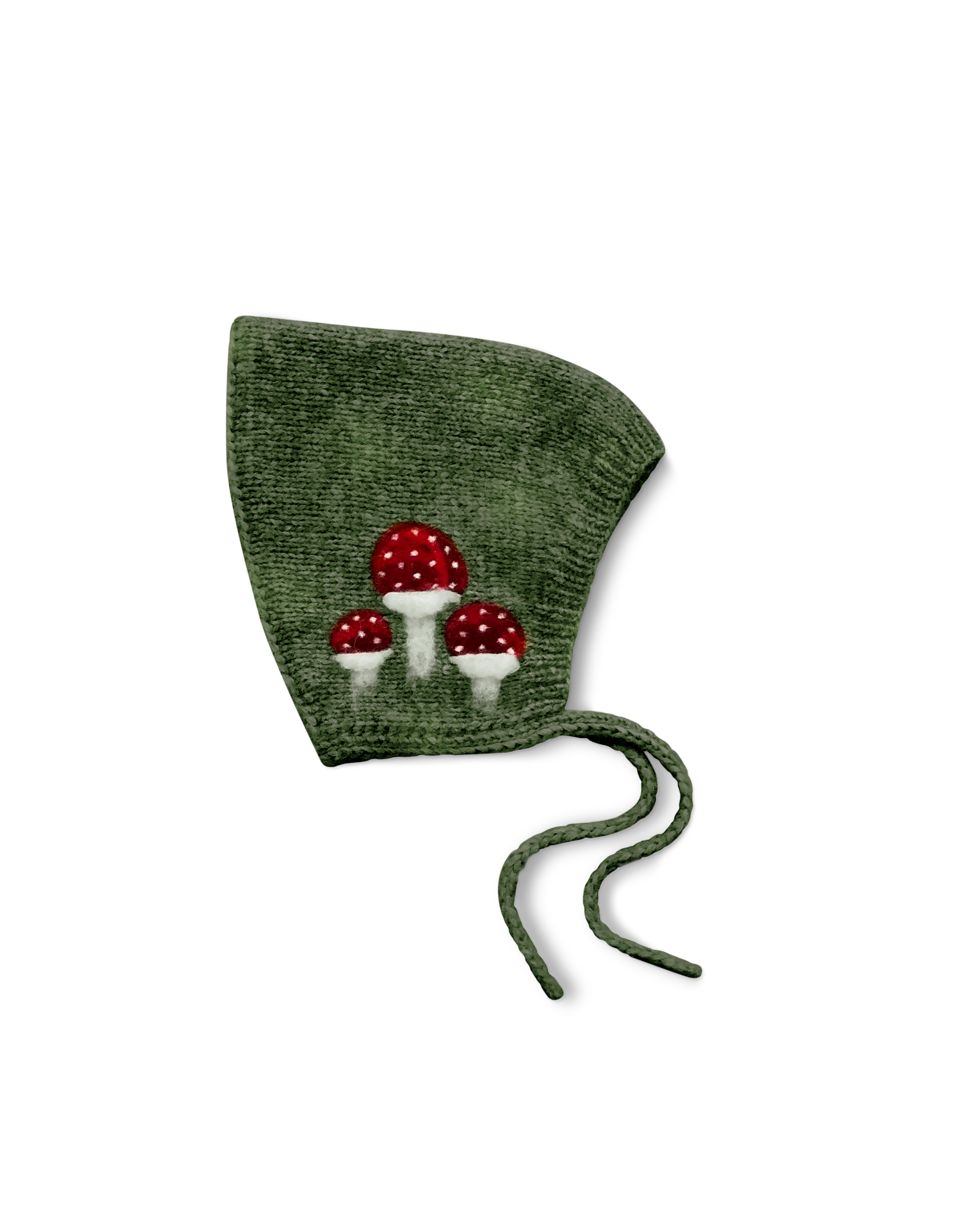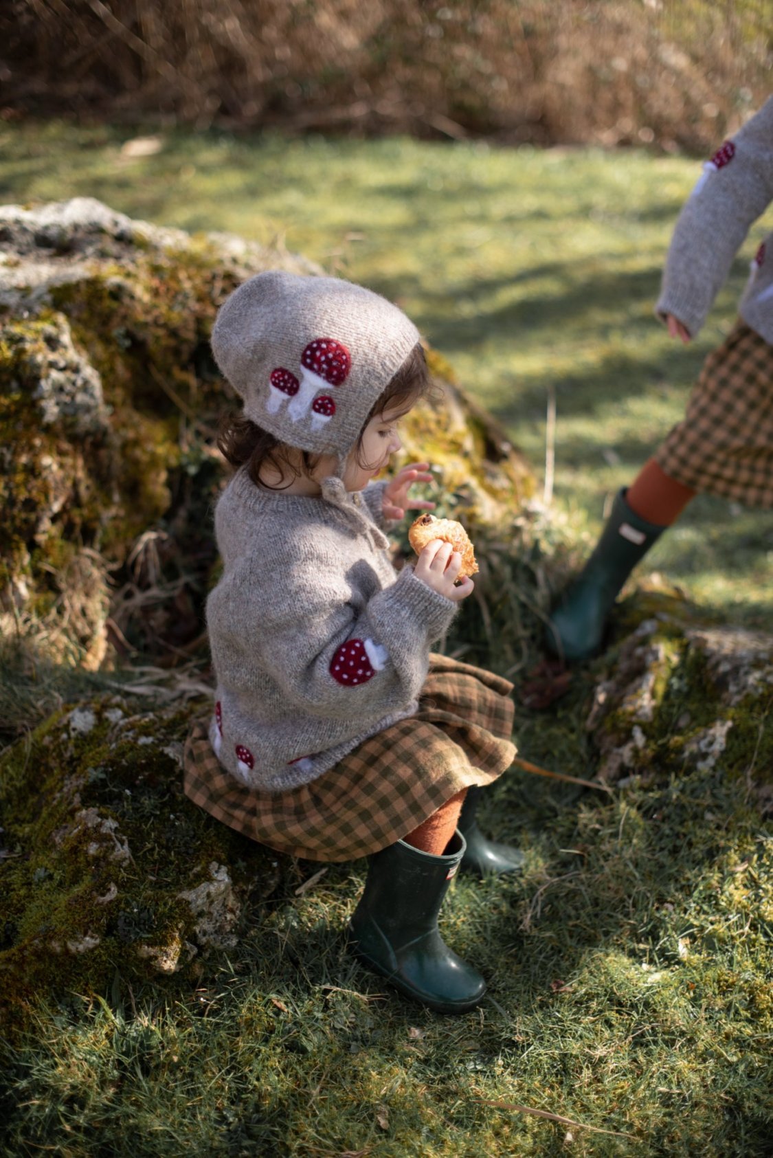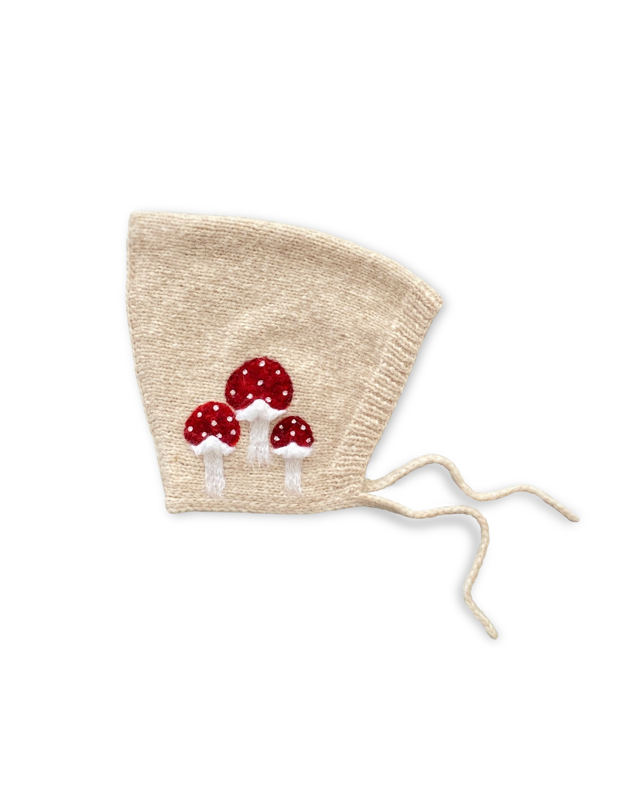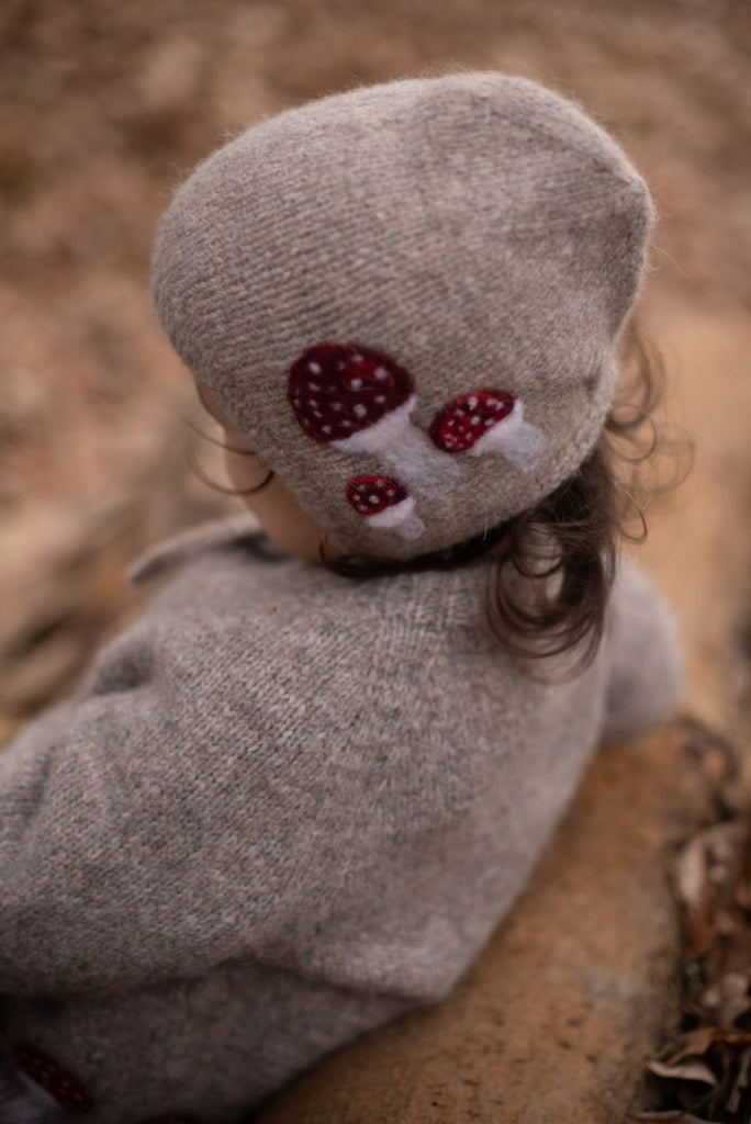 以 Mushrooms 針織帽 彷彿走進了夢幻的魔菇森林,充滿著滿滿的森林童話感。 這款針織帽由工匠以滿滿的愛與細膩手工編織而成,帽側點綴著可愛的蘑菇裝飾,營造溫馨又可愛的森林系穿搭,是陪伴孩子日常的經典手作之選。🌸
