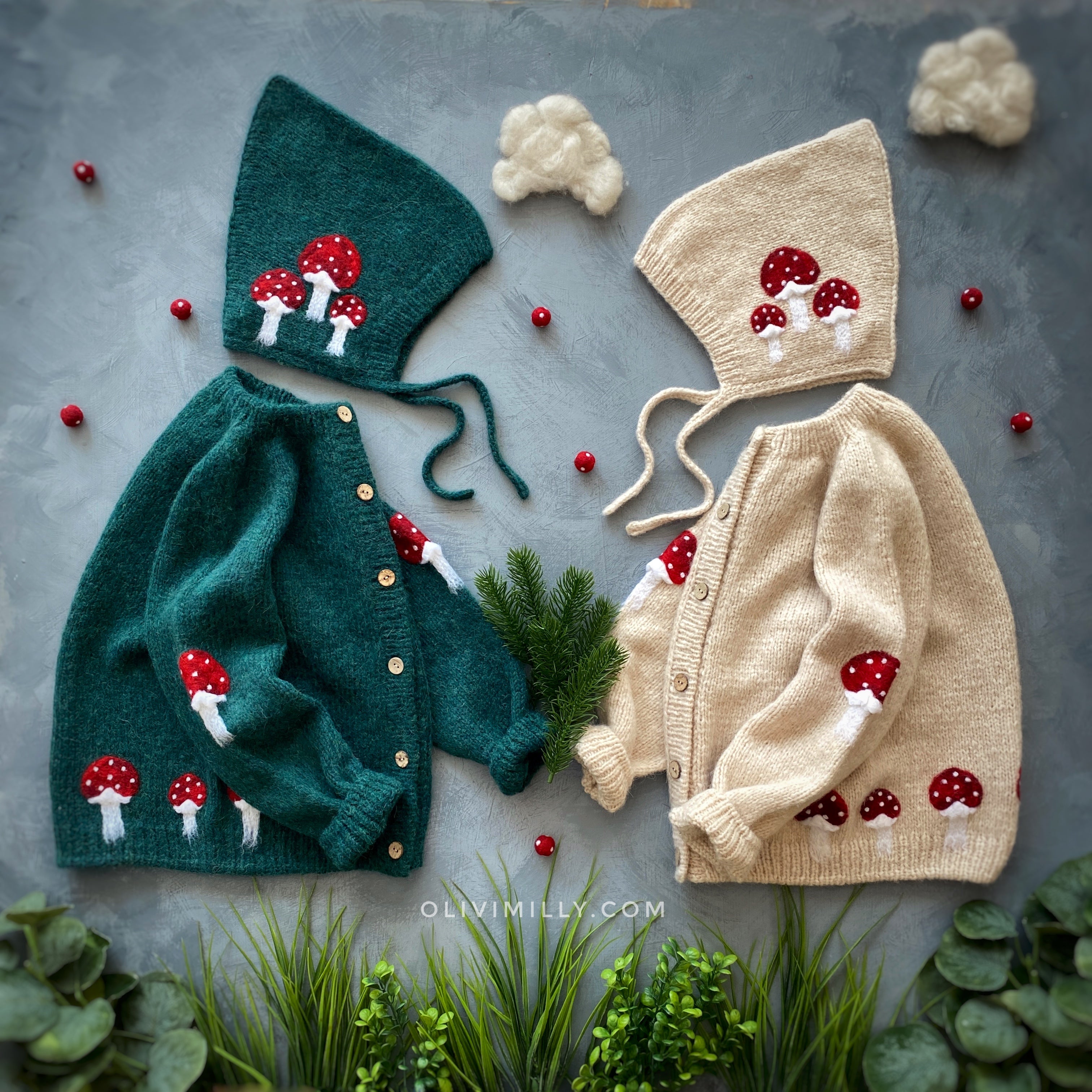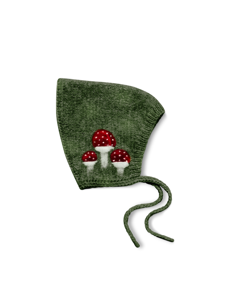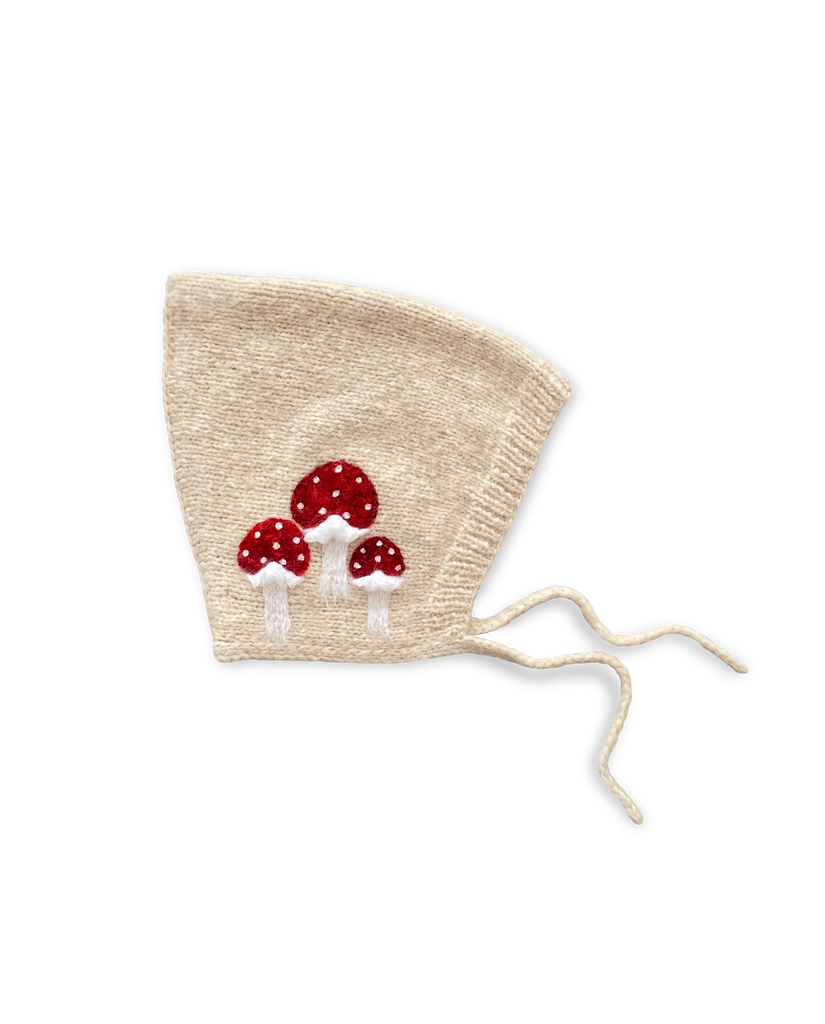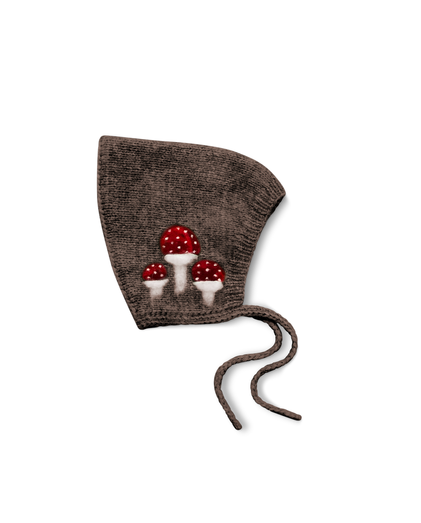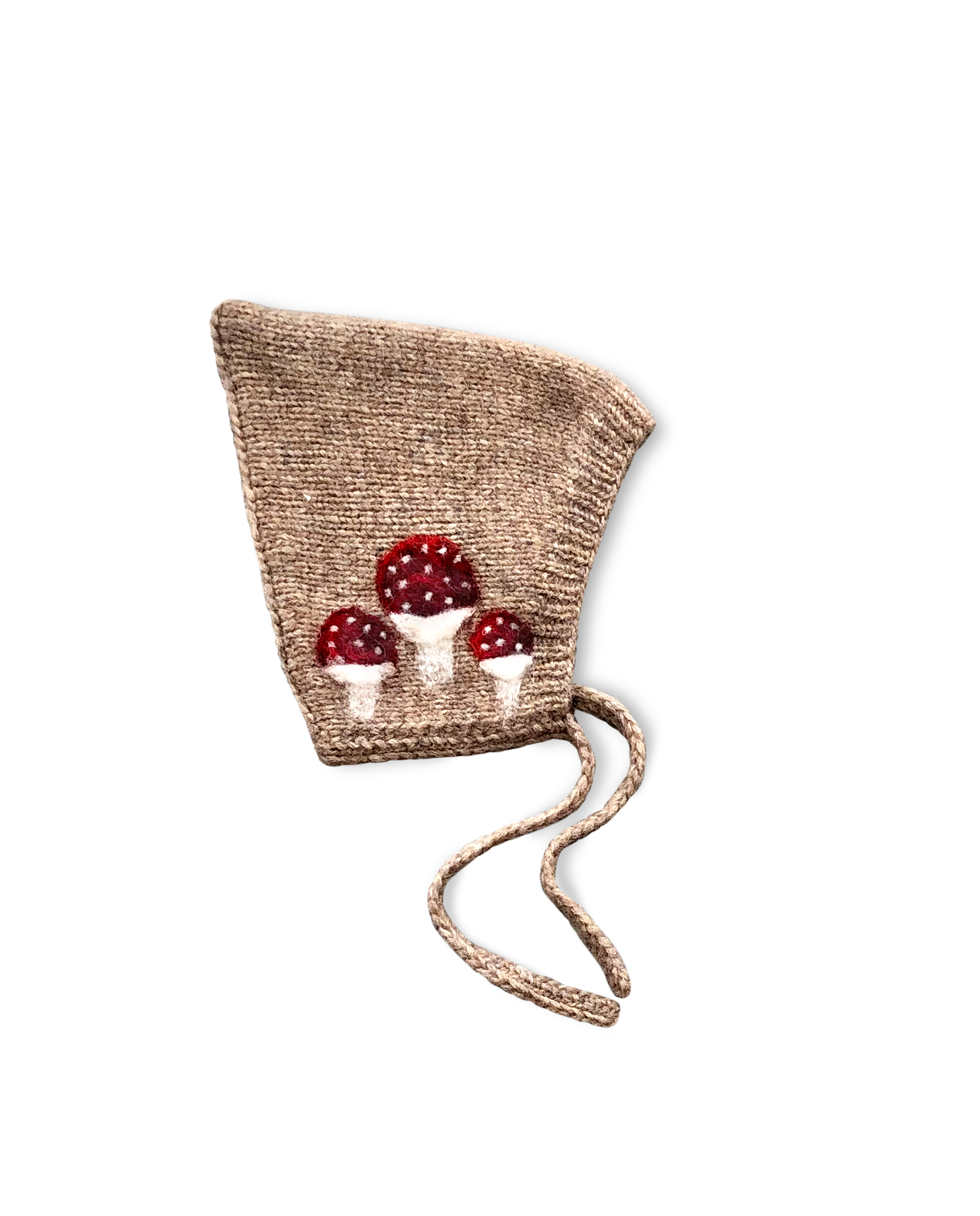 以 Mushrooms 針織帽 彷彿走進了夢幻的魔菇森林,充滿著滿滿的森林童話感。 這款針織帽由工匠以滿滿的愛與細膩手工編織而成,帽側點綴著可愛的蘑菇裝飾,營造溫馨又可愛的森林系穿搭,是陪伴孩子日常的經典手作之選。🌸