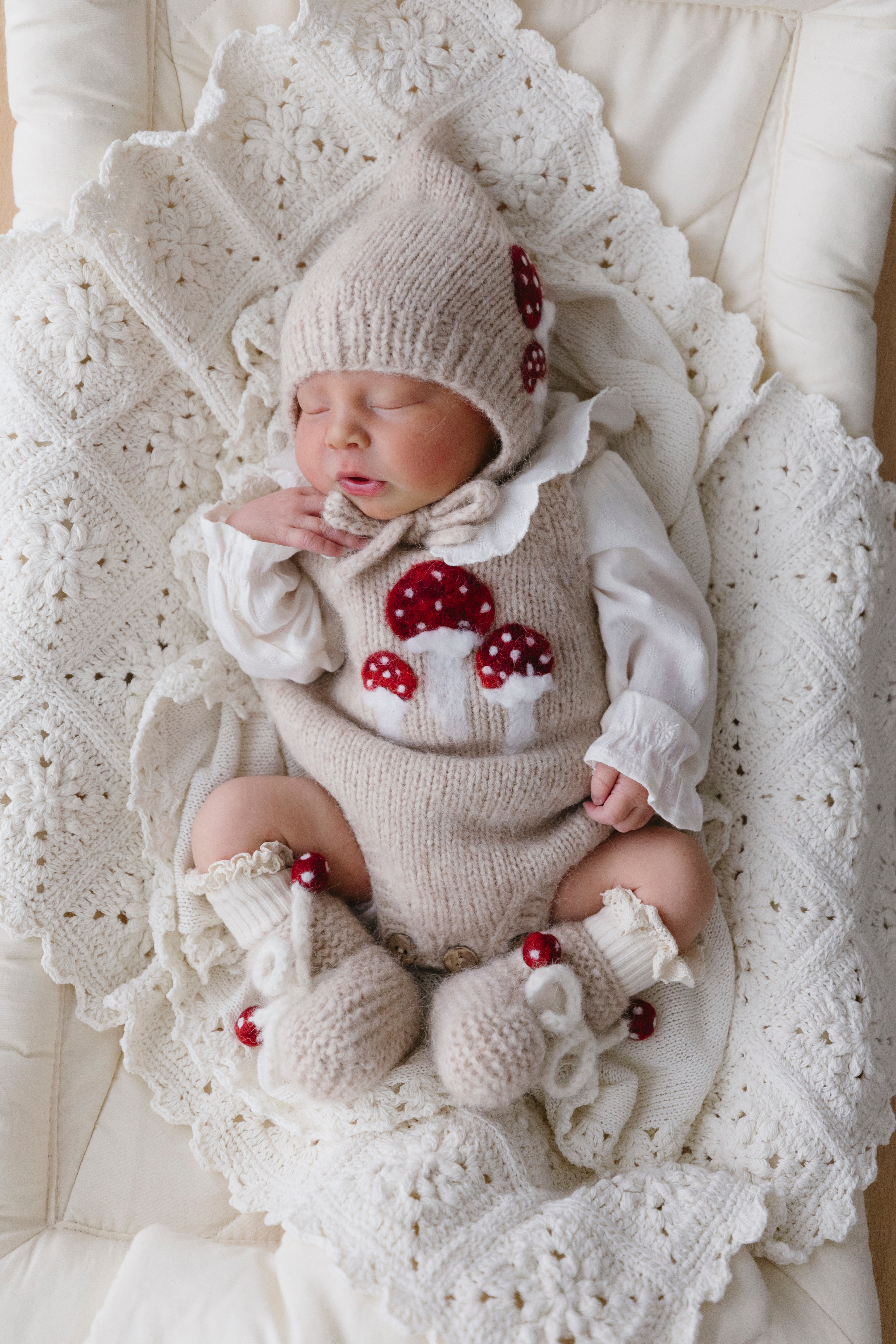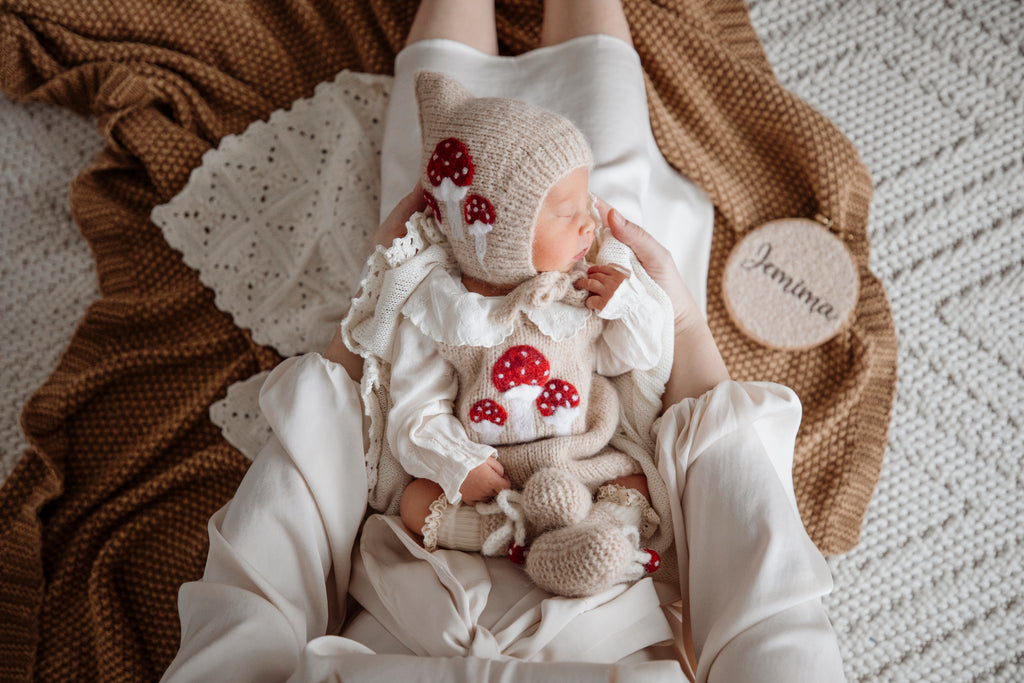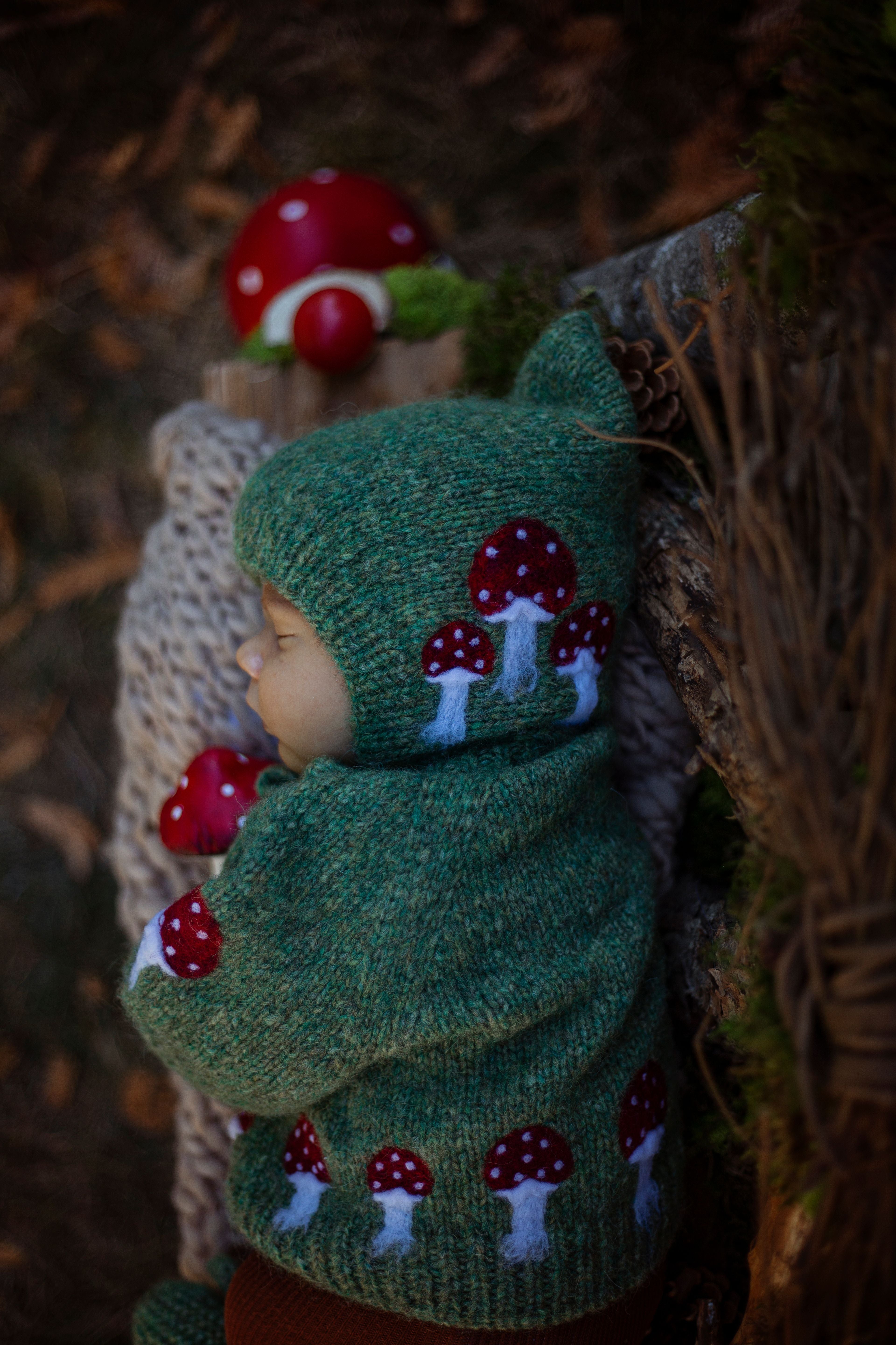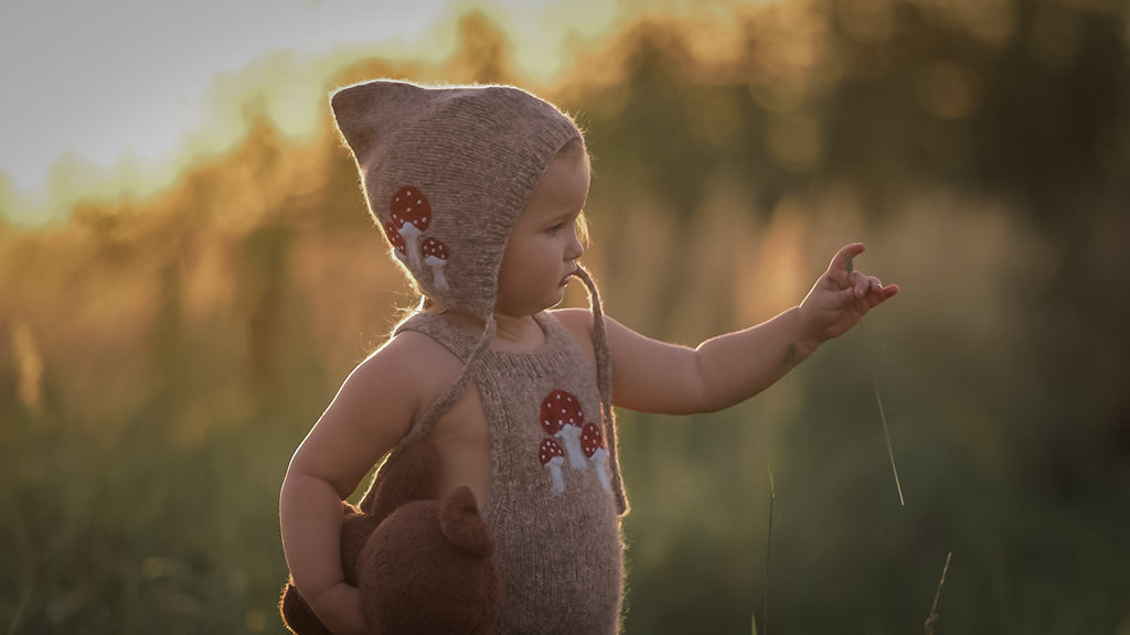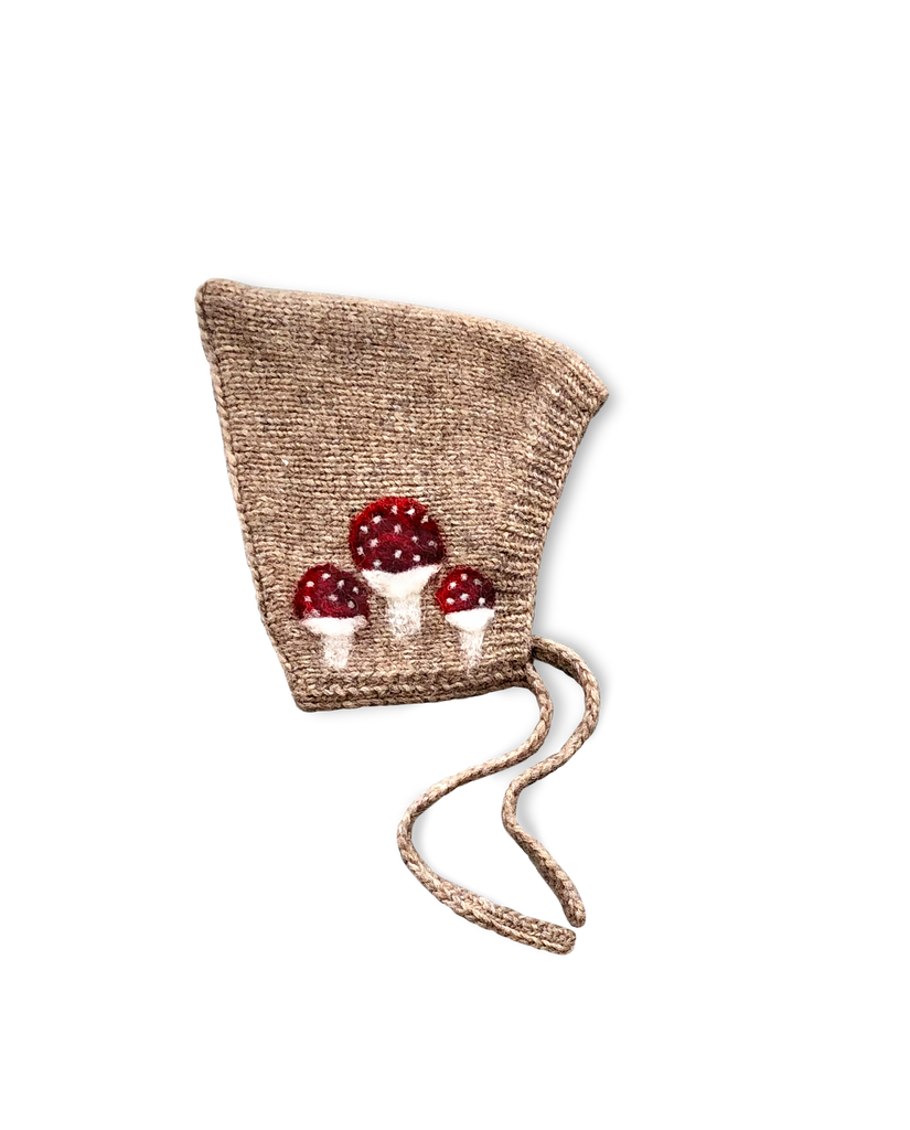 以 Mushrooms 針織帽 彷彿走進了夢幻的魔菇森林,充滿著滿滿的森林童話感。 這款針織帽由工匠以滿滿的愛與細膩手工編織而成,帽側點綴著可愛的蘑菇裝飾,營造溫馨又可愛的森林系穿搭,是陪伴孩子日常的經典手作之選。🌸
