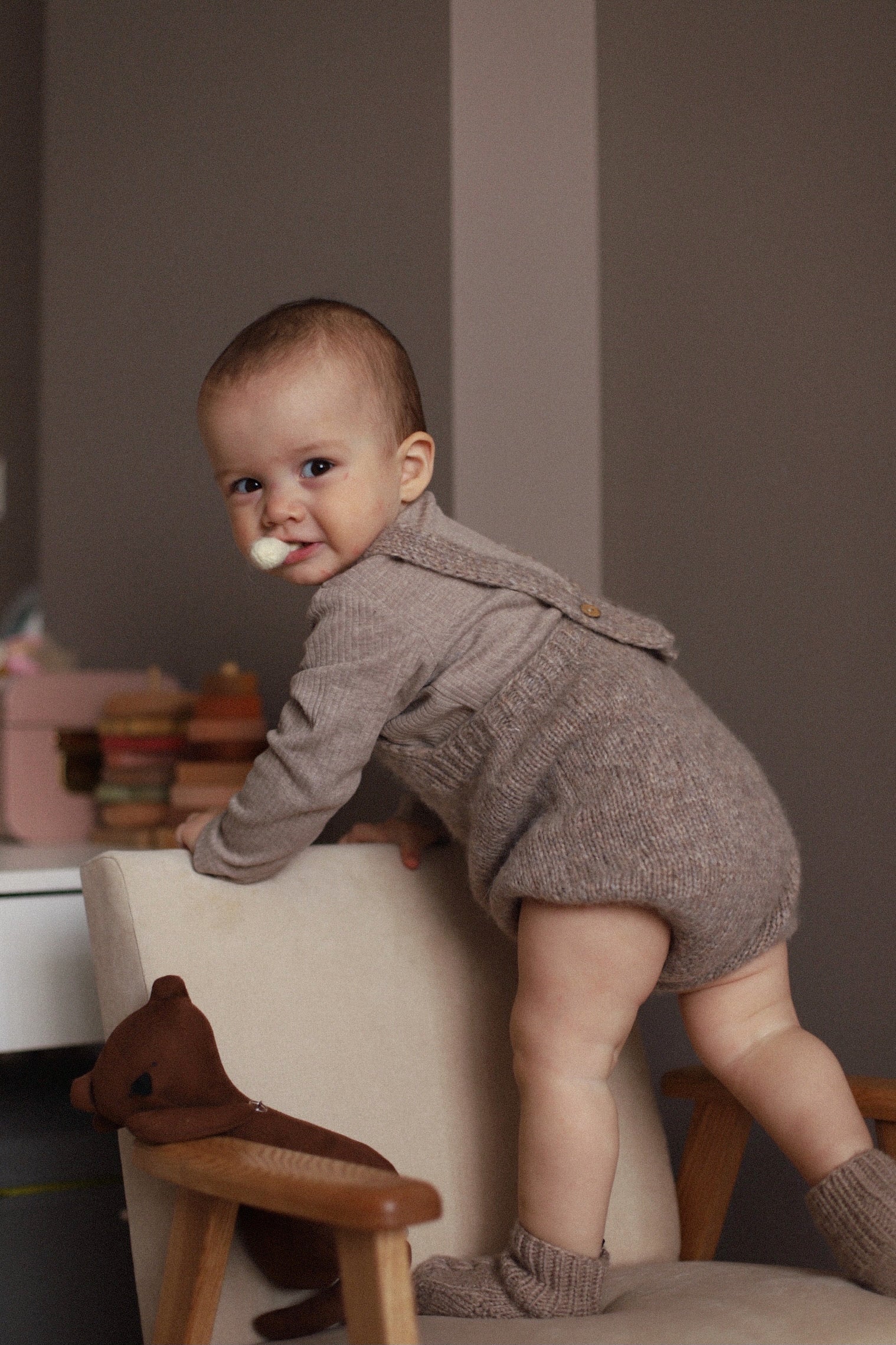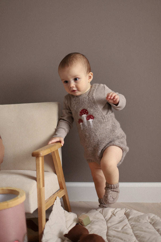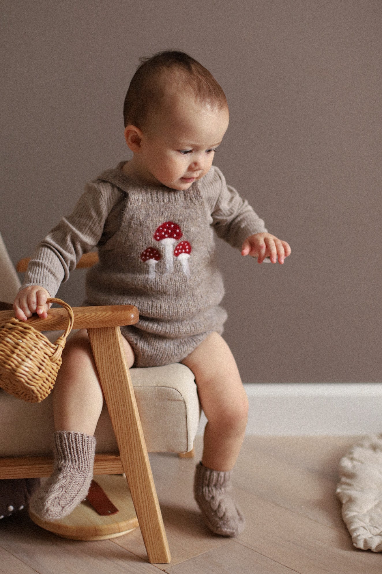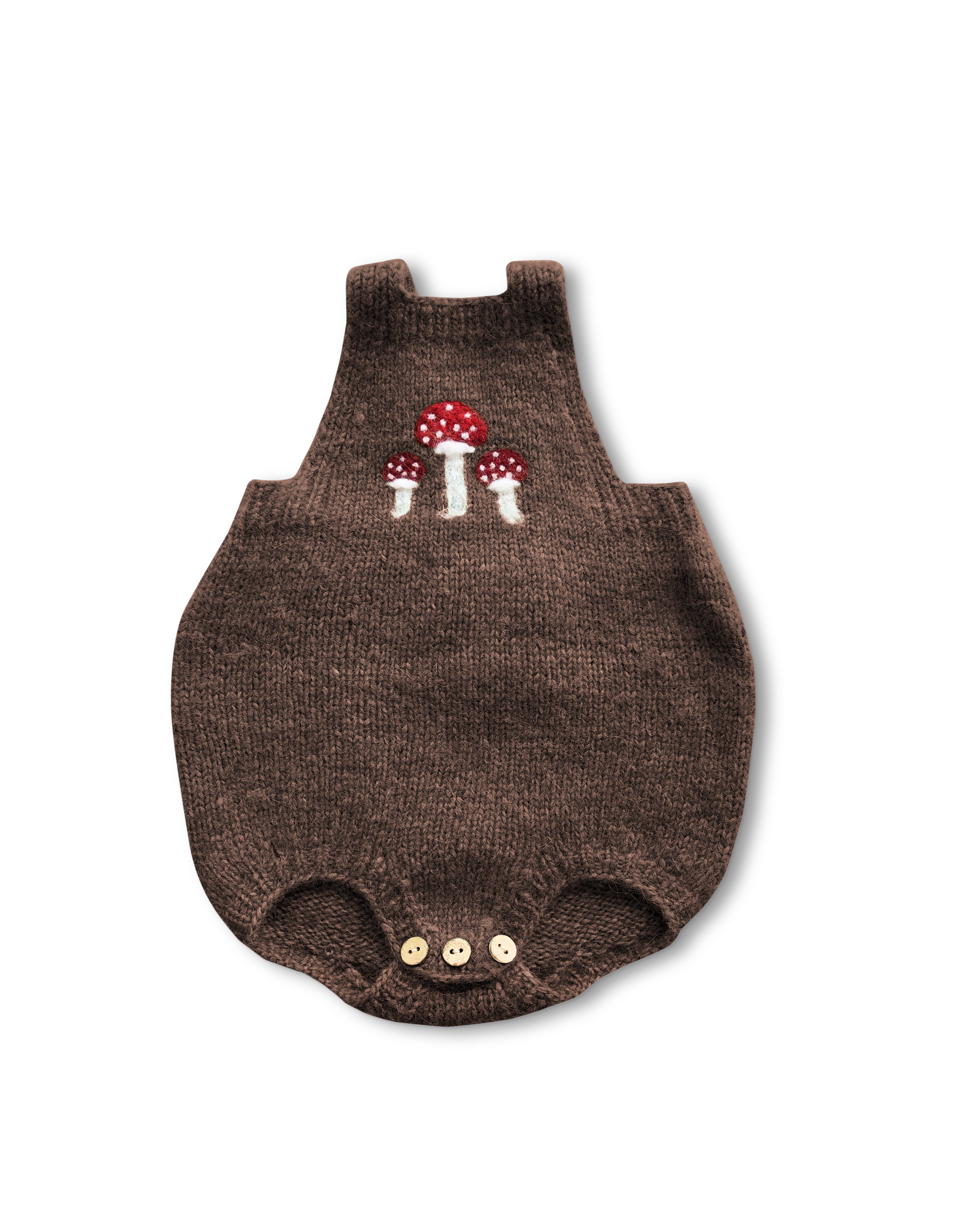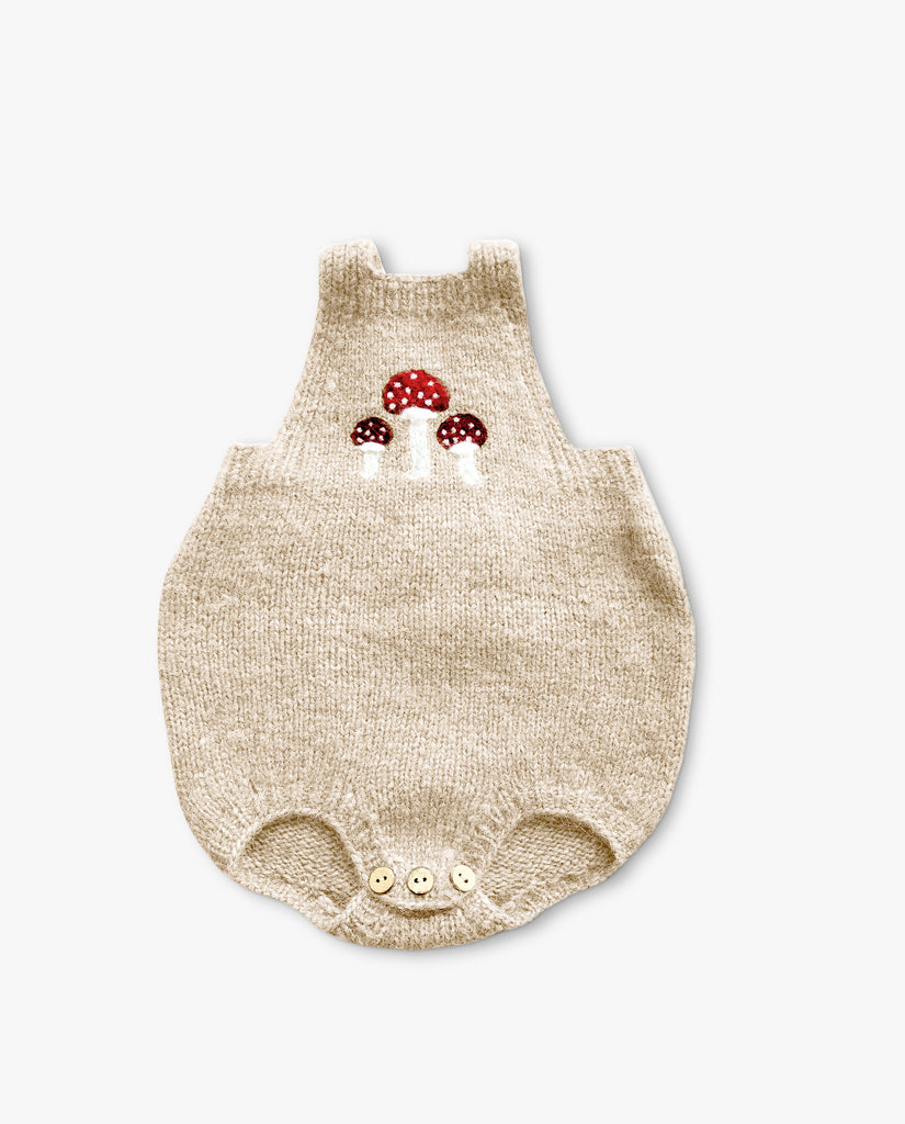 Mushrooms 針織連身包屁 彷彿走進了夢幻的魔菇森林,充滿著滿滿的森林童話感。 這款連身衣由工匠以滿滿的愛與細膩手工編織而成,連身衣上點綴著可愛的蘑菇裝飾,營造溫馨又可愛的森林系穿搭,是陪伴孩子日常的經典手作之選。🌸
