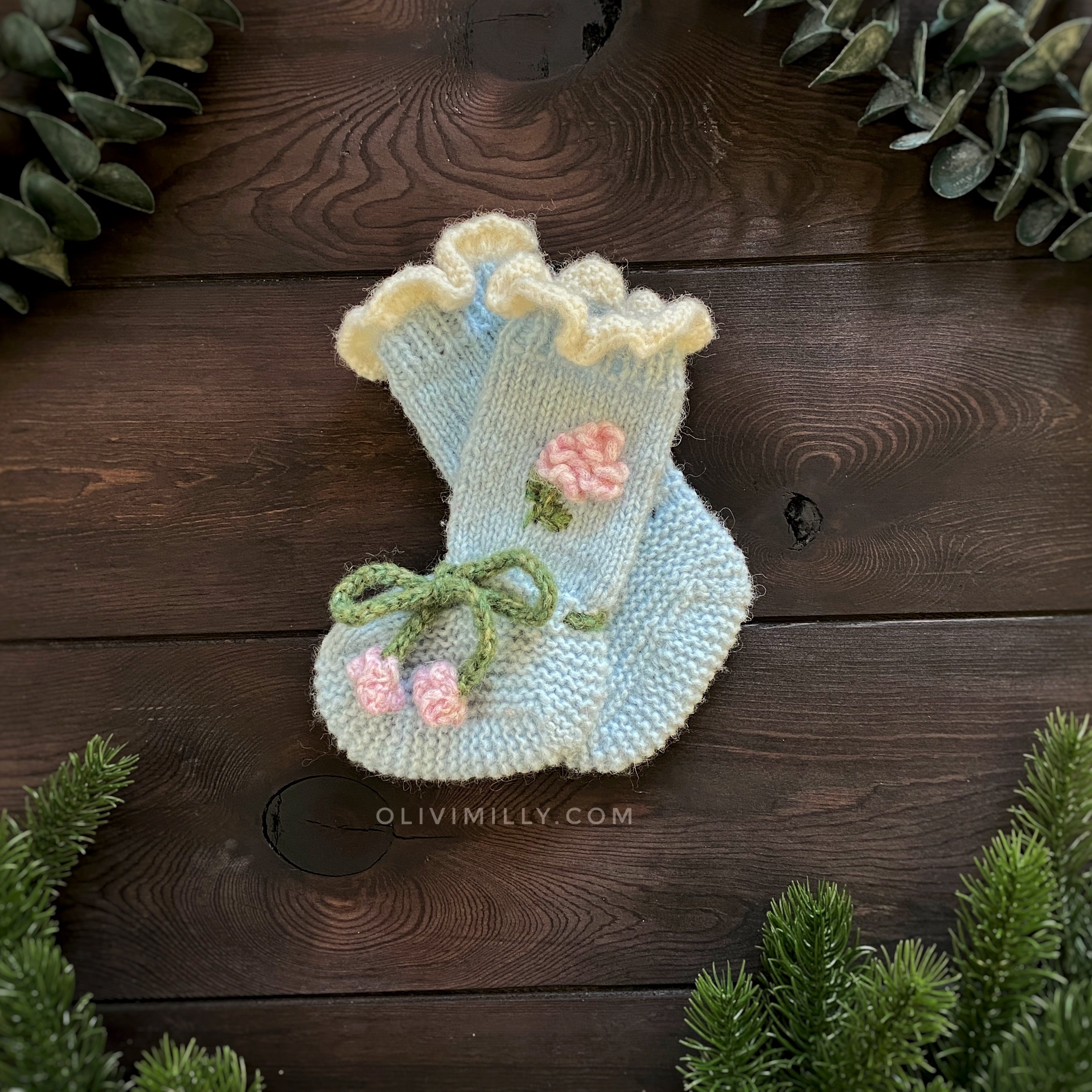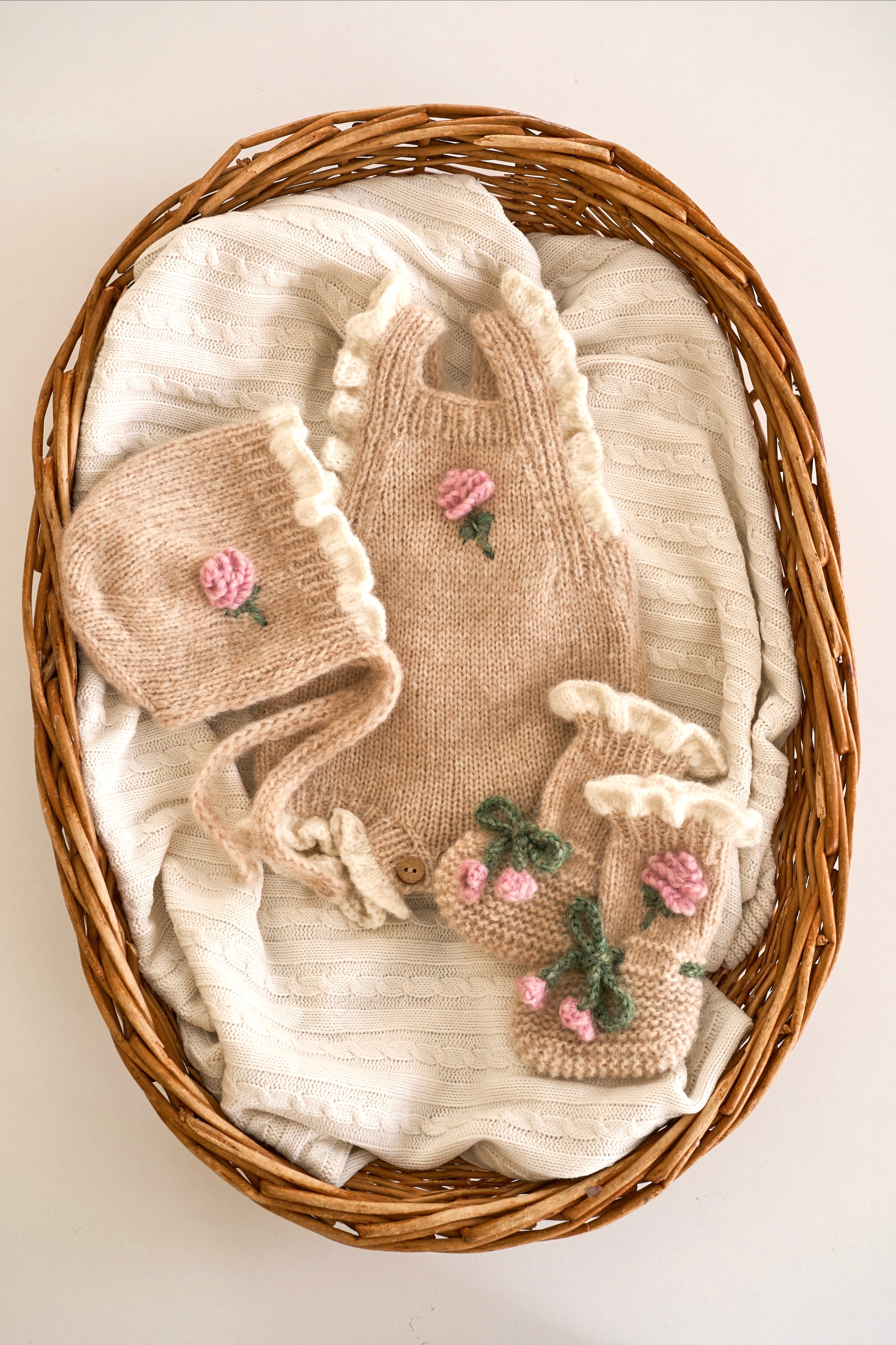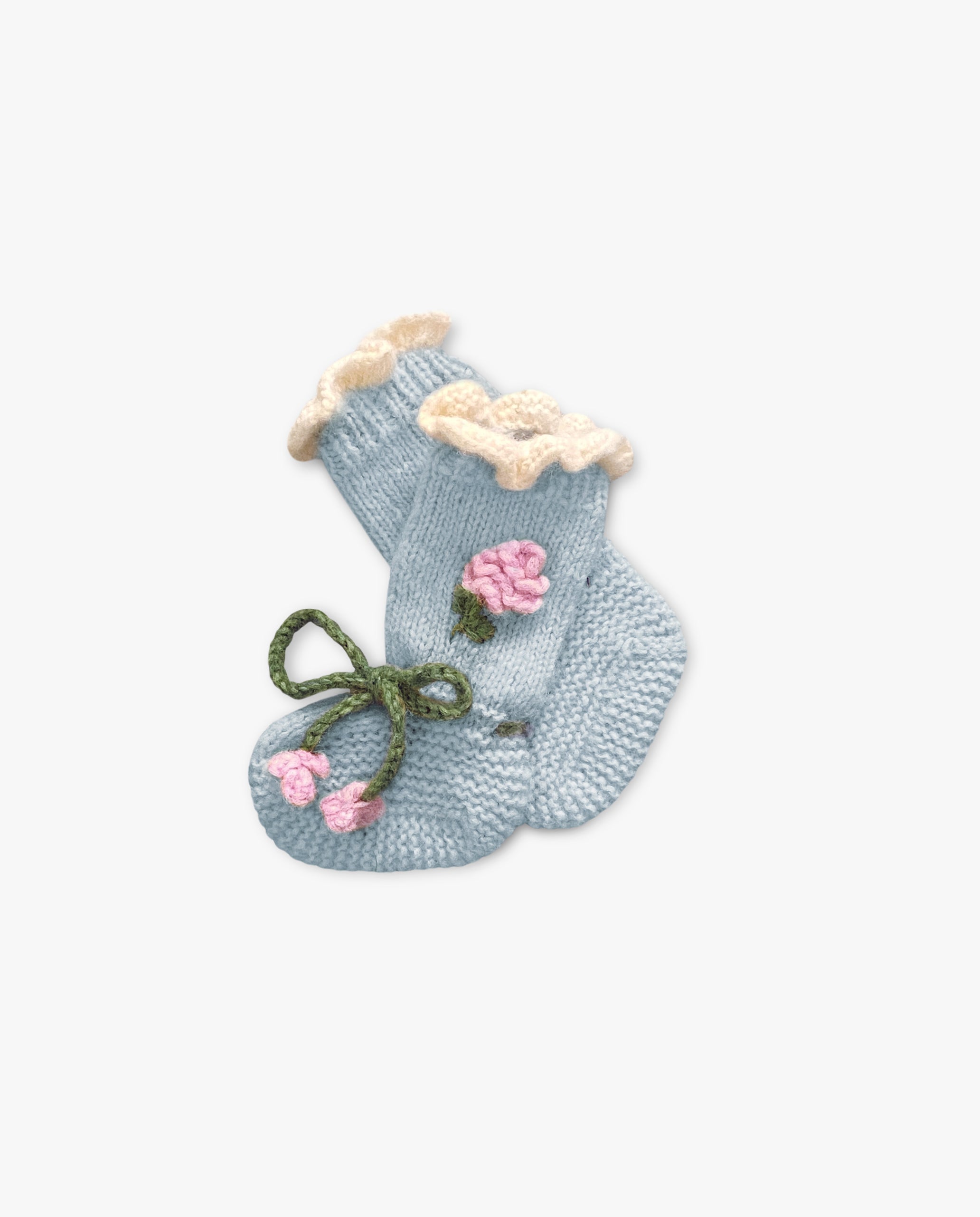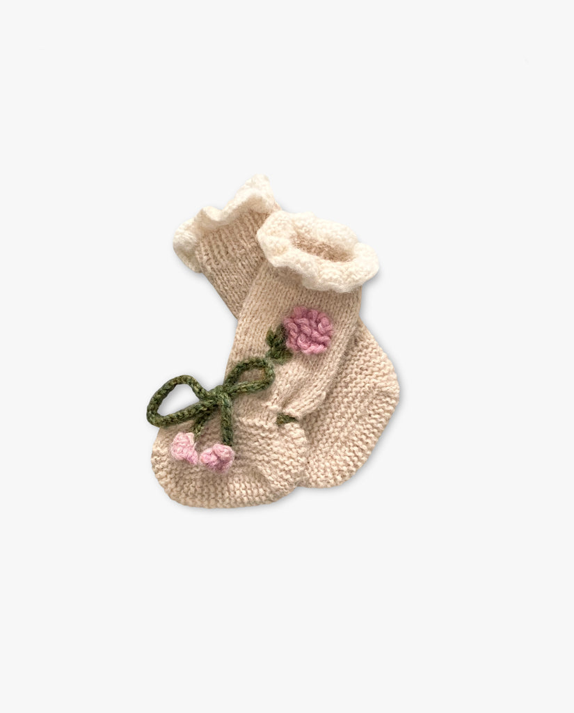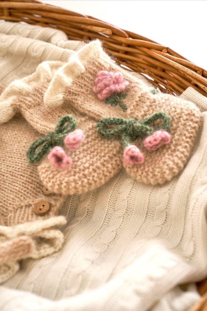 這款 玫瑰造型嬰兒針織襪,為小寶貝帶來溫暖又可愛的冬日呵護。玫瑰綁帶能牢固固定鞋身,高彈性襪口貼合腿部,不易脫落。採用最柔軟的 Baby Alpaca 小羊駝毛線 手工編織而成,觸感輕盈細緻,保暖度極佳。讓小寶貝的雙腳在寒冷季節中始終保持溫暖與舒適。🧶自穿可愛時分或贈送親朋好友的最佳禮物。無論是冬日漫步、全家福,還是只是想讓一份魔法在整個季節伴您左右,都是您和寶貝最理想之選。