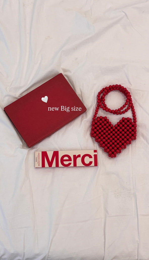 milkybeige, Heart Beads Bag - Red 經典愛心手工串珠包 紅 S-L