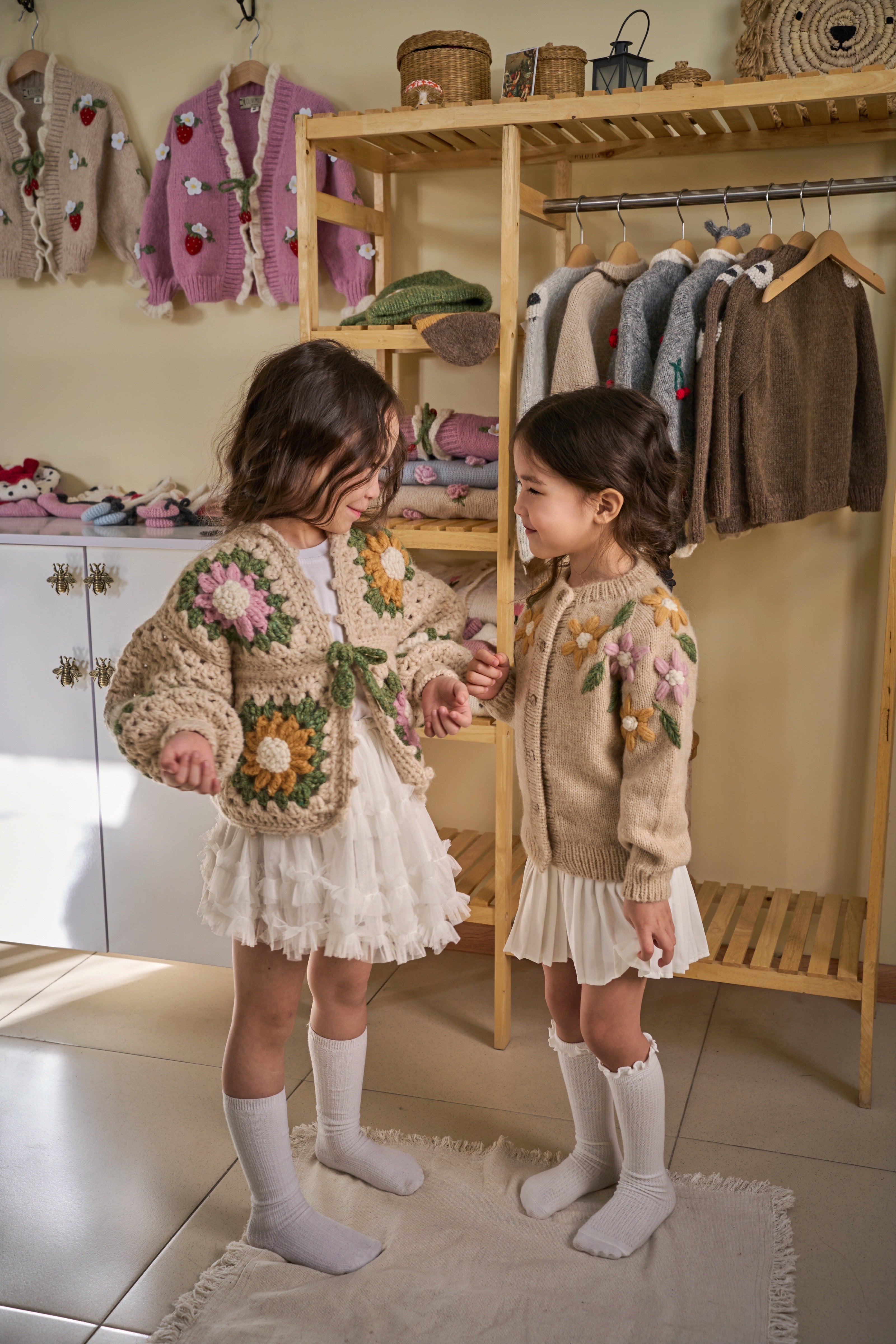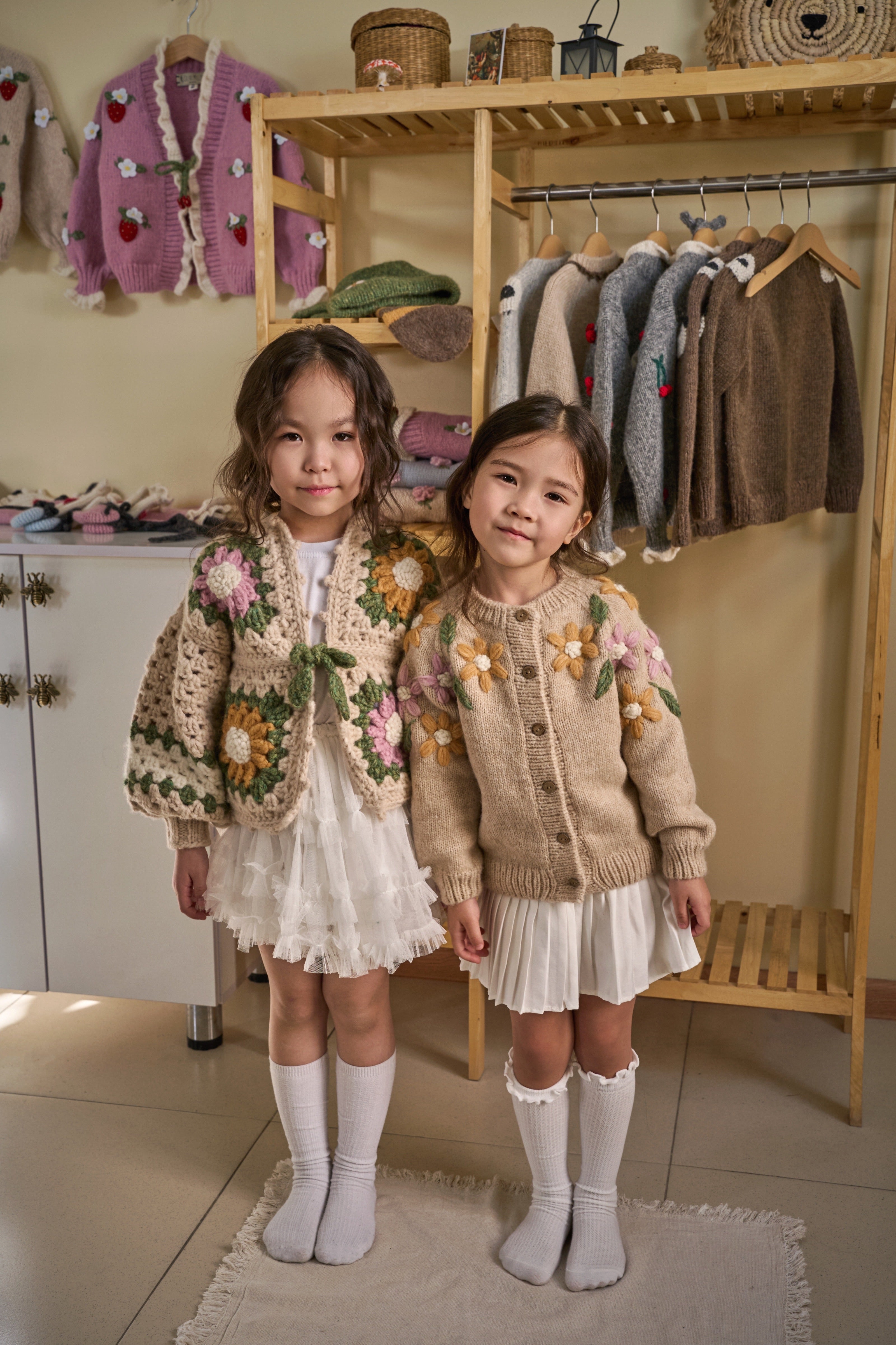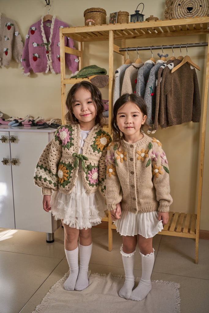 100%全程手工編織與手工刺繡,採用Baby Alpaca最柔軟且觸感極佳的毛線主要織成,能為孩子帶來溫暖與舒適,親膚不刺激,不含羊毛脂,不會過敏。