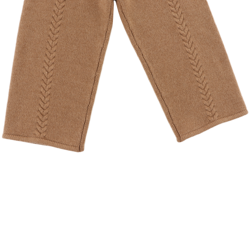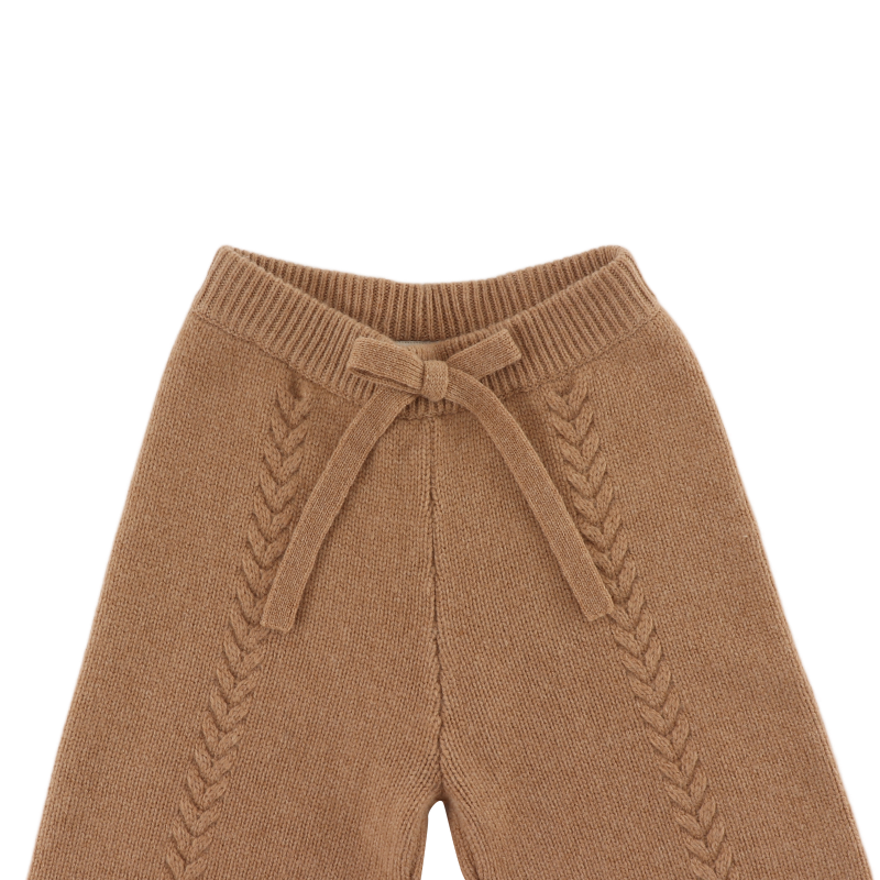 Knitted elegance! The Sulien merino wool trousers combine comfort with style. Featuring a stretchy waistband, front ties, and intricate knitted detailing along the legs, they're perfect for a cosy yet polished look.