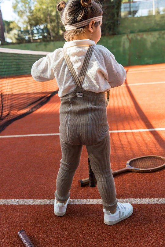 Silly Silas, Footless Oyster Grey Striped 撞色拼接吊帶褲 牡蠣灰 6m-4y