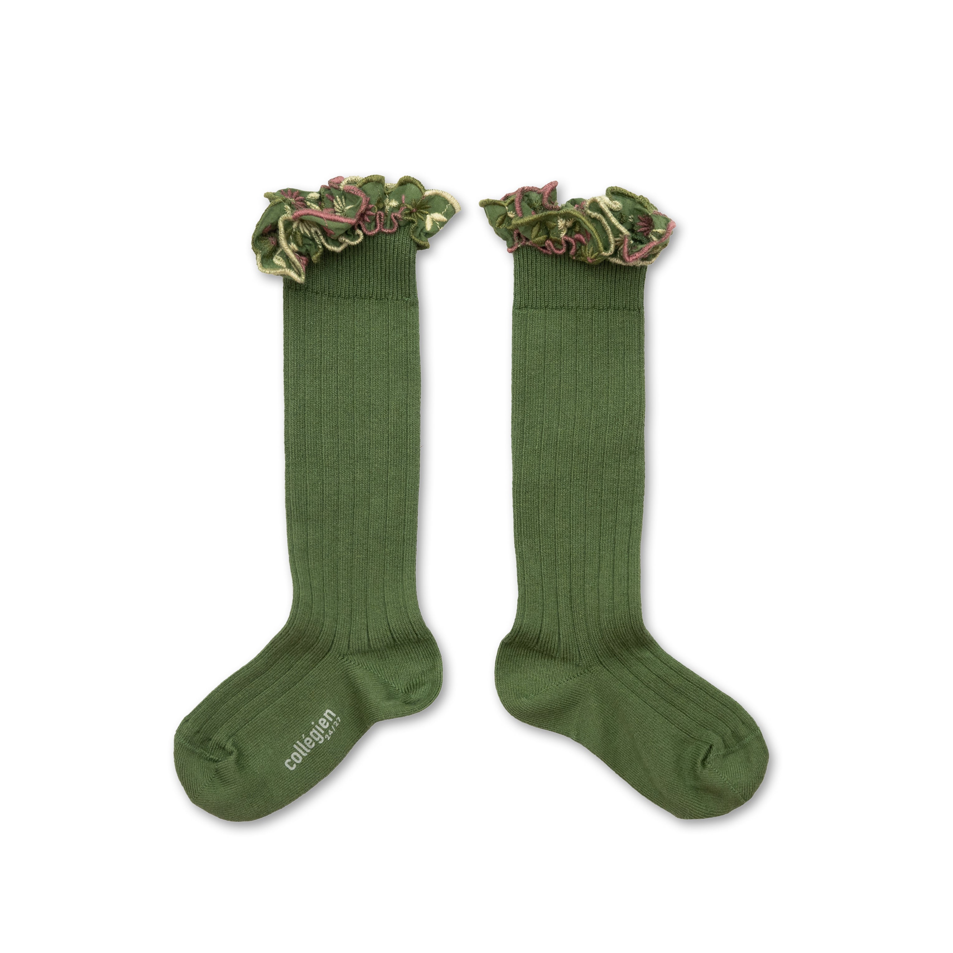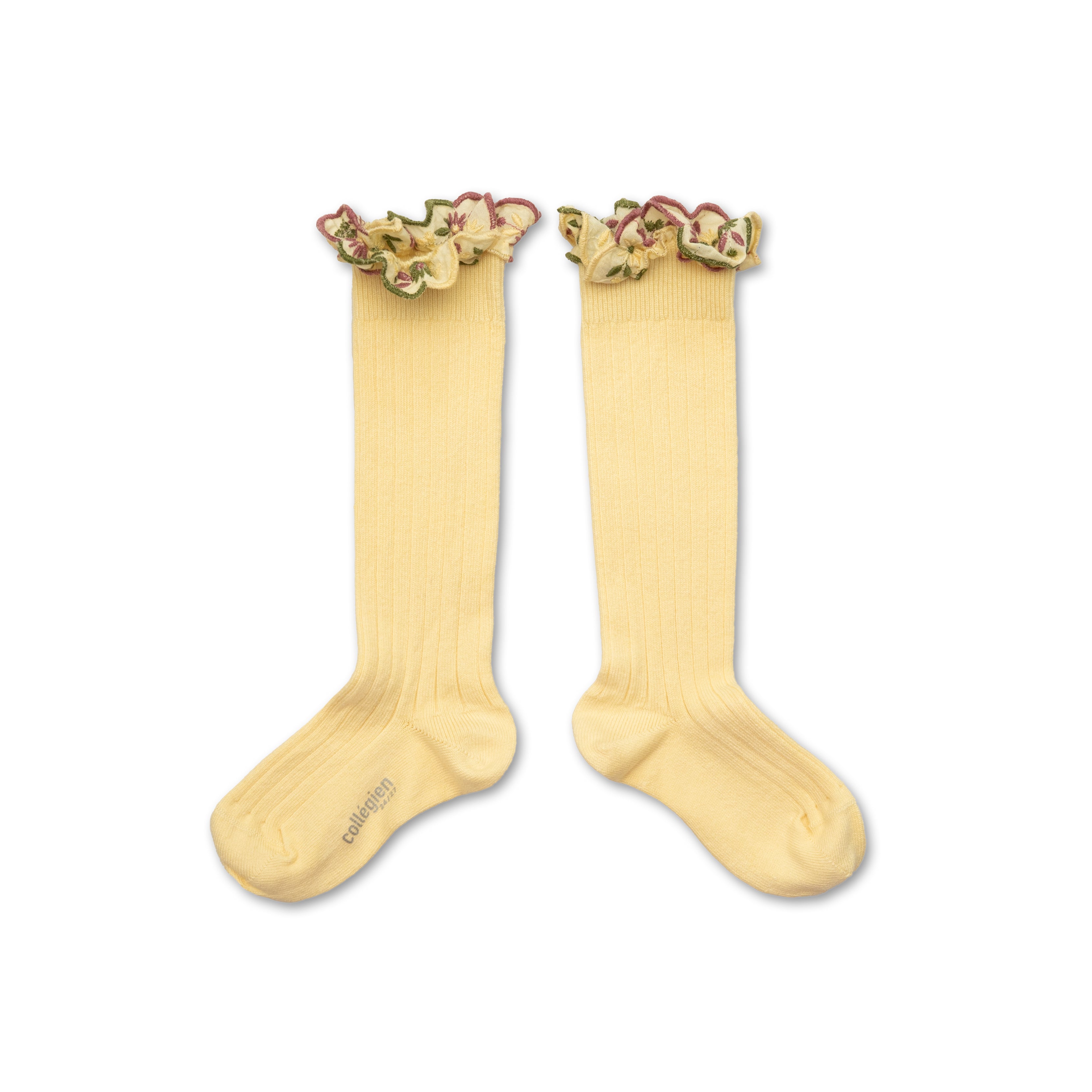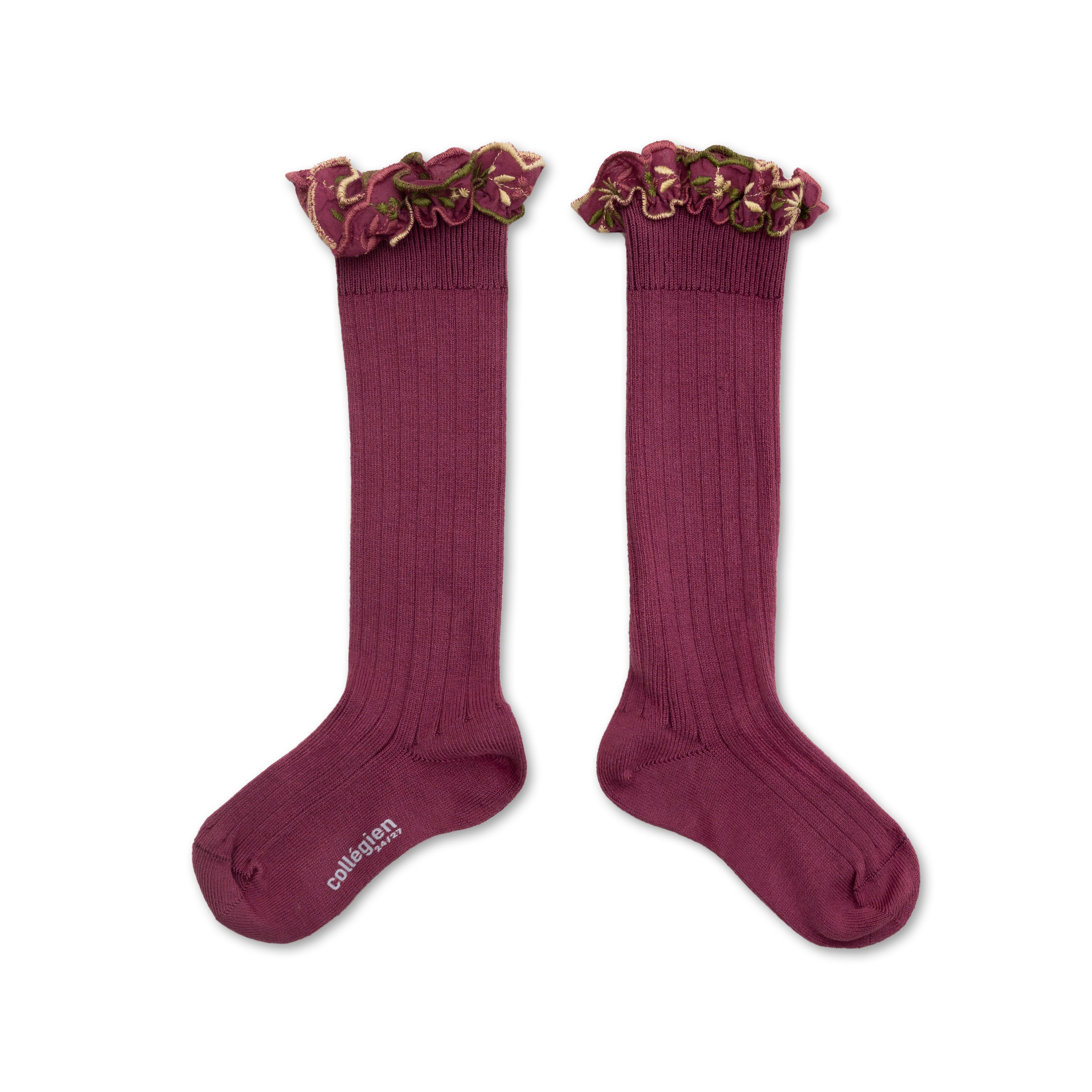 Eglantine - Chaussettes hautes avec volant brodé fleurs