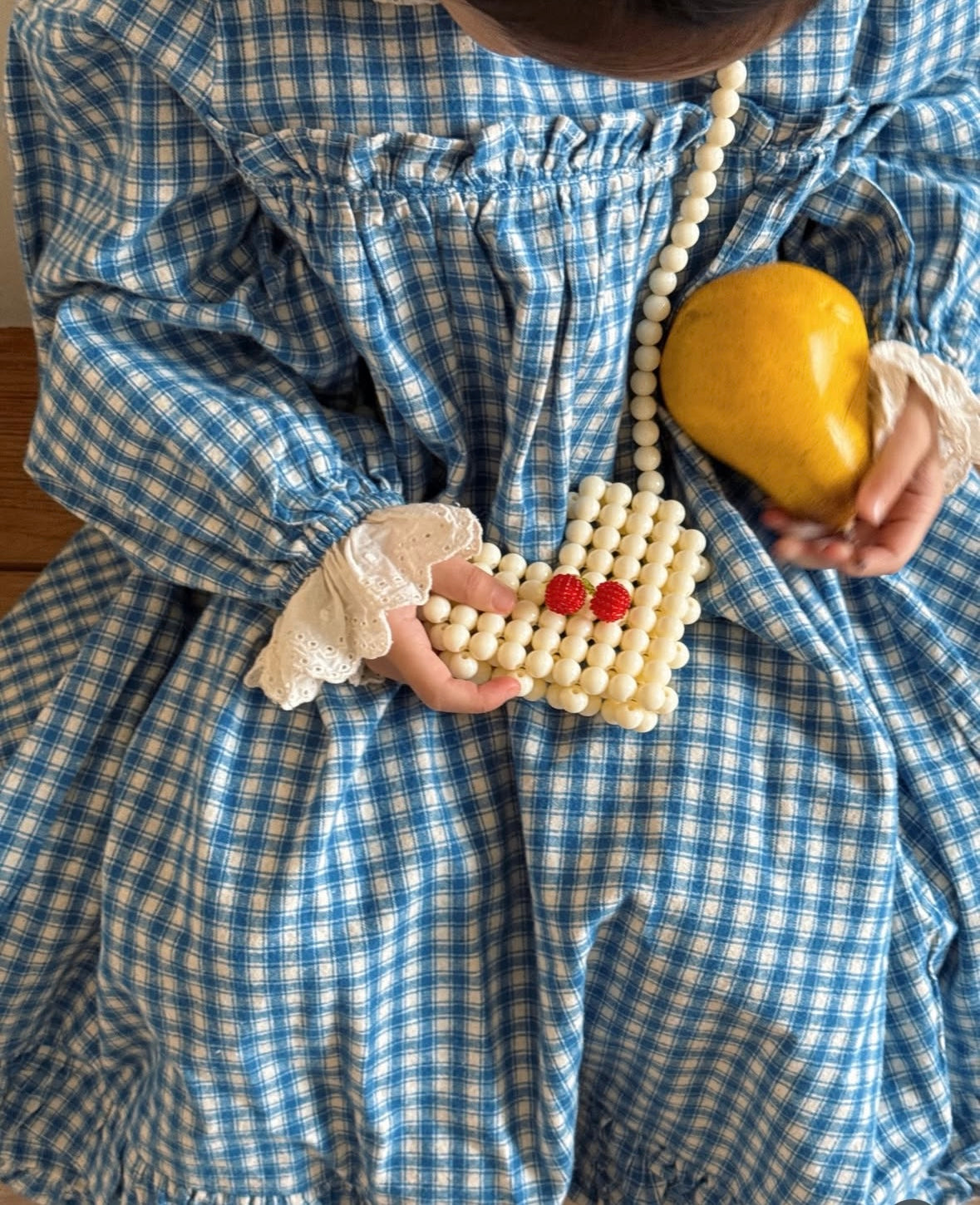正面佩戴:展現獨一無二的水果串珠造型,清新可愛、充滿討喜氛圍。