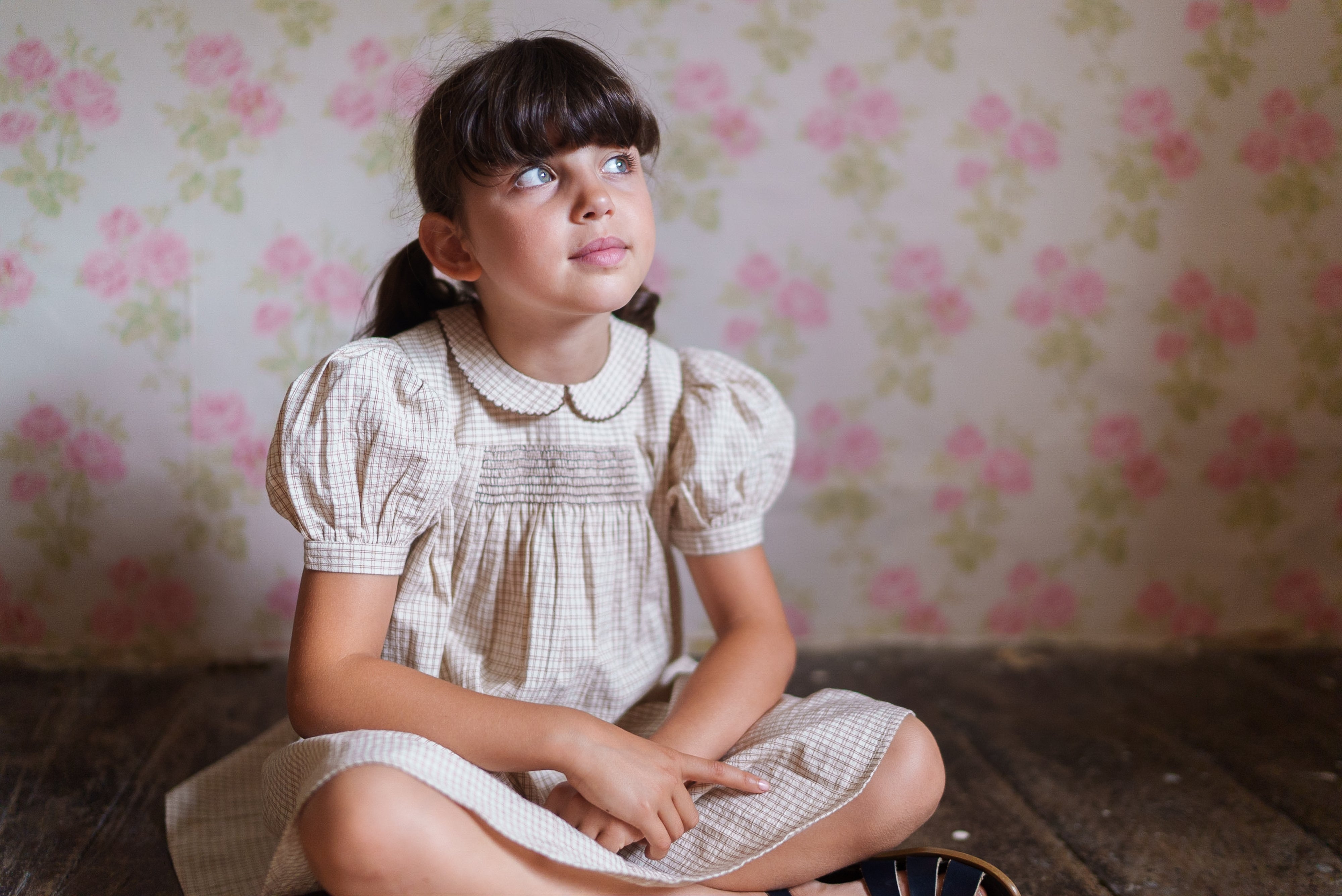 我們的靈感來自童年,以及在英國鄉村度過的充滿樂趣和快樂的時光!我們是五個小傢伙的姊妹和媽媽。女兒出生後,我們費盡心思為她們尋找簡單、漂亮、傳統、我們喜歡又能負擔的衣服。我們總是對復古花卉、舊刺繡書籍、古董收藏