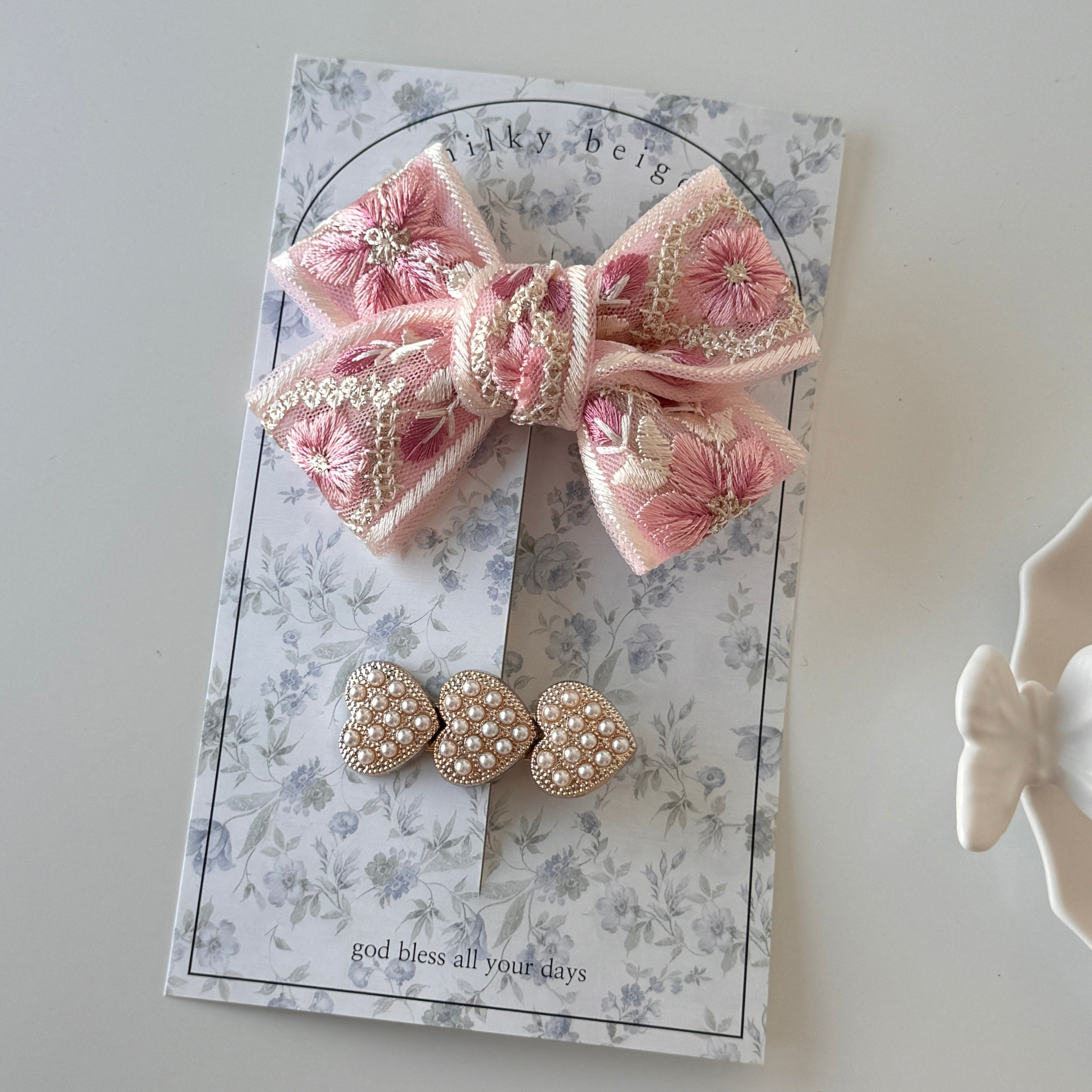 在細緻的手工繡線之間,承載了溫柔與典雅。這款獨家緞帶組不只是配件,更像是一份對孩子低語的祝福,為日常增添柔美細節!