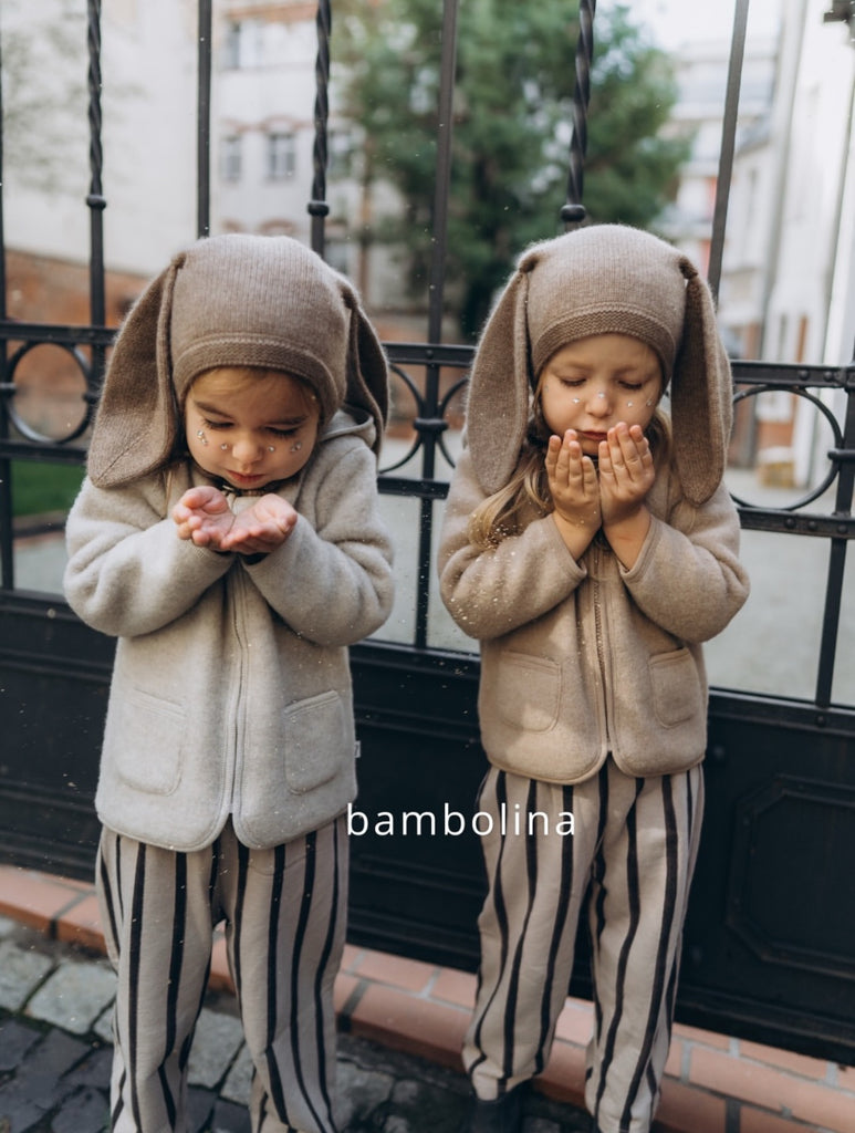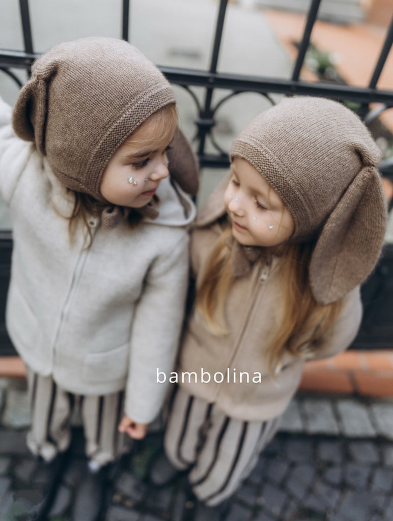 帶有長兔耳朵的嬰兒羊絨帽。這款可愛的嬰兒帽採用 100% 羊絨針織製成,為您的小寶寶提供無與倫比的柔軟和溫暖。下巴下方以繫帶閉合,提供牢固貼合,同時完美覆蓋耳朵、頸部和前額,讓您的孩子感到舒適和安全。其超長的兔子耳朵更增添了俏皮的魅力,讓您的寶寶擁有令人無法抗拒的小兔子外觀。這款帽子輕盈、溫暖、可愛,是舒適與時尚的完美選擇。波蘭製造的產品。 100%手工製作,只建議手洗。