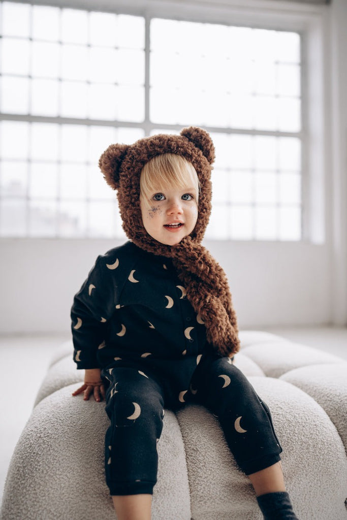 bambolina, Teddy Bear bonnet - chocolate 泰迪熊連帽圍巾針織造型帽 巧克力 6m-3y
