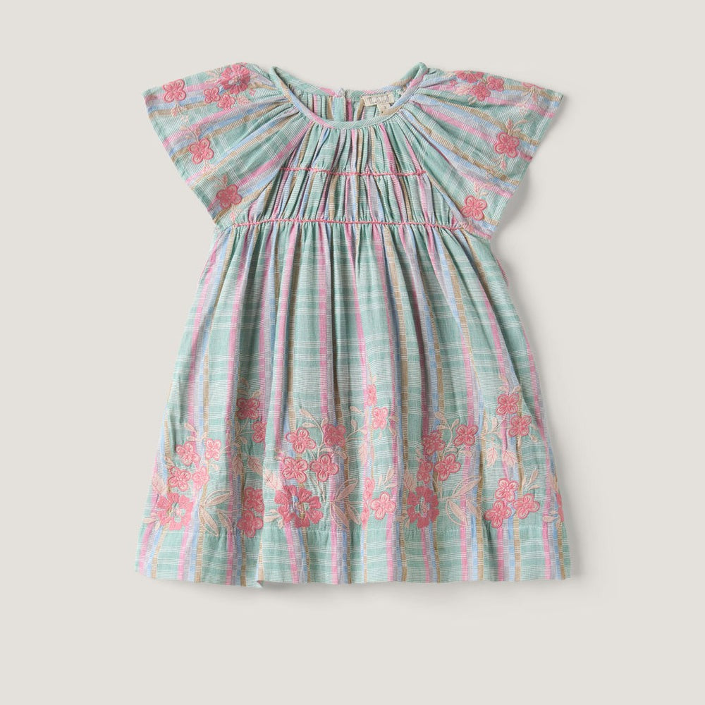 迷你鬱金香洋裝採用我們最受歡迎的版型,並以短袖設計呈現,選用訂製的薄荷綠斜紋布料,打造輕鬆百搭的經典造型。飾以標誌性刺繡和手工褶襉,為溫暖季節的穿搭增添一絲復古韻味。專為陽光明媚的春日和日常穿著而設計,它保留了鬱金香品牌的標誌性魅力,同時又更加輕盈透氣——無論是玩耍、派對,還是其他任何場合,都能輕鬆駕馭。