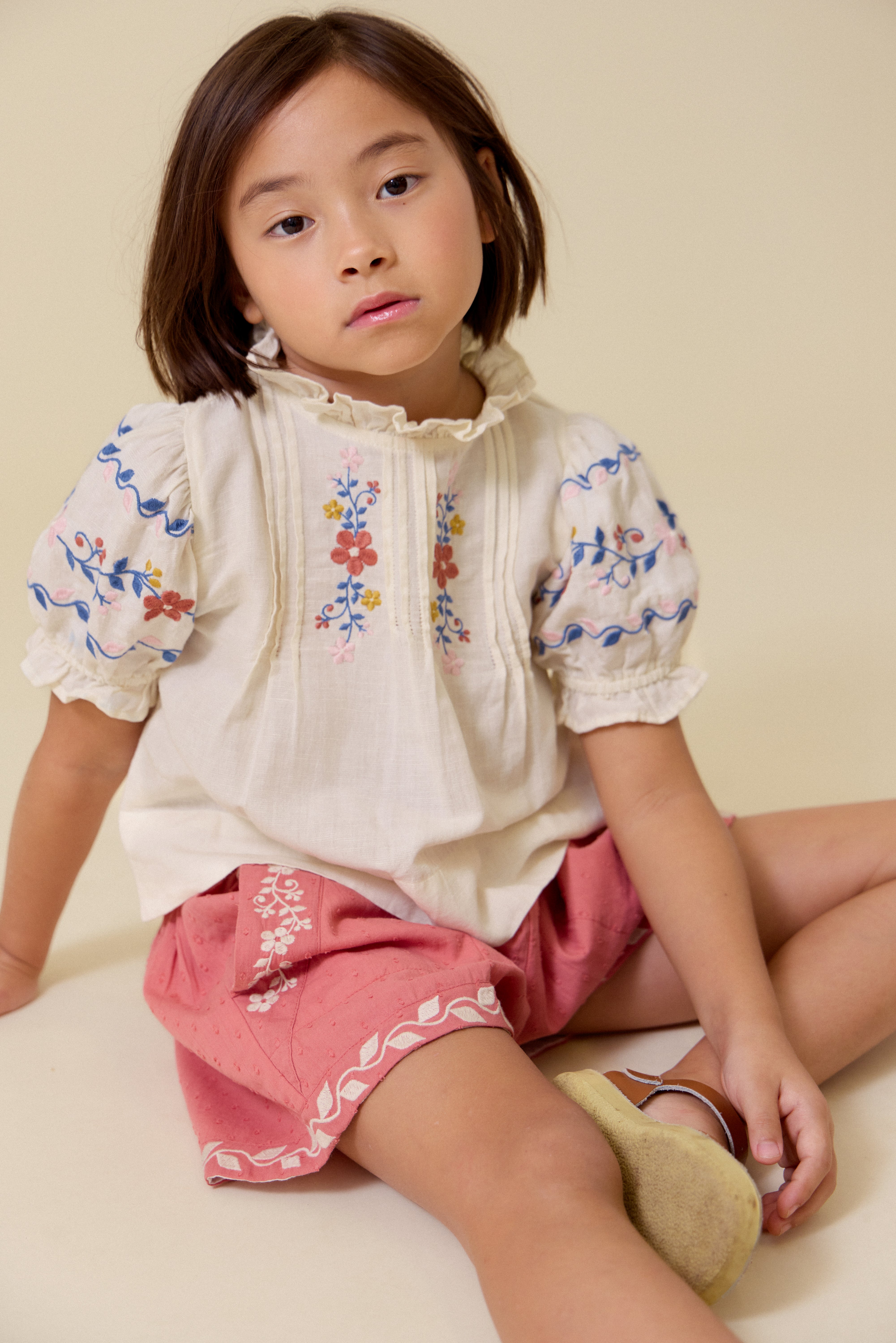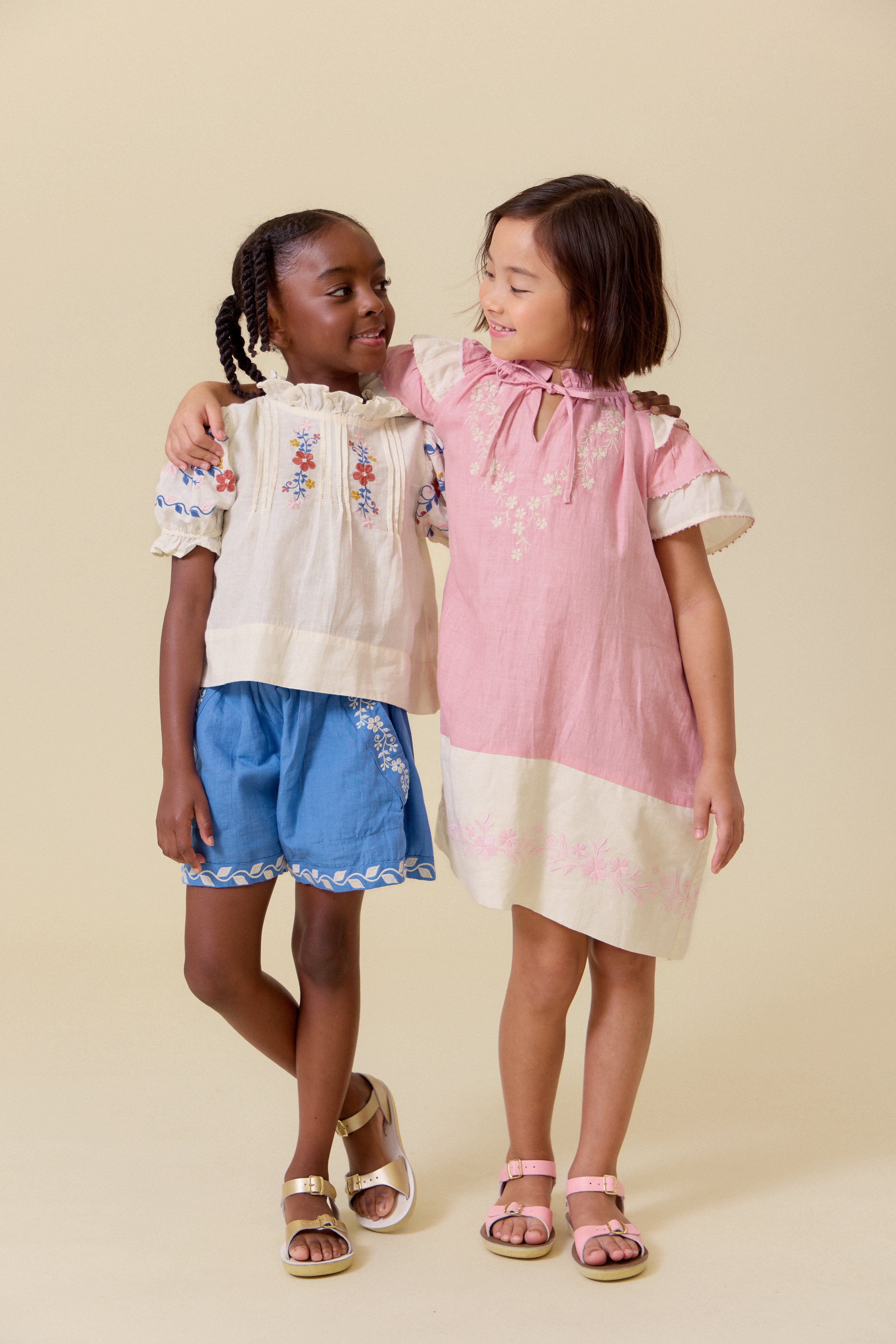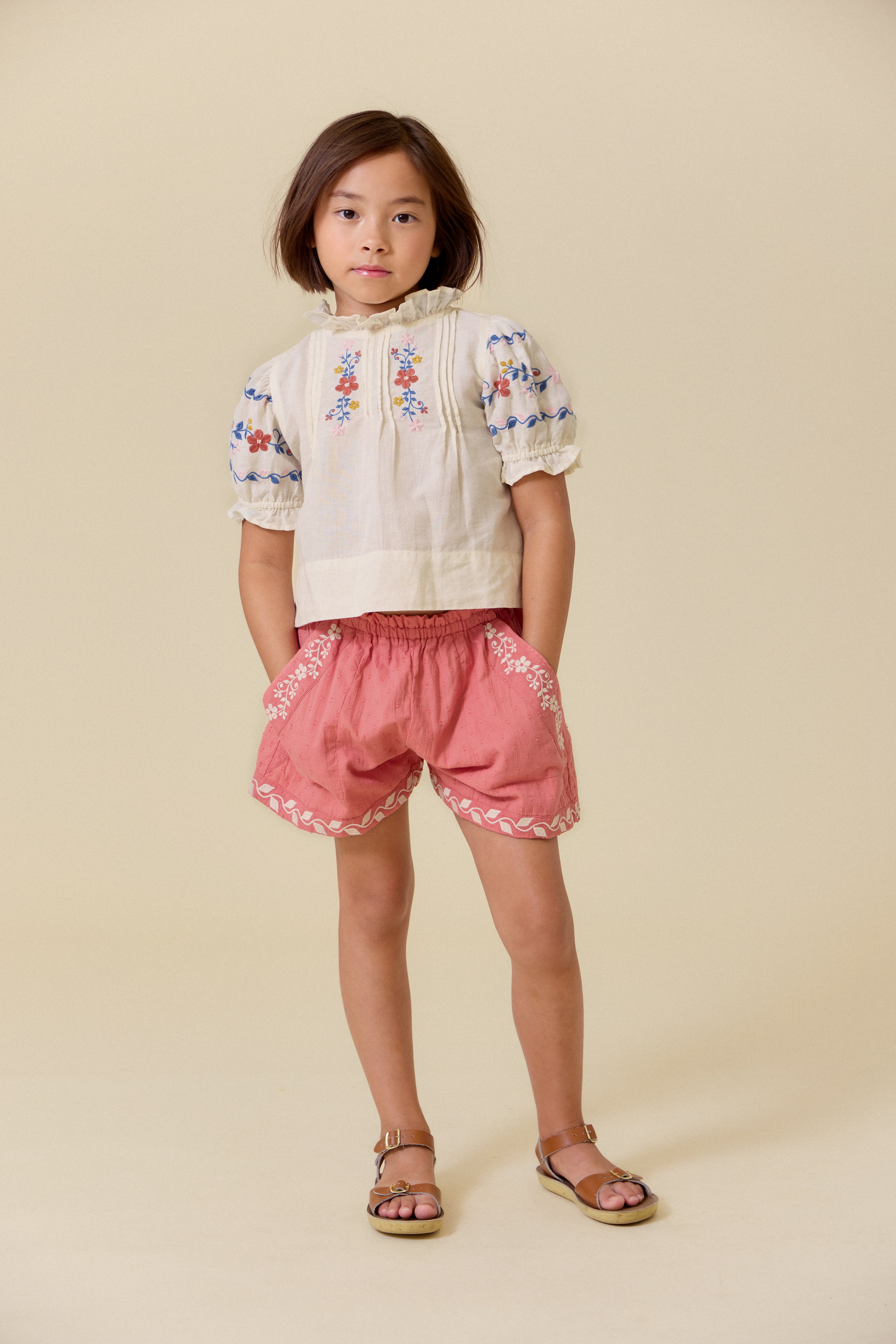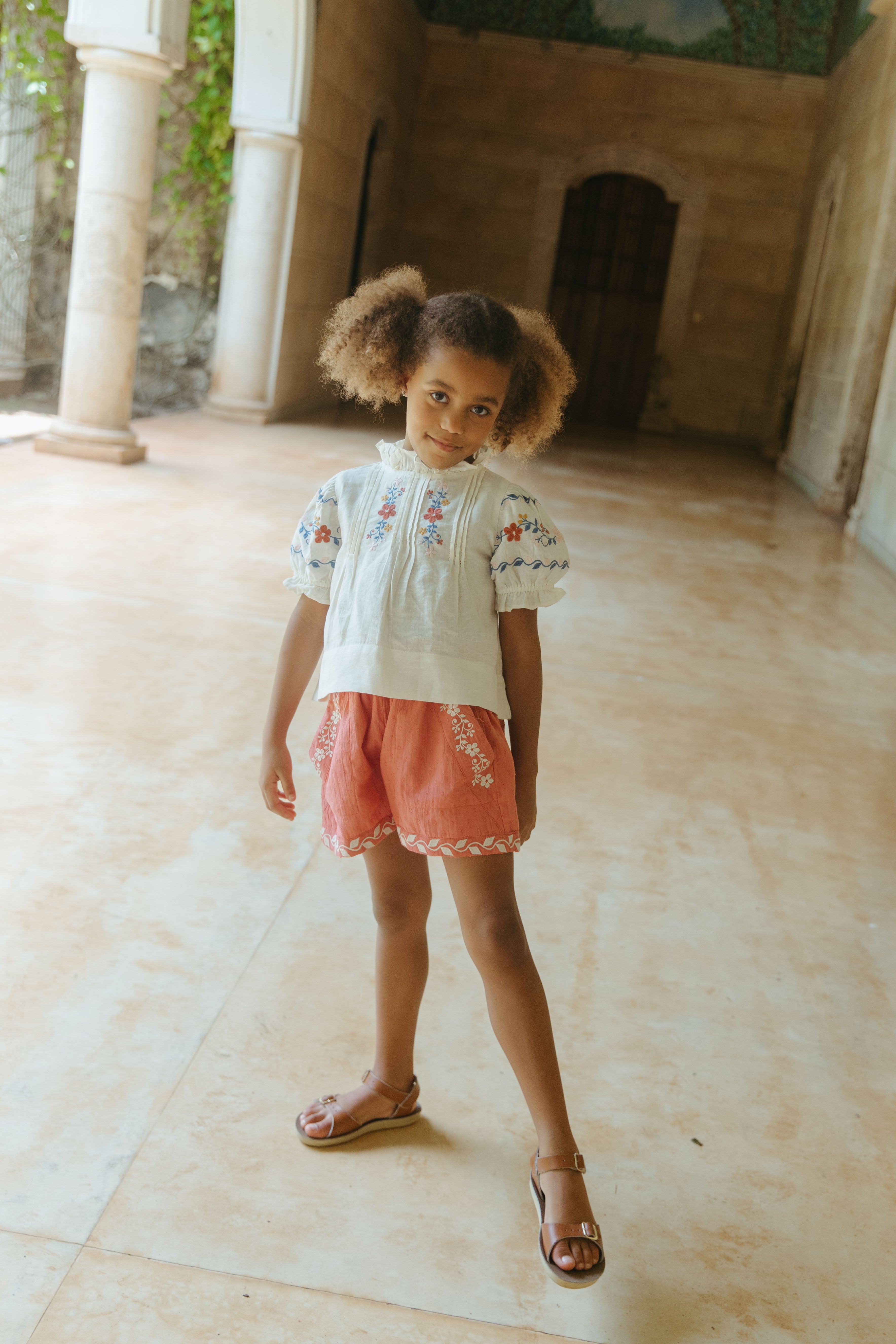 我們的紙袋短褲強勢回歸,推出更多繽紛色彩,採用中等厚度的亞麻棉混紡面料,完美平衡舒適與時尚,必將成為她夏季衣櫥的必備單品。褲腳和口袋飾以精緻刺繡,搭配柔軟的鬆緊腰帶,彈性好方便穿脫,讓孩子全天玩耍都輕鬆自在。這款短褲是溫暖季節的理想之選,與我們的 Luna 上衣和 Sailor 襯衫完美搭配,輕鬆打造日常魅力造型。