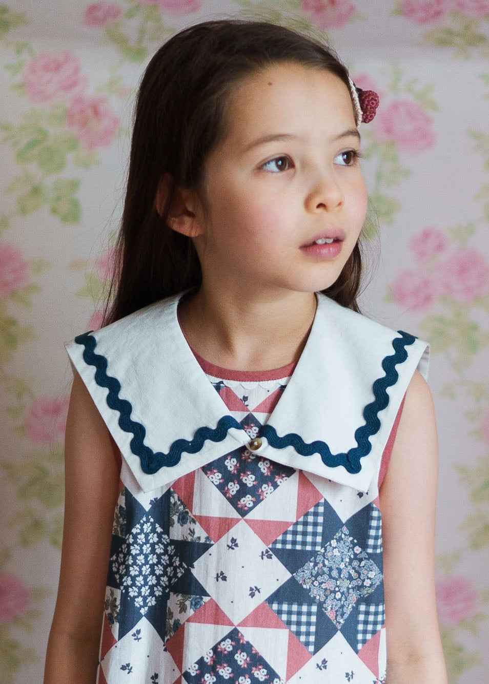 波浪花邊水手領是任何服裝的完美點睛之筆,尤其適合搭配我們的A字拼接Hannah連身裙。領口處採用連結設計。