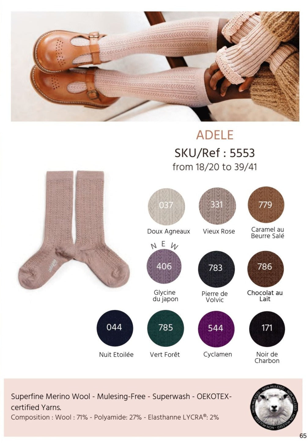 Collégien 是一個創立於 1947 年的法國品牌,提供嬰幼兒童襪子、褲襪和針織配飾,亦包括女士與男士的襪款。從系列的設計到包裝,所有產品均在法國製造。Collégien 已經能夠利用其專有技術製造高品質的襪子和褲襪系列,採用長纖維埃及棉、羊絨、絲綢或超柔軟的盧勒克斯面料,並憑藉其多變款式和舒適性,使其成為全球受歡迎的品牌。