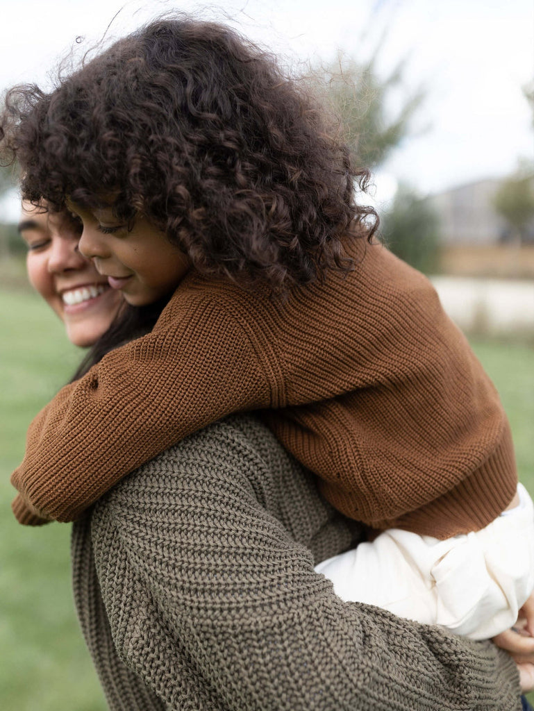 Our cozy, organic knit sweater has a classic style that pairs well with everything.
