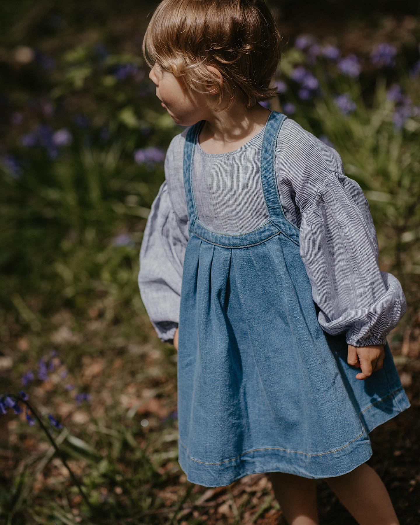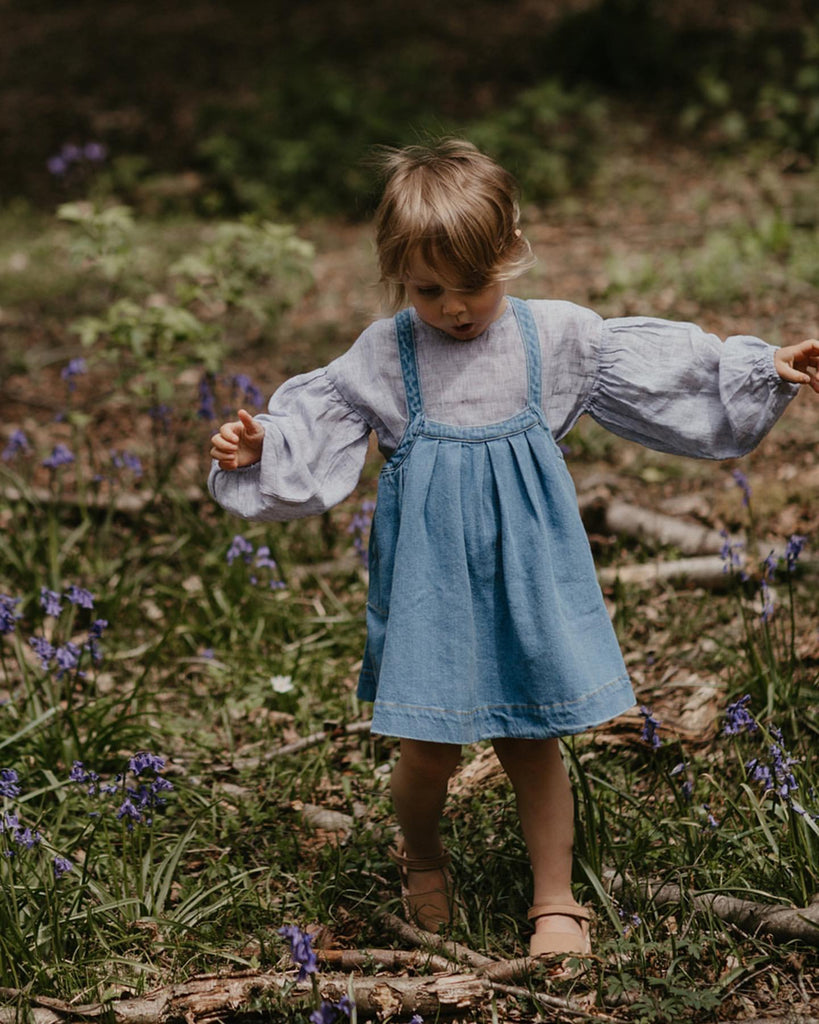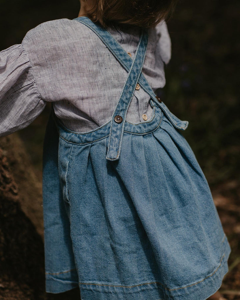 Comfortable, casual, and effortlessly stylish, our lightweight denim pinafore features the dreamiest loose fit that is lovingly crafted to handle all the dancing, twirling, and wild-hearted adventure your child can dream up!