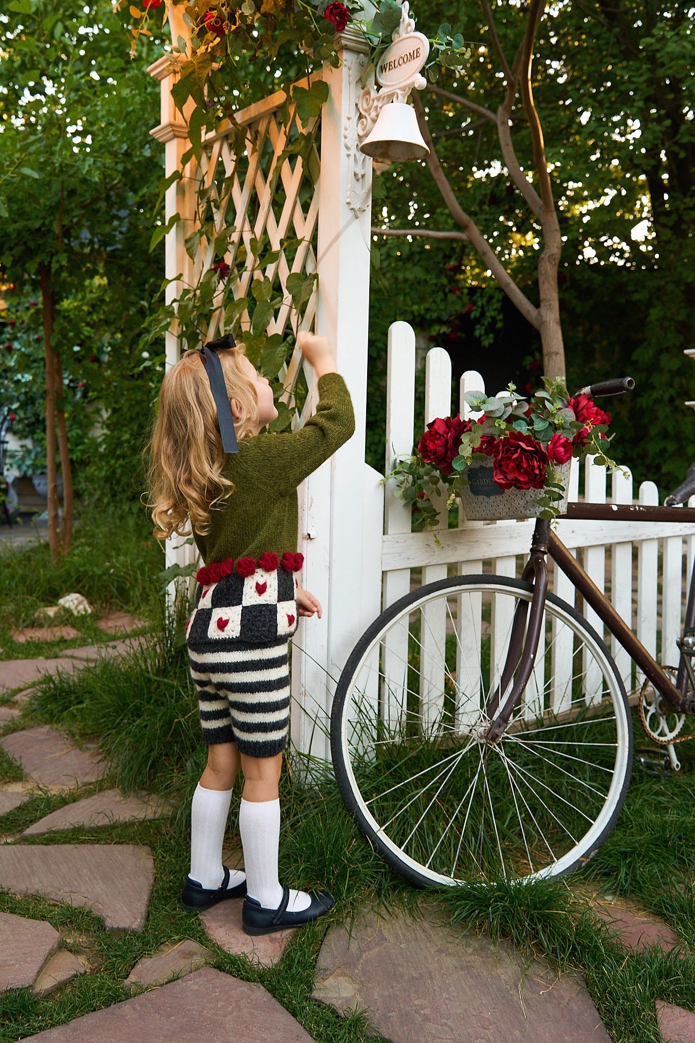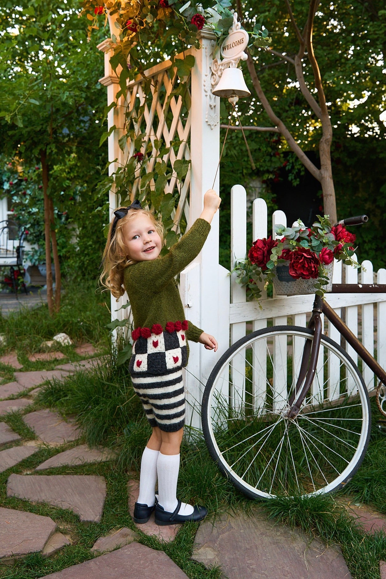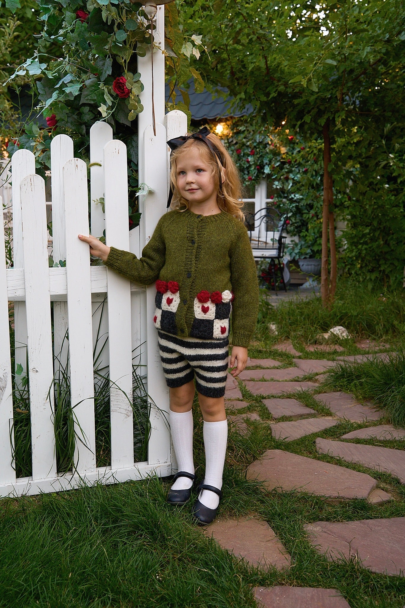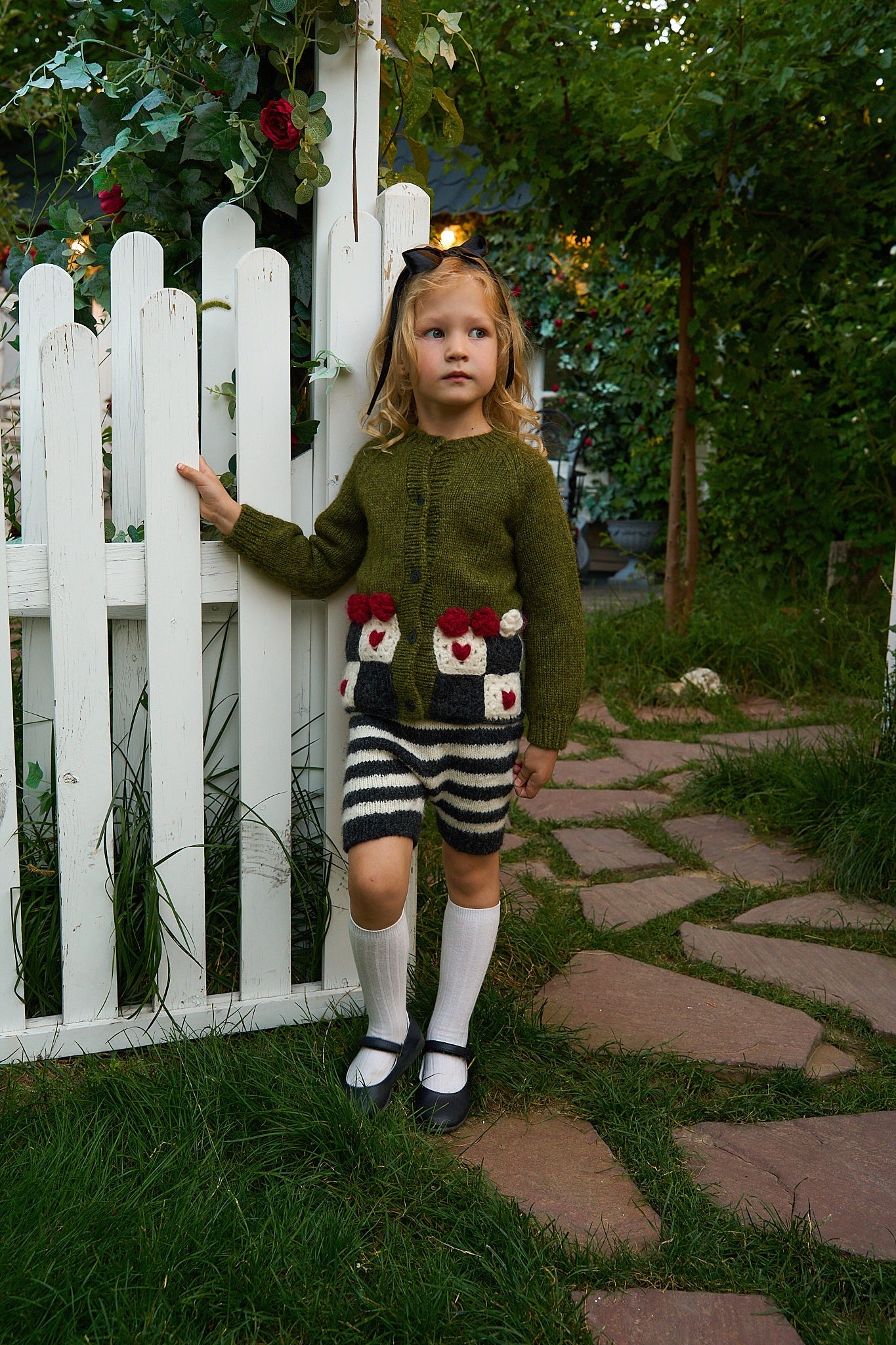 歡迎來到 Wonderland 像是掉進了兔子洞後,來到了奇幻的仙境王國,下擺的飾有玫瑰花球及方塊紅心,為整件衣服增添了一絲俏皮與古靈精怪的氣質。 這款外套由工匠以滿滿的愛與細膩手工編織而成,是陪伴孩子一起踏上奇幻夢境冒險旅程之選。🌸