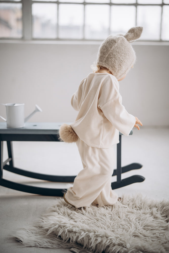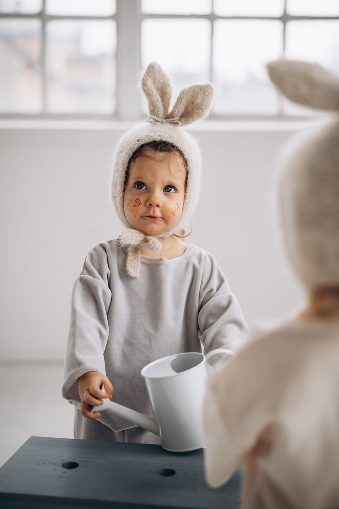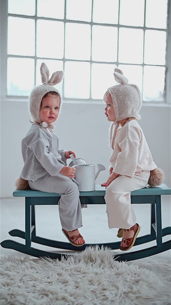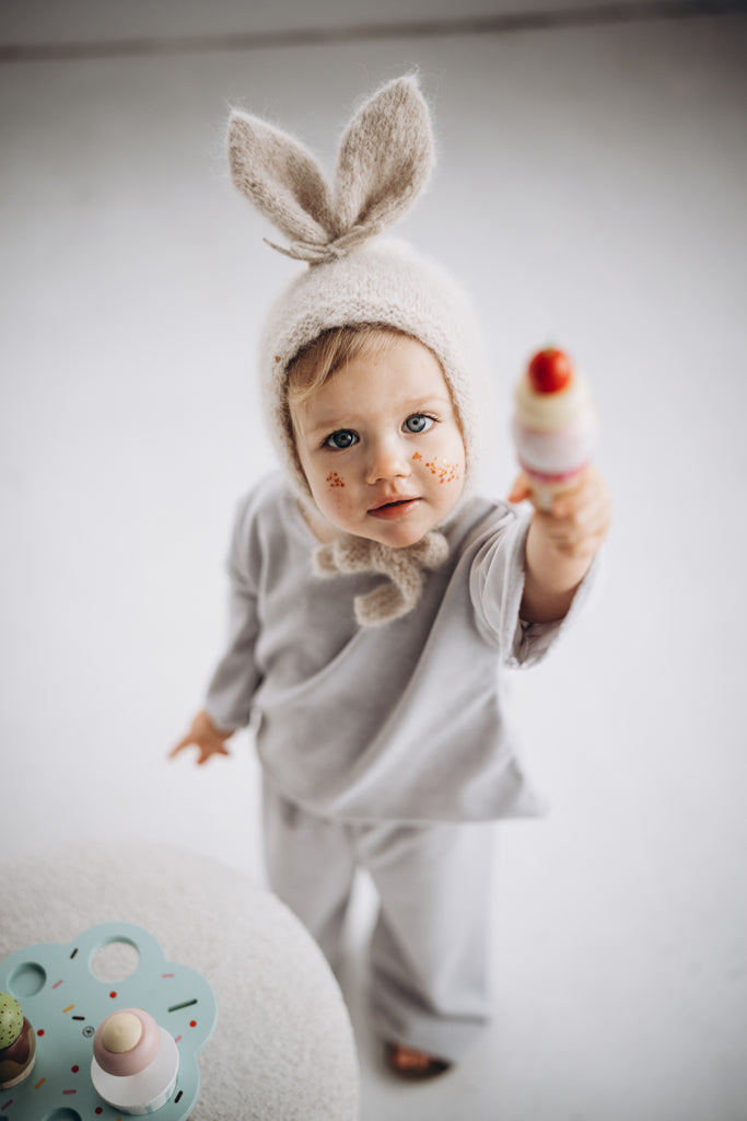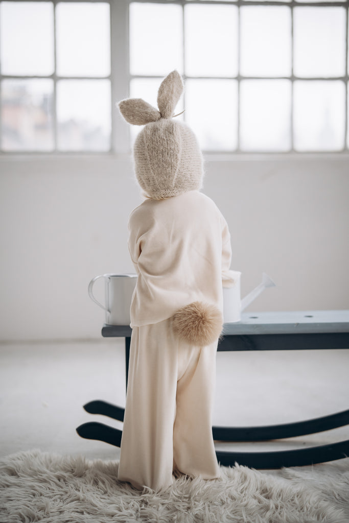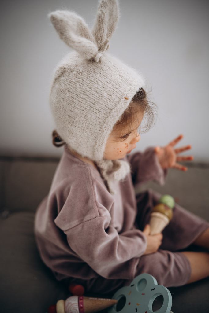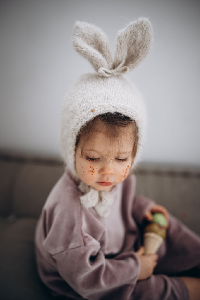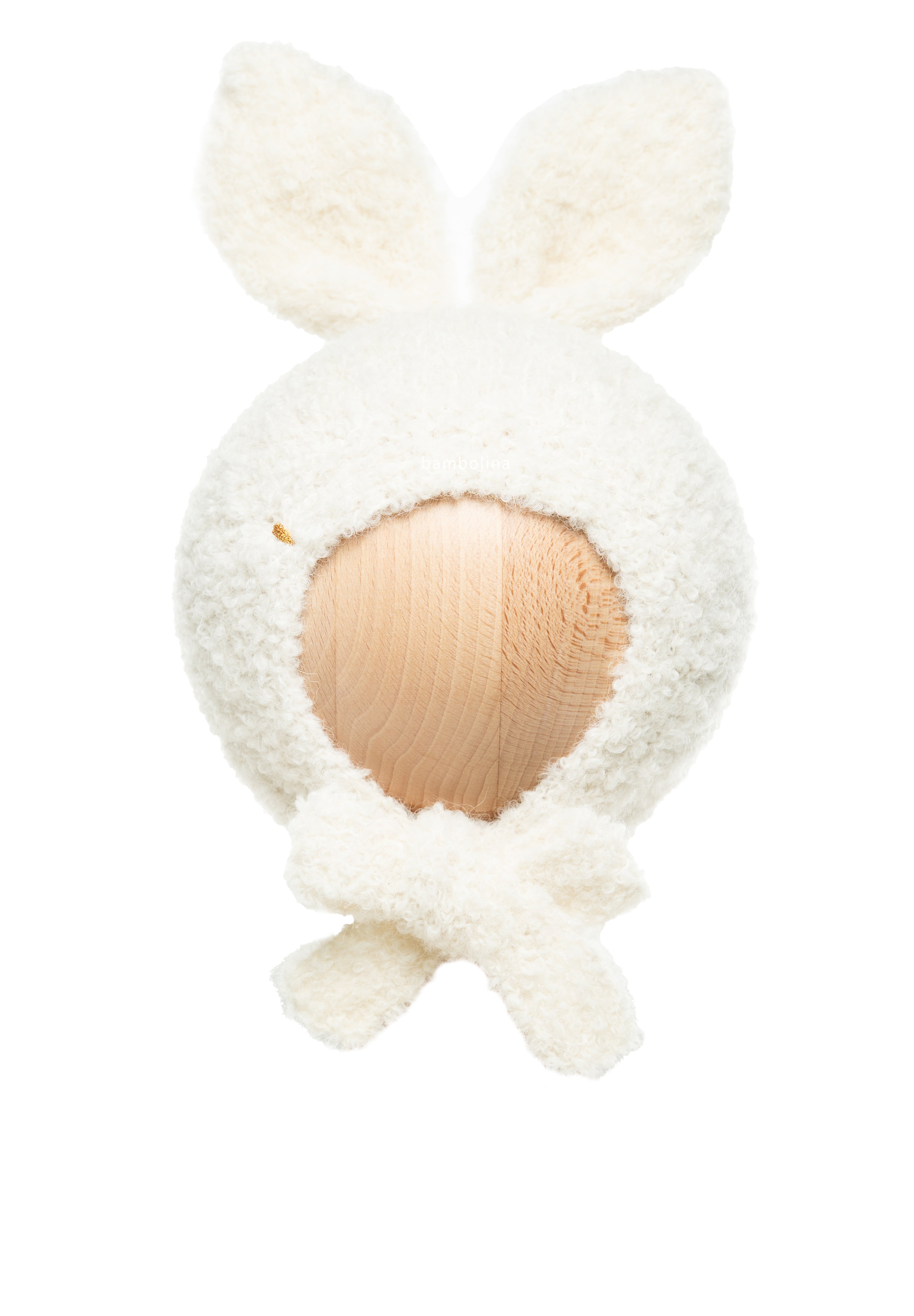 預購 bambolina, Boucle Lapin hat white 兔子毛圈針織造型帽 白色 6m-3y