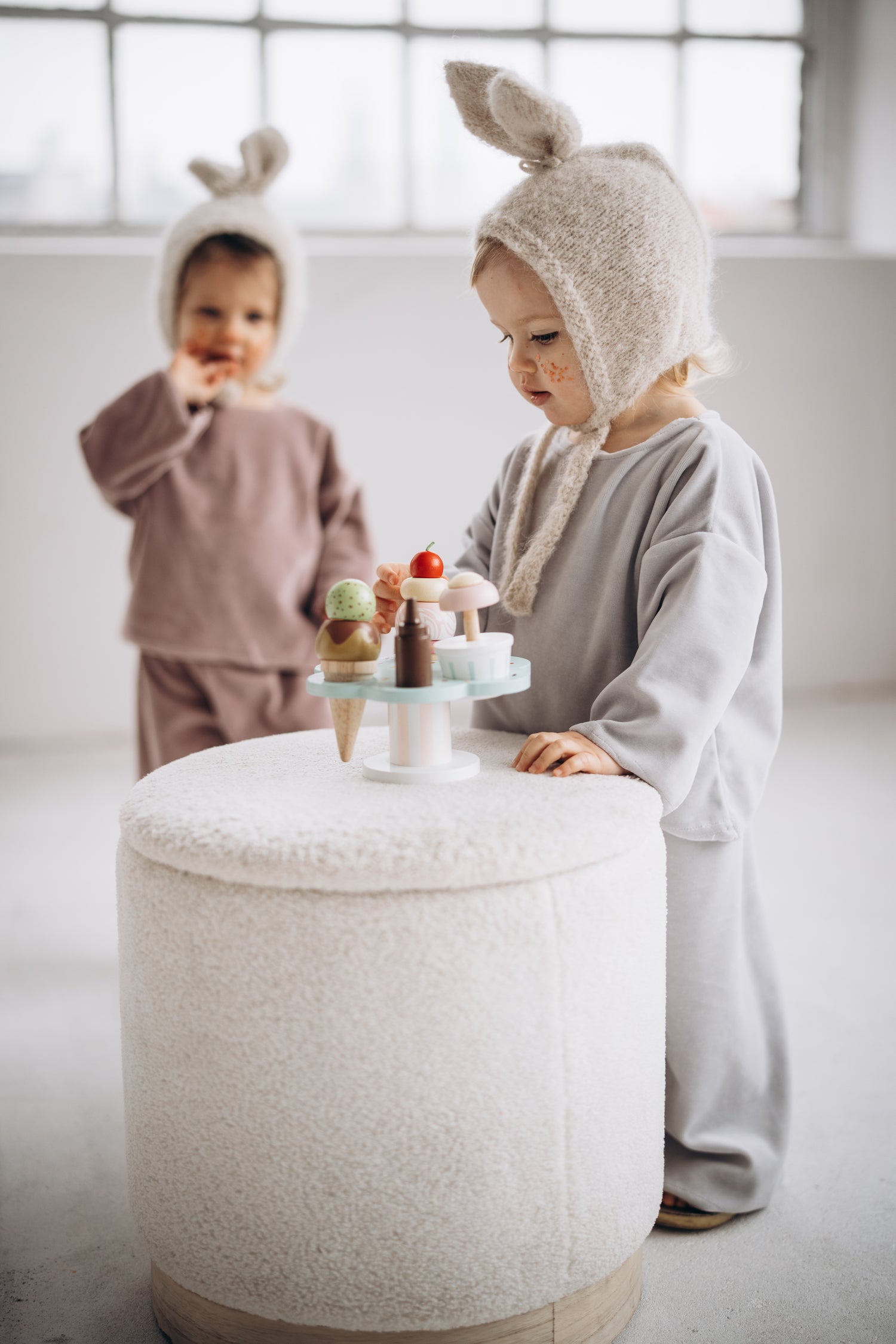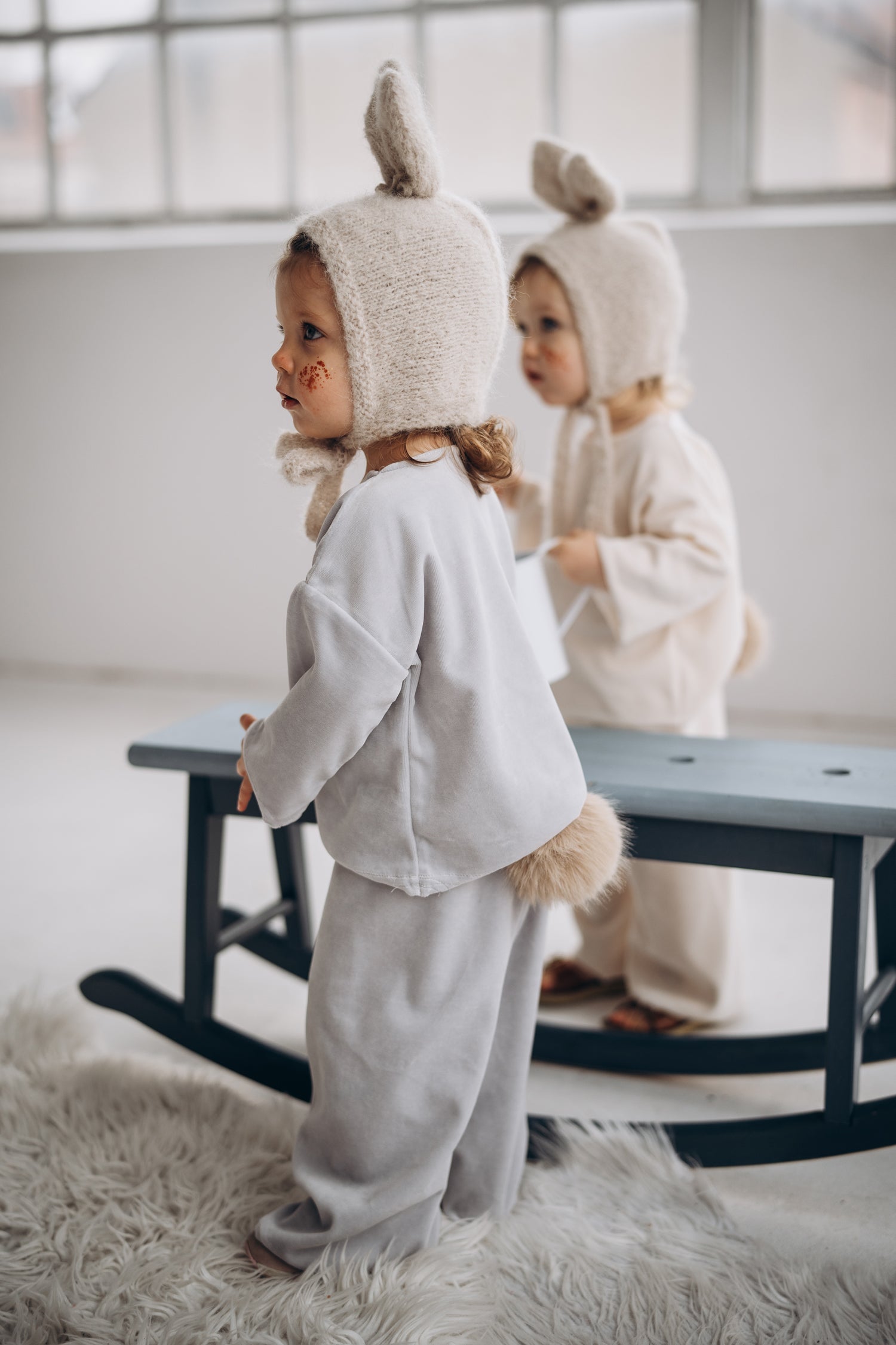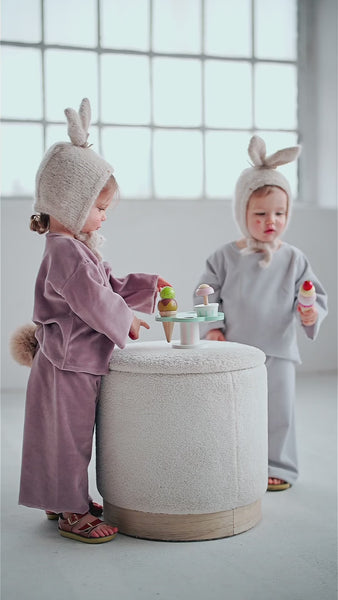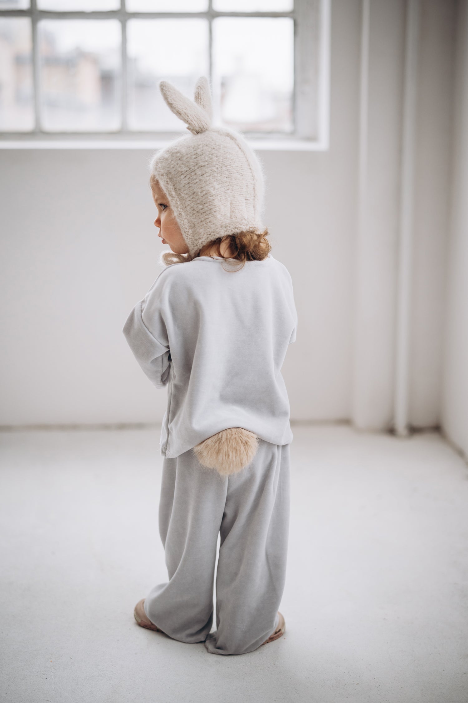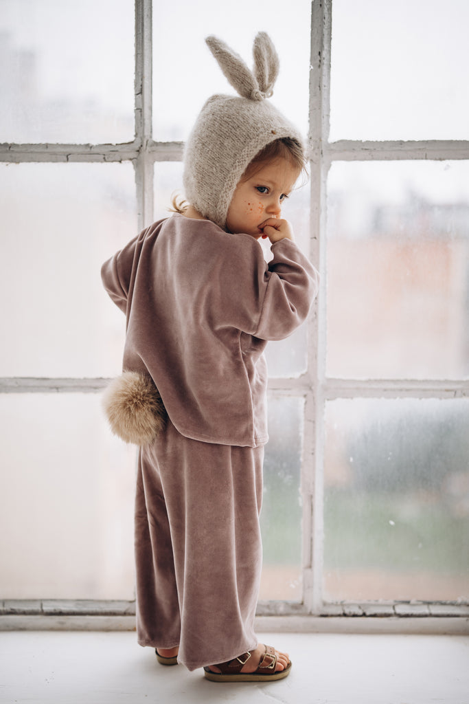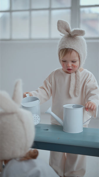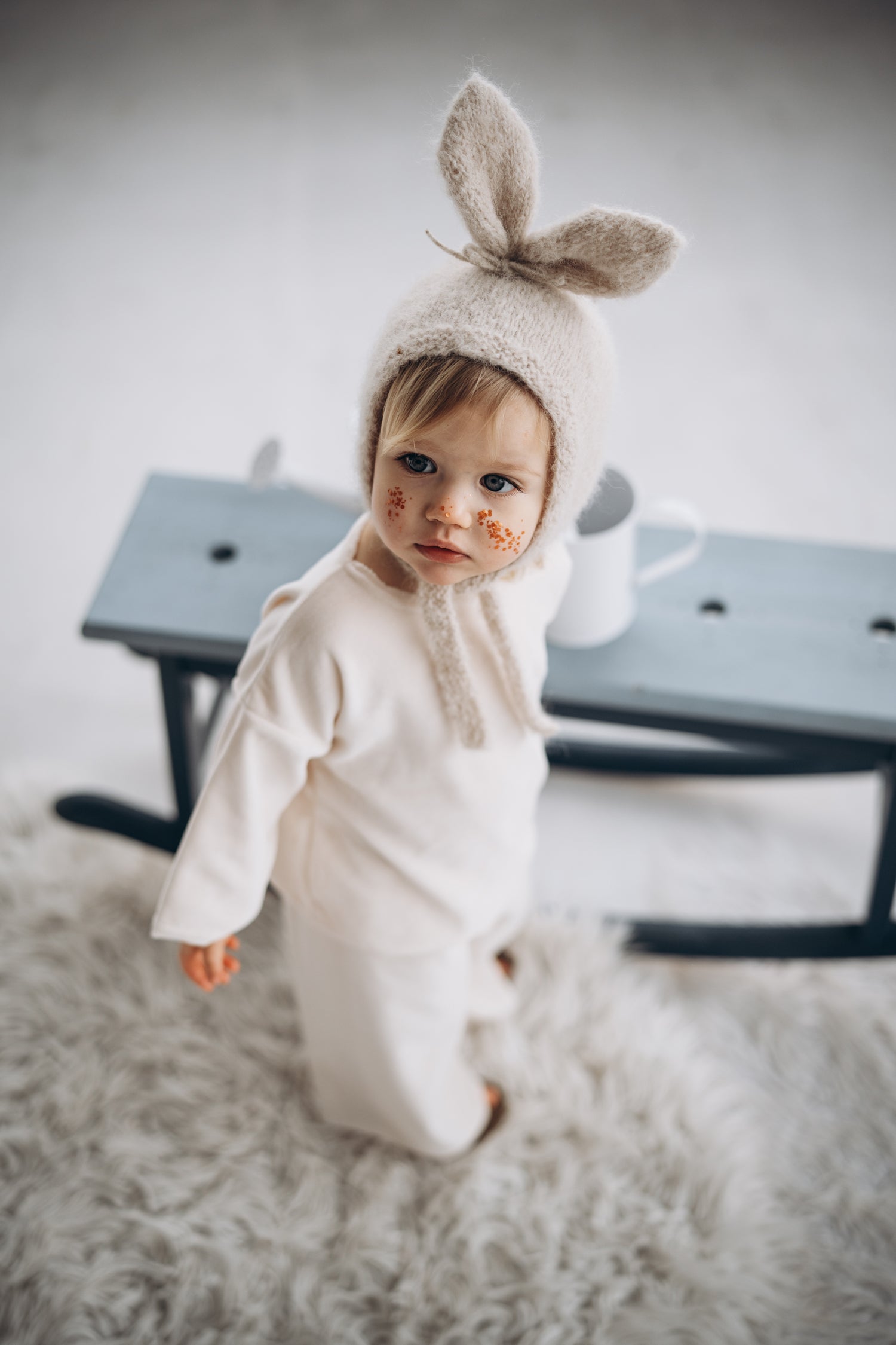預購 bambolina, Boucle Lapin hat white 兔子毛圈針織造型帽 白色 6m-3y