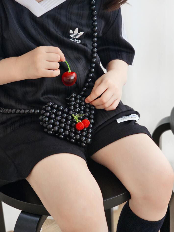 在氣泡水般的透明系列之後,我們帶來更具魅力的黑色與珍珠版本!閃閃發亮的珠珠像糖果一樣可愛,紅櫻桃點綴在愛心上,就像隨身帶著一顆甜甜的糖,甜美與優雅兼具,都是隨身的夢幻小物,讓每一天都讓寶貝們像來到遊樂園般繽紛快樂! 🍒💫