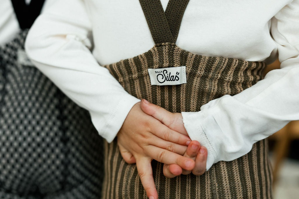 Silly Silas, Footed (Children) Seaweed & Peanut Striped 復古經典羅紋有機棉吊帶褲襪 海藻&花生條紋 3m-2y 特別款
