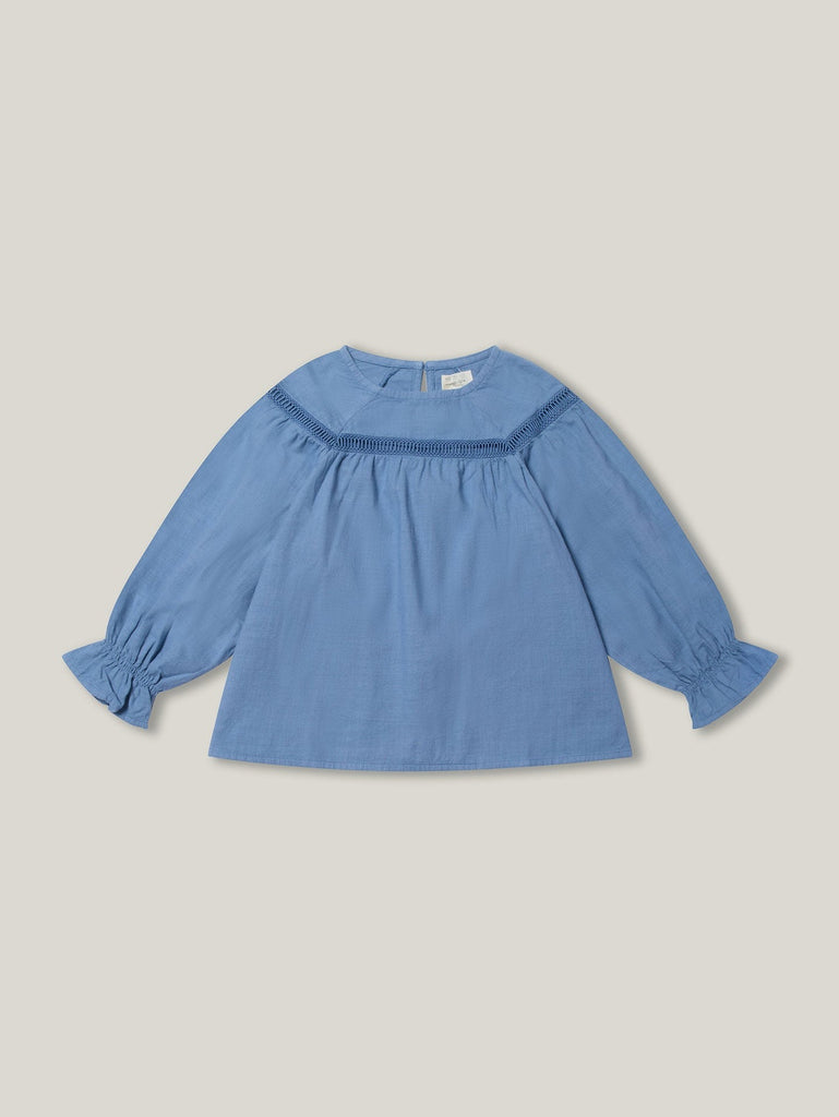 The Simple Folk, The Beatrix Top Cornflower Blue 有機棉鏤空刺繡澎袖上衣 矢車菊藍 12m-5y