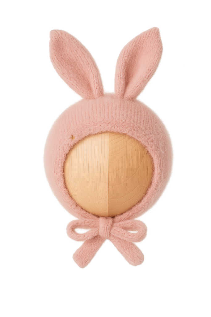 bambolina, Teddy Bear bonnet - pink marshmallow 泰迪熊連帽圍巾針織造型帽 粉棉花糖 6m-4y+