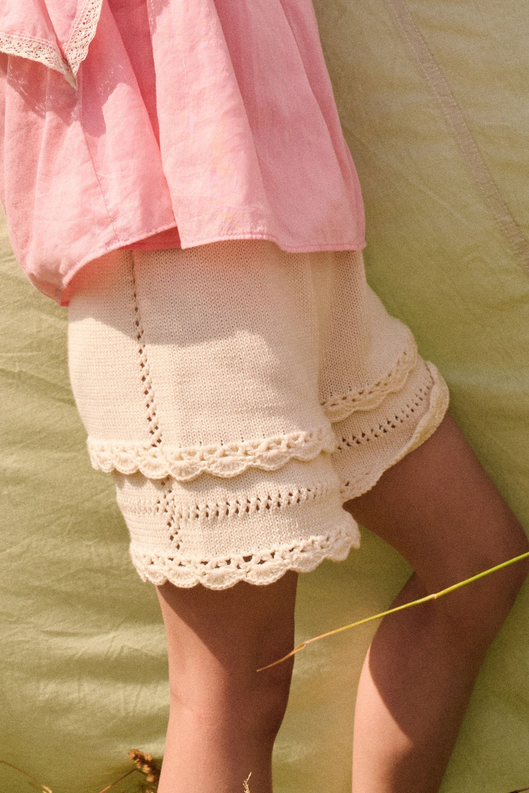 - 純色針織短褲。