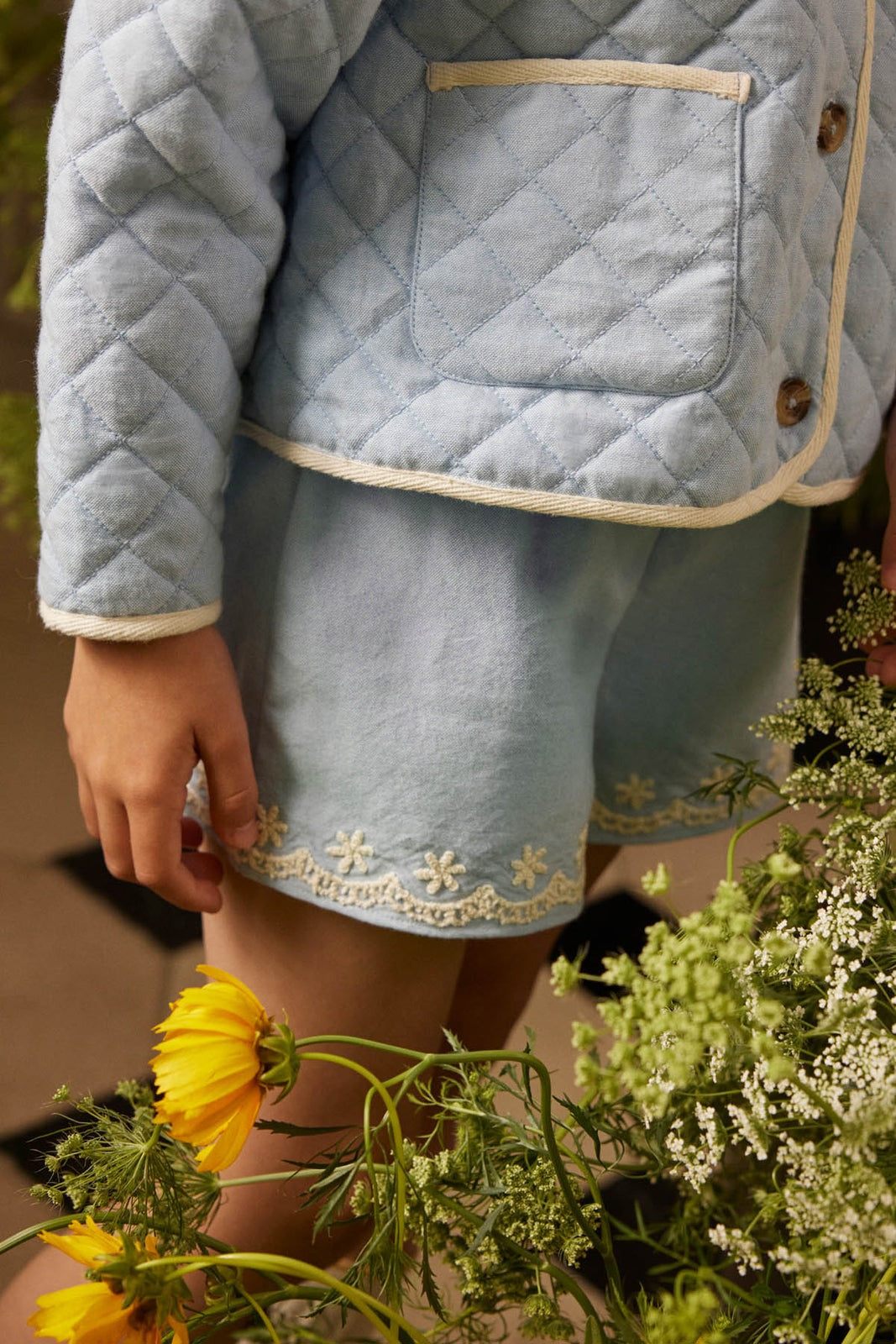- 花卉刺繡細節。
