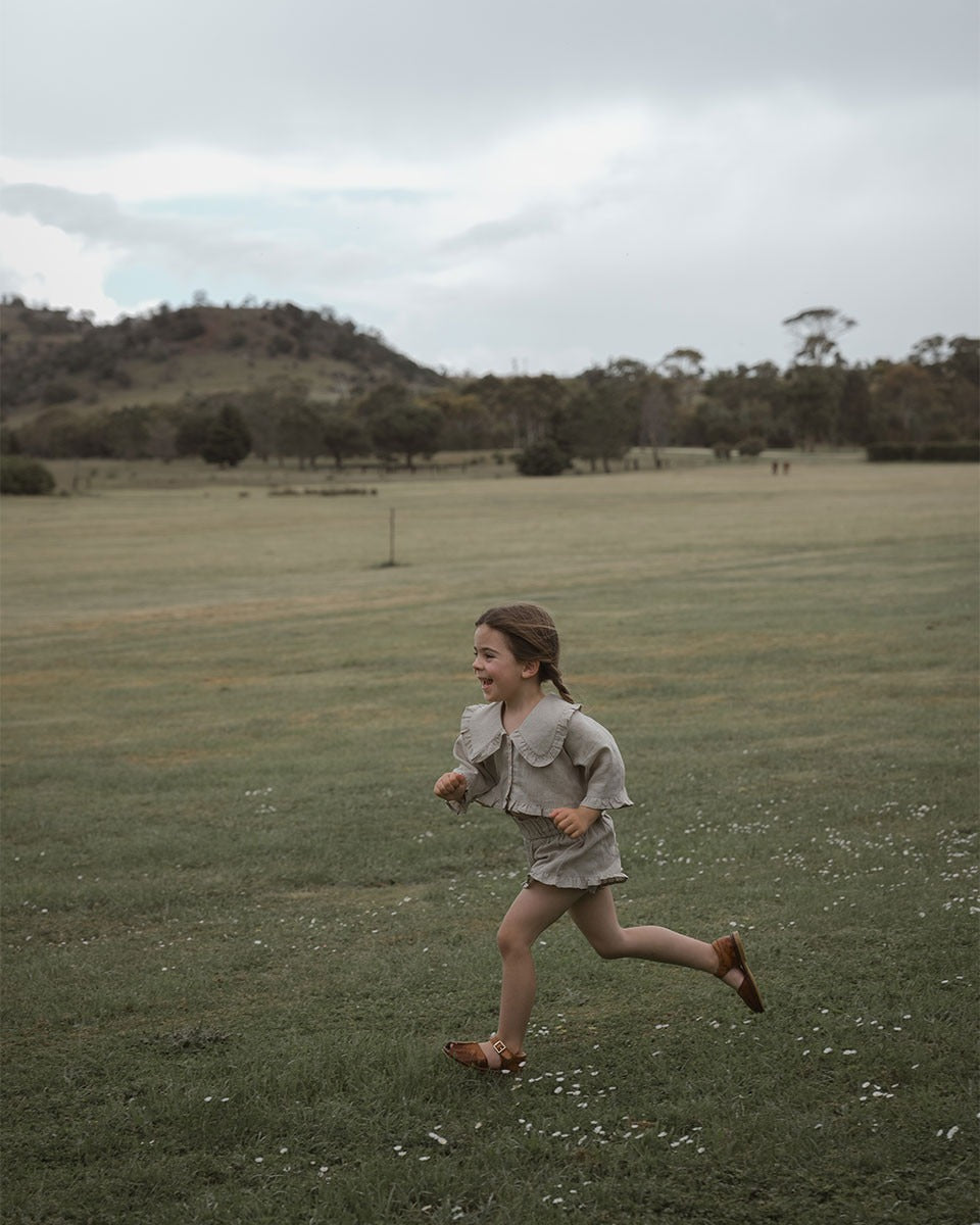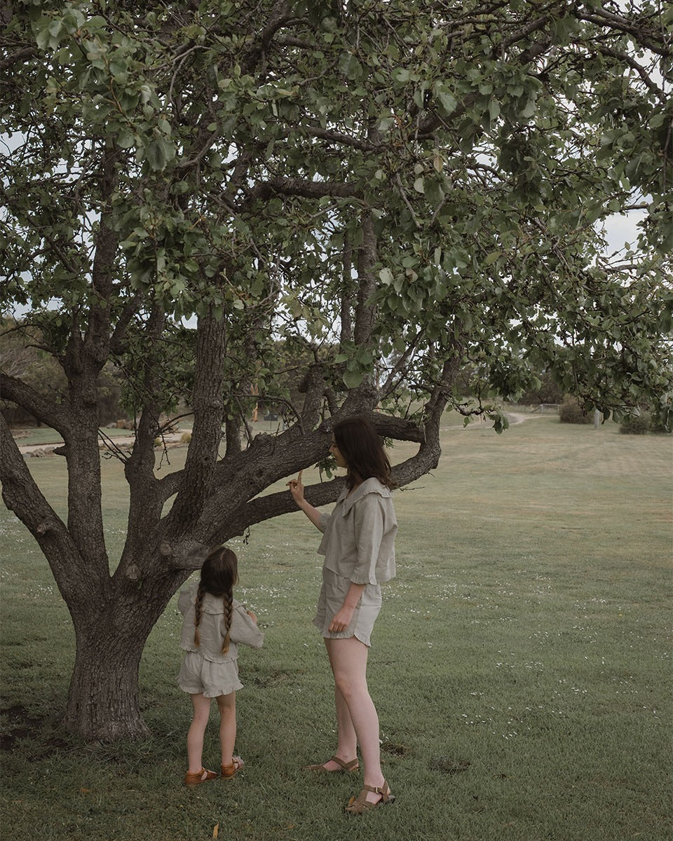 The principal of ethically sustained kids fashion are very important to us. Our pieces are produced slowly and kindly, with minimal impact on the environment. We do not use plastic in our packaging and we also do not print our invoice so we can help reduce unnecessary waste to the landfill.