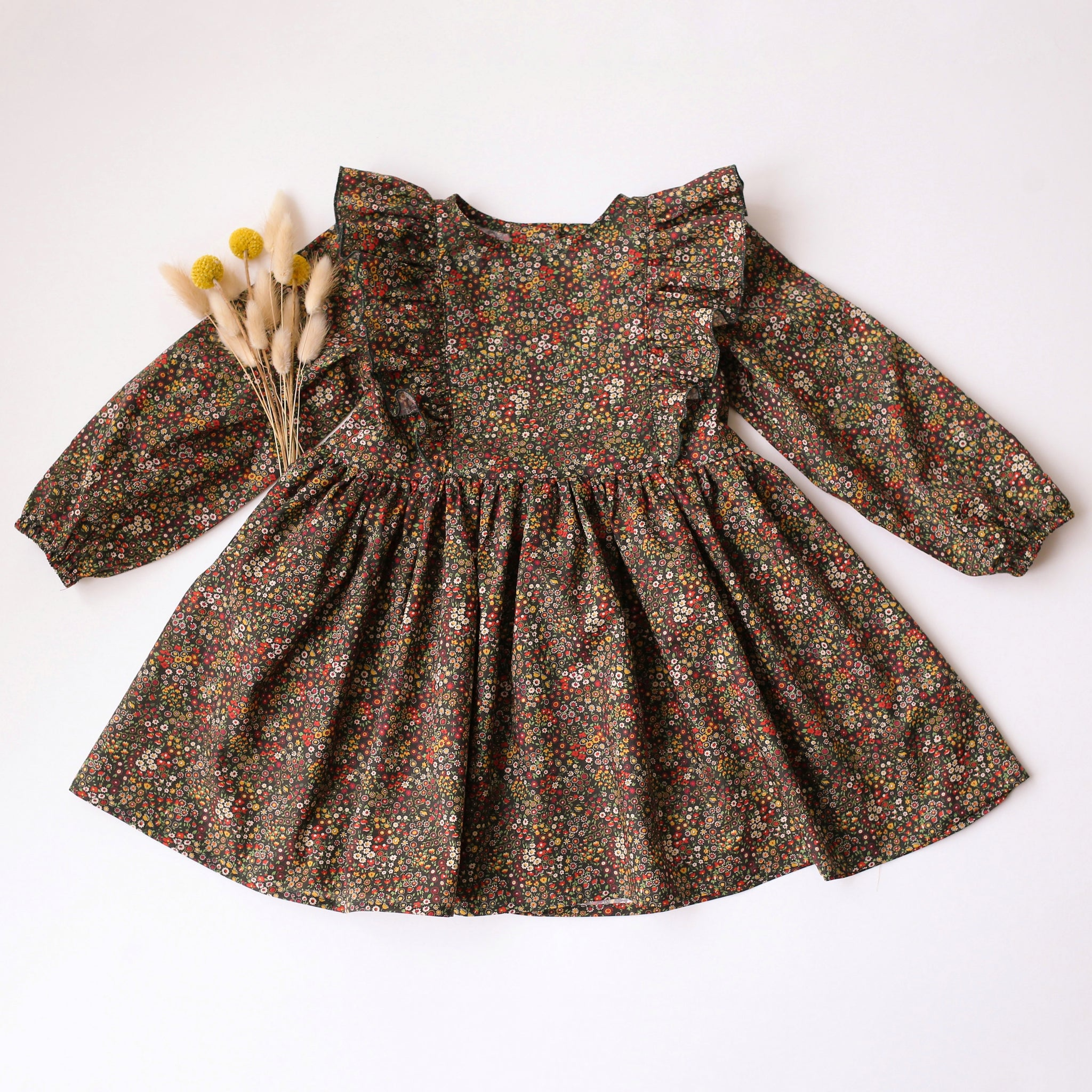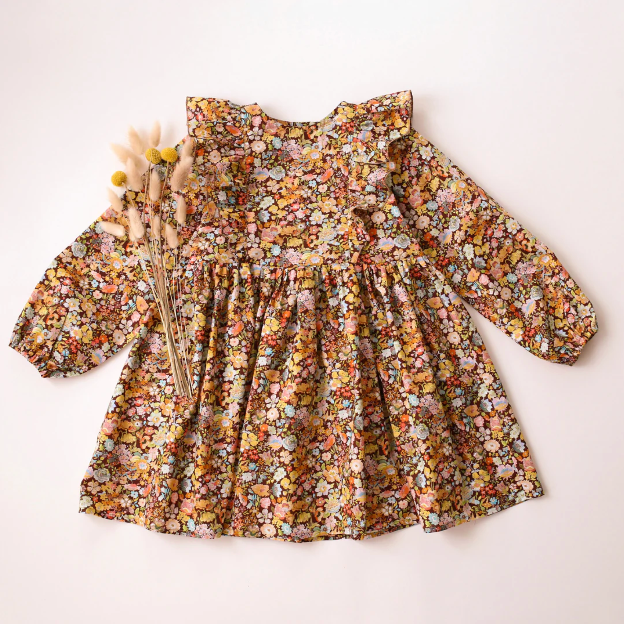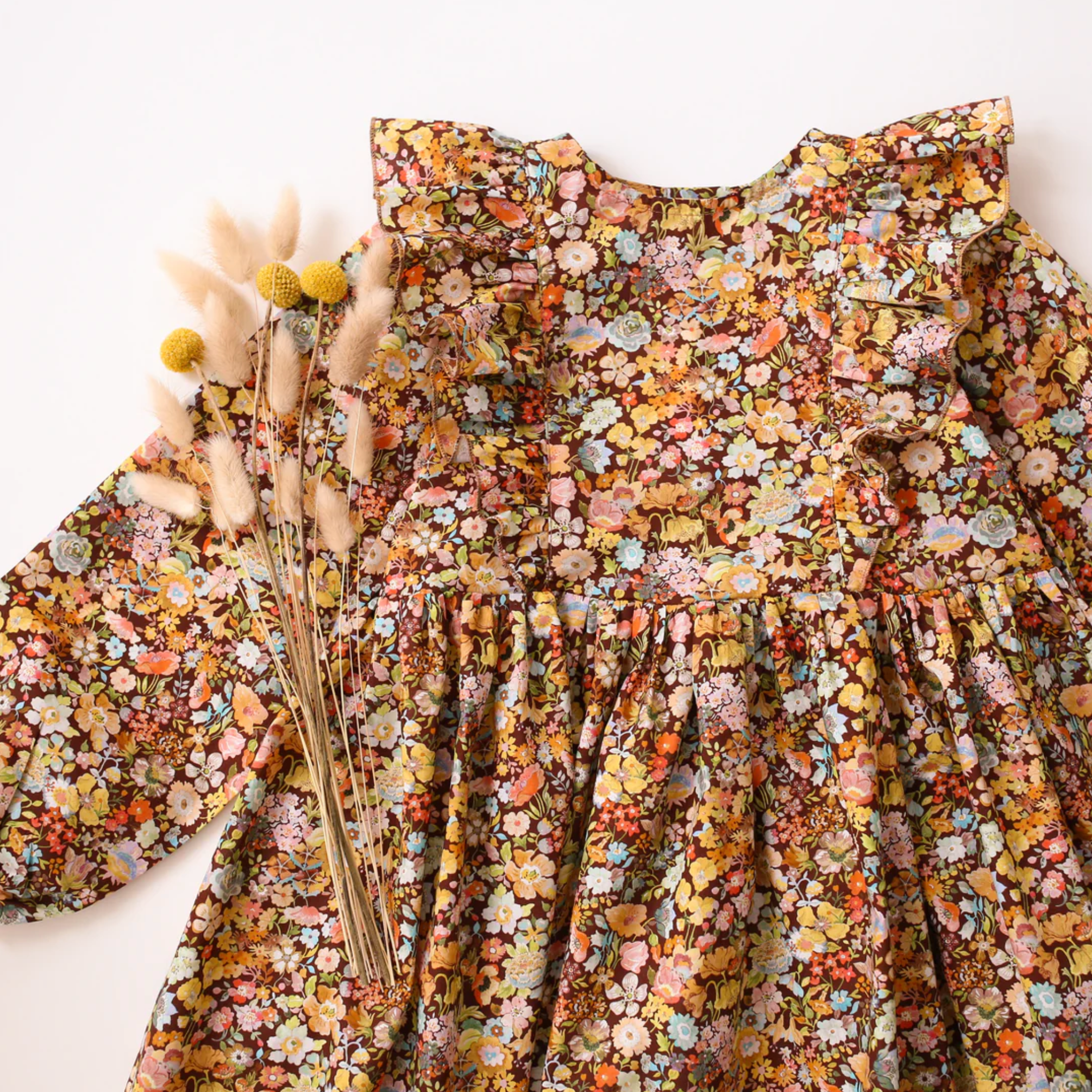 預購, Long Sleeve Ruffle Dress 經典草地Liberty長袖荷葉肩洋裝 6m-8y 多色可選