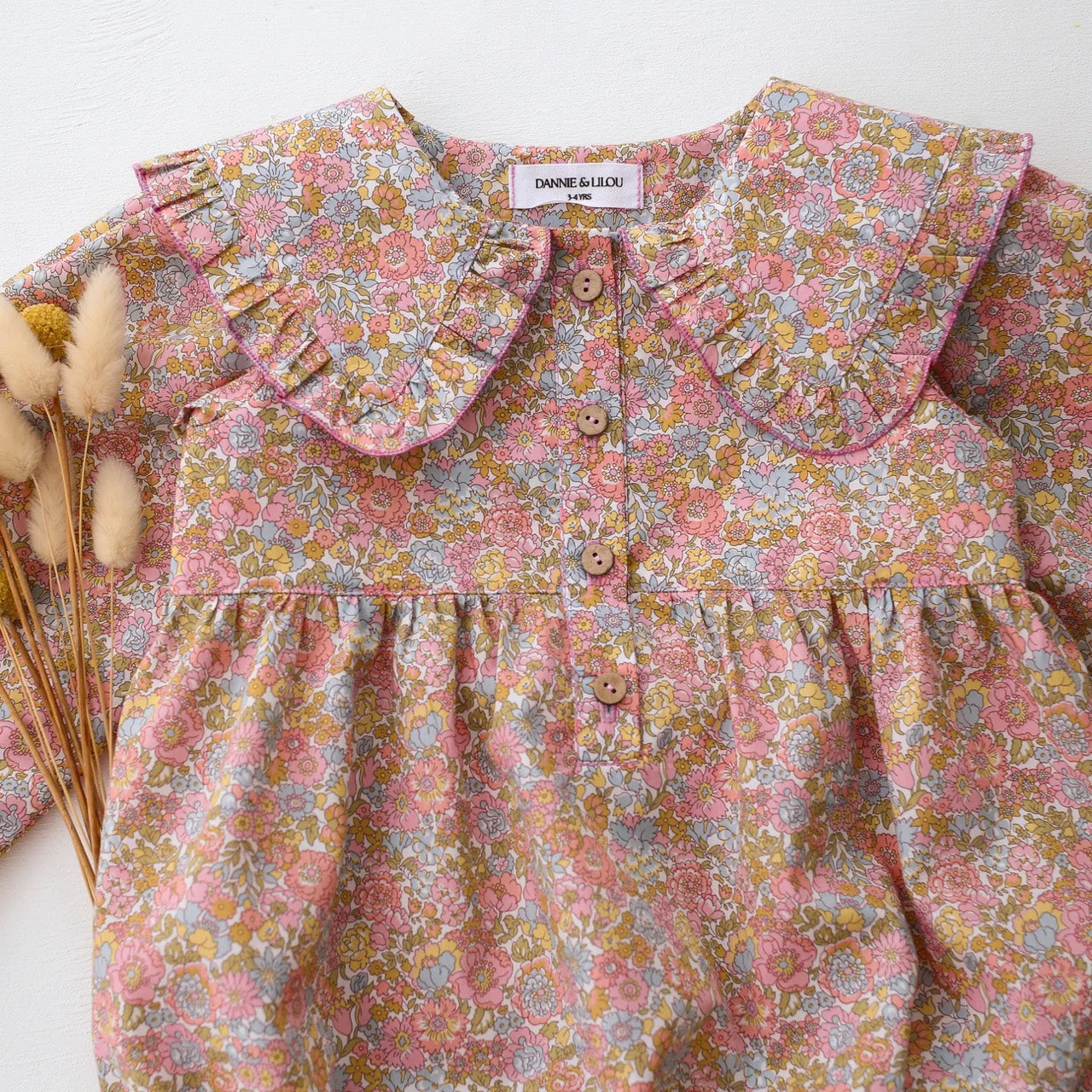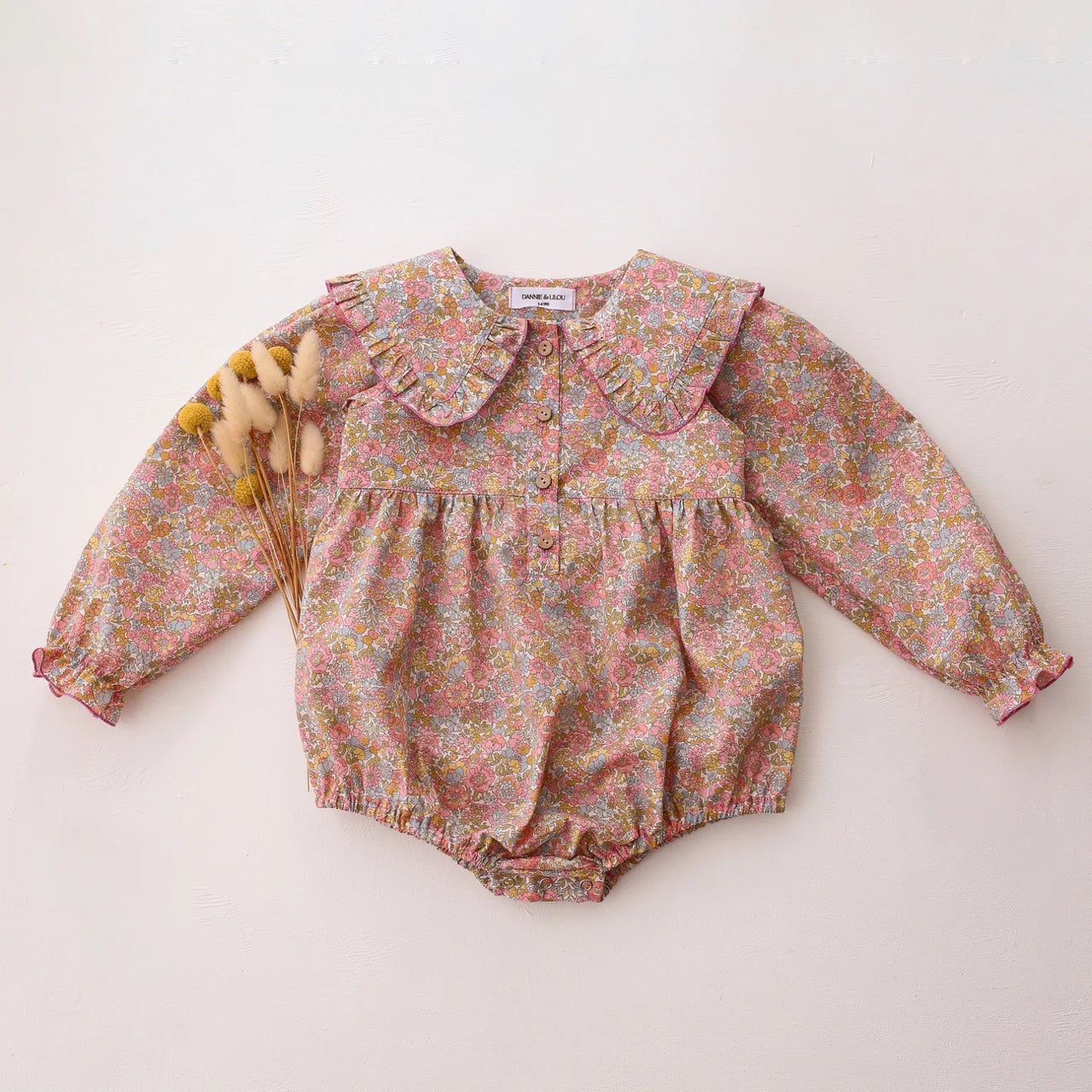 預購, Long Sleeve Frilled Collar Bubble Playsuit 長袖褶邊領泡泡Liberty連身包屁衣 6m-4y 多色可選