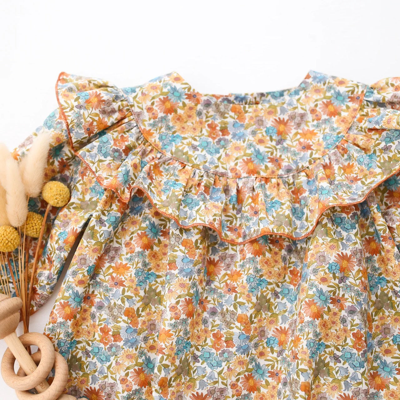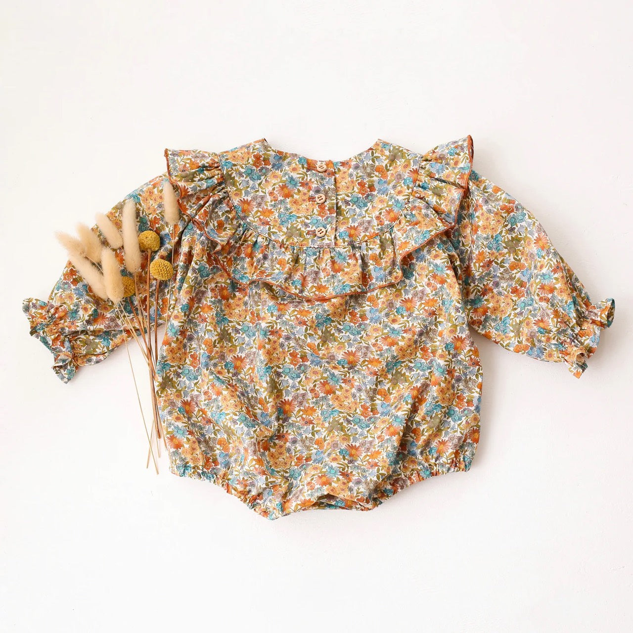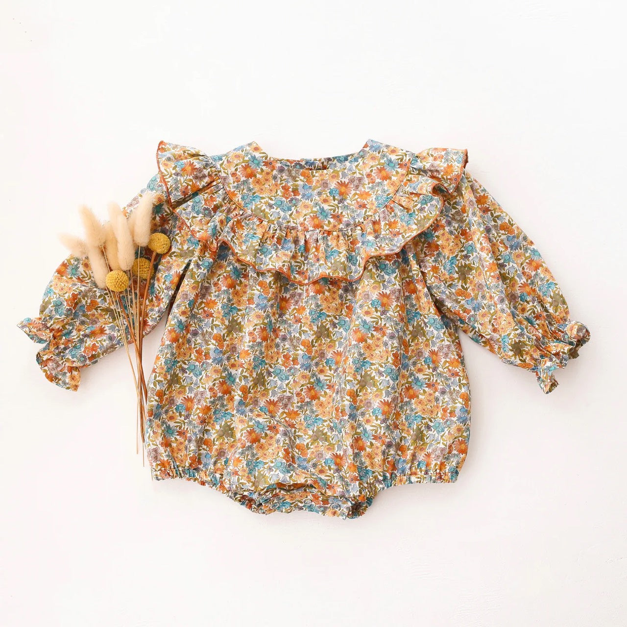 預購, Long Sleeve Ruffle Round Yoke Bubble Playsuit 荷葉邊圓領泡泡Liberty連身包屁衣 6m-3y 多色可選