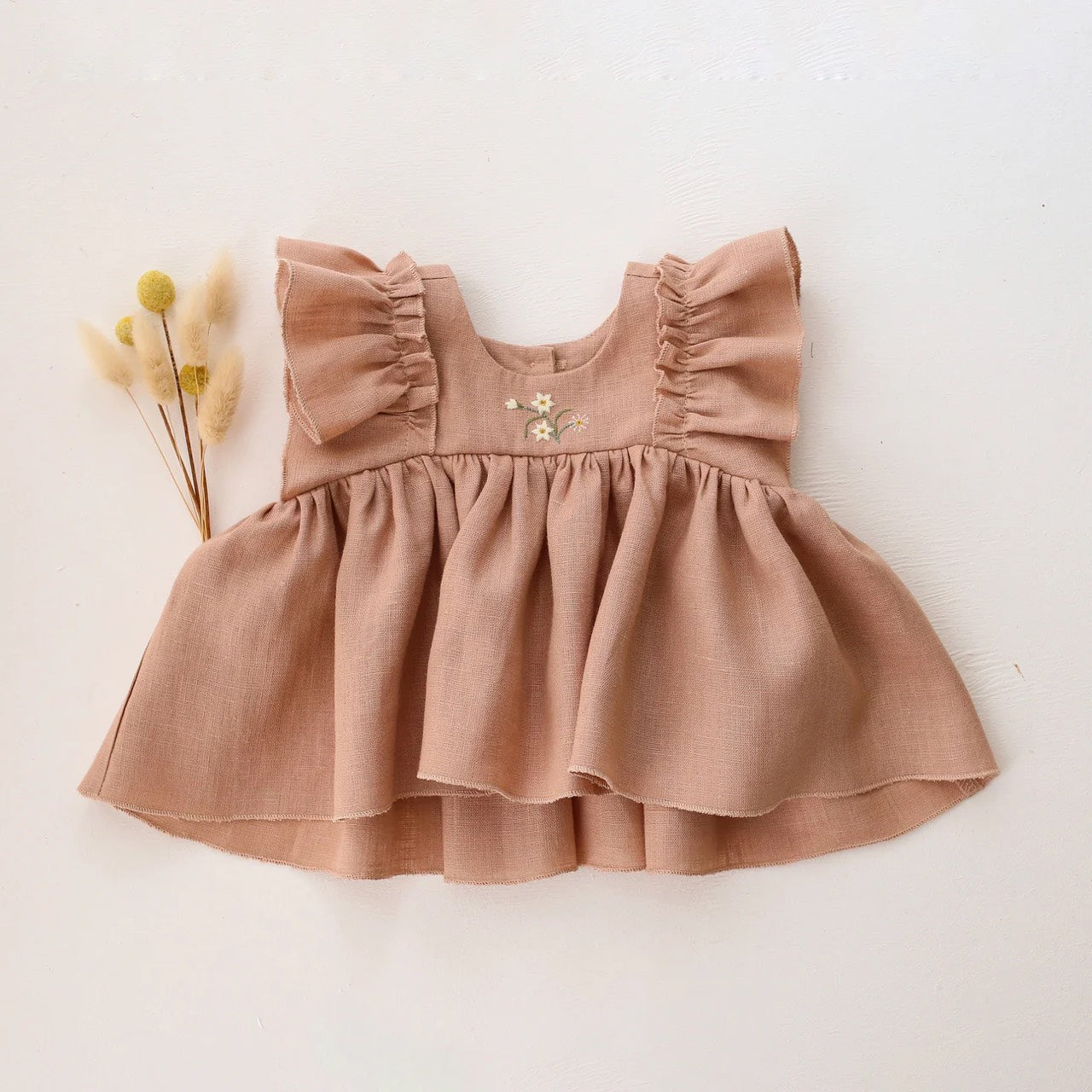 預購, 刺繡系列 Ruffled Babydoll Bodice Top 荷葉邊娃娃裝飄逸背扣上衣 6m-10y 多色可選