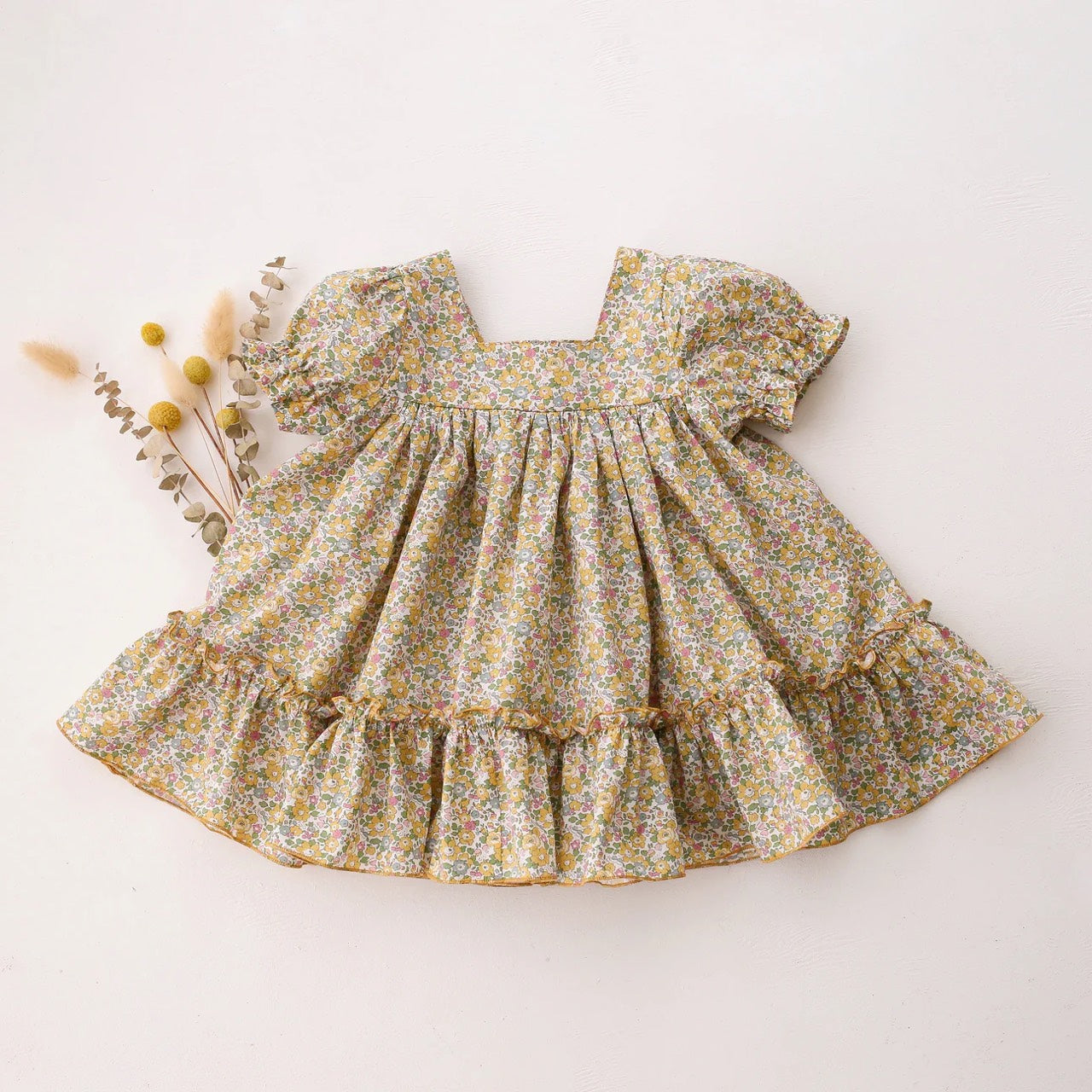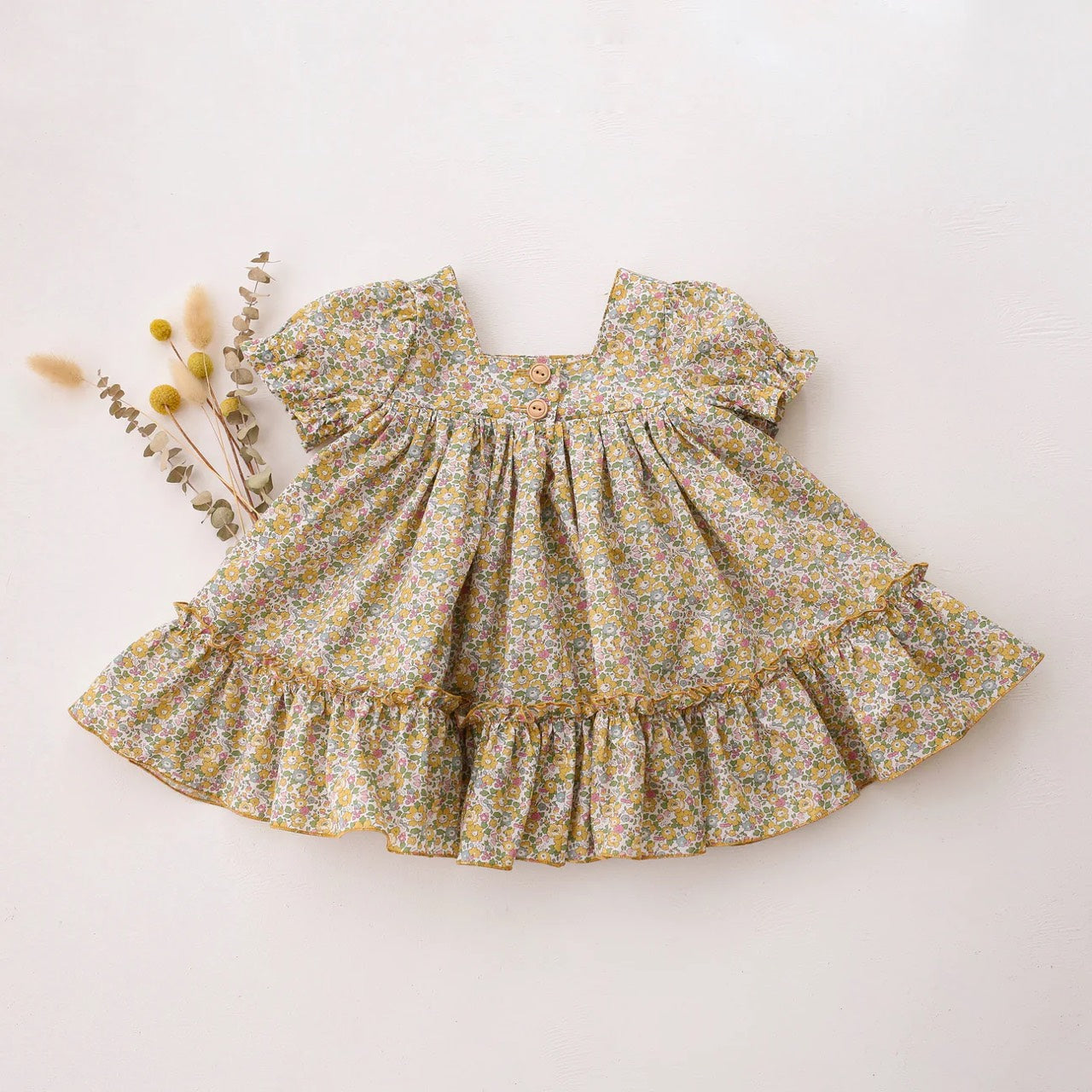 預購, Short Sleeve Square Neck Ruffled Hem Top 方領層次荷葉泡泡Liberty短袖上衣 6m-10y 多色可選