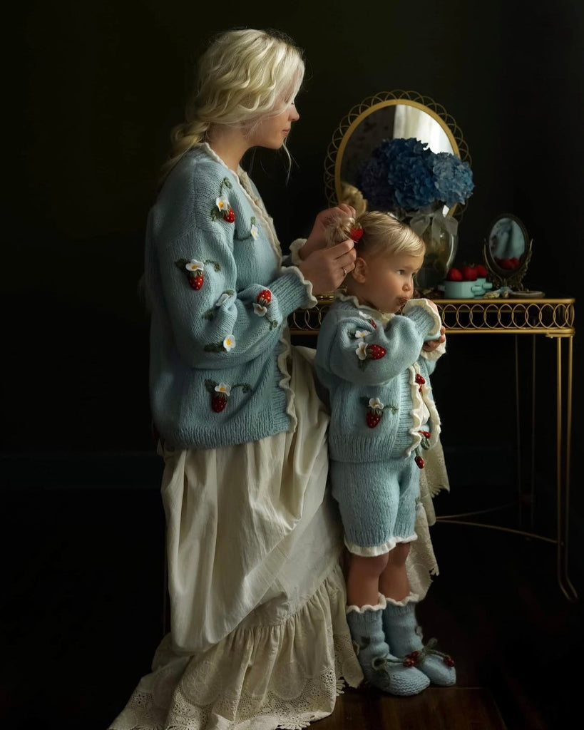 這款 草莓造型嬰兒針織襪,為小寶貝帶來溫暖又可愛的冬日呵護。🍓草莓綁帶能牢固固定鞋身,高彈性襪口貼合腿部,不易脫落。採用最柔軟的 Baby Alpaca 小羊駝毛線 手工編織而成,觸感輕盈細緻,保暖度極佳。讓小寶貝的雙腳在寒冷季節中始終保持溫暖與舒適。🧶自穿可愛時分或贈送親朋好友的最佳禮物。無論是冬日漫步、全家福,還是只是想讓一份魔法在整個季節伴您左右,都是您和寶貝最理想之選。