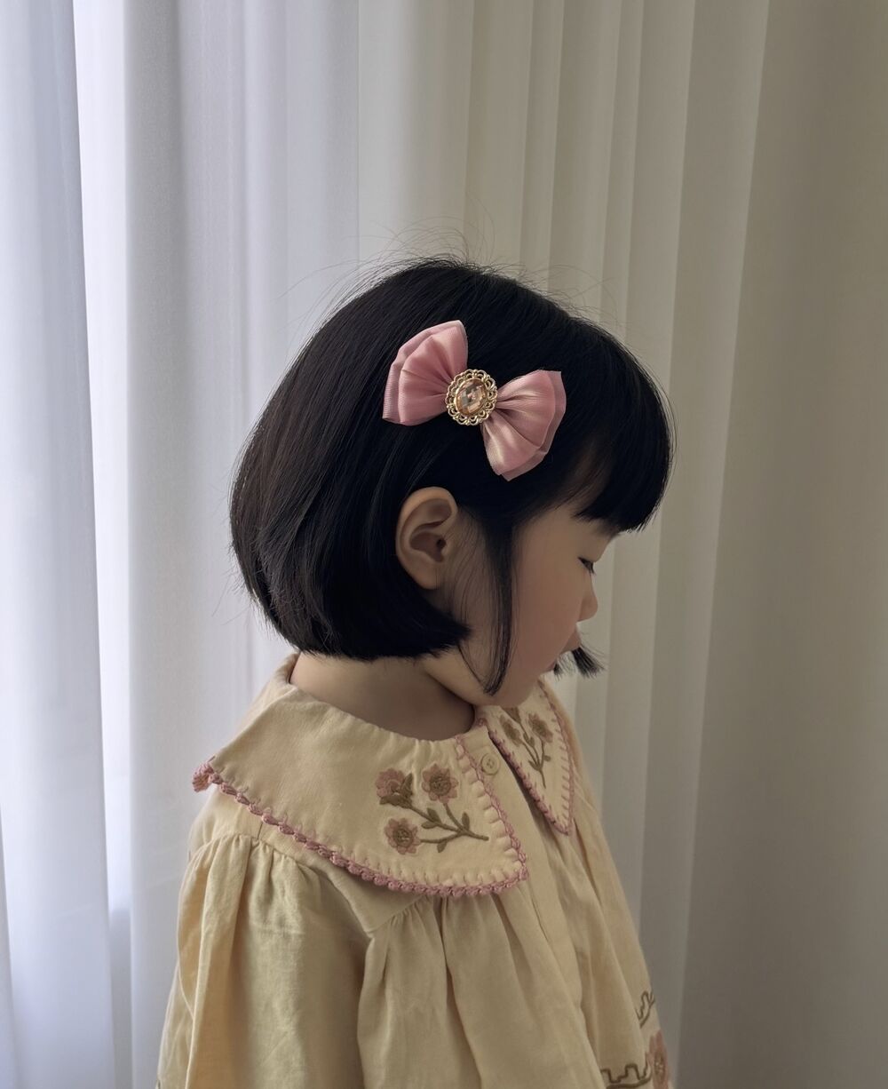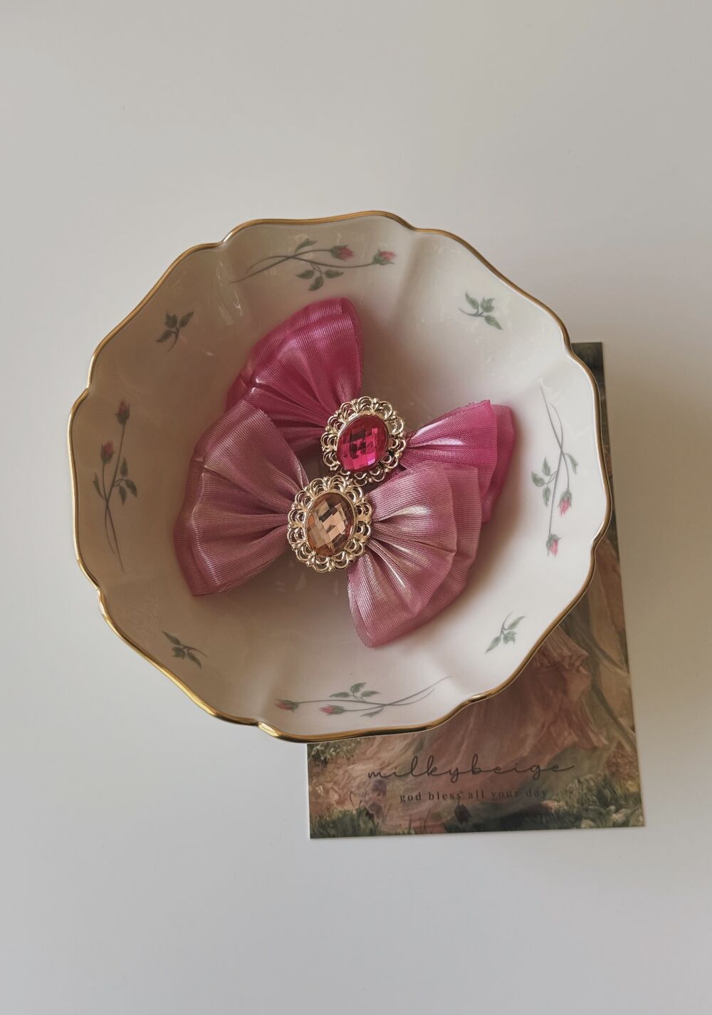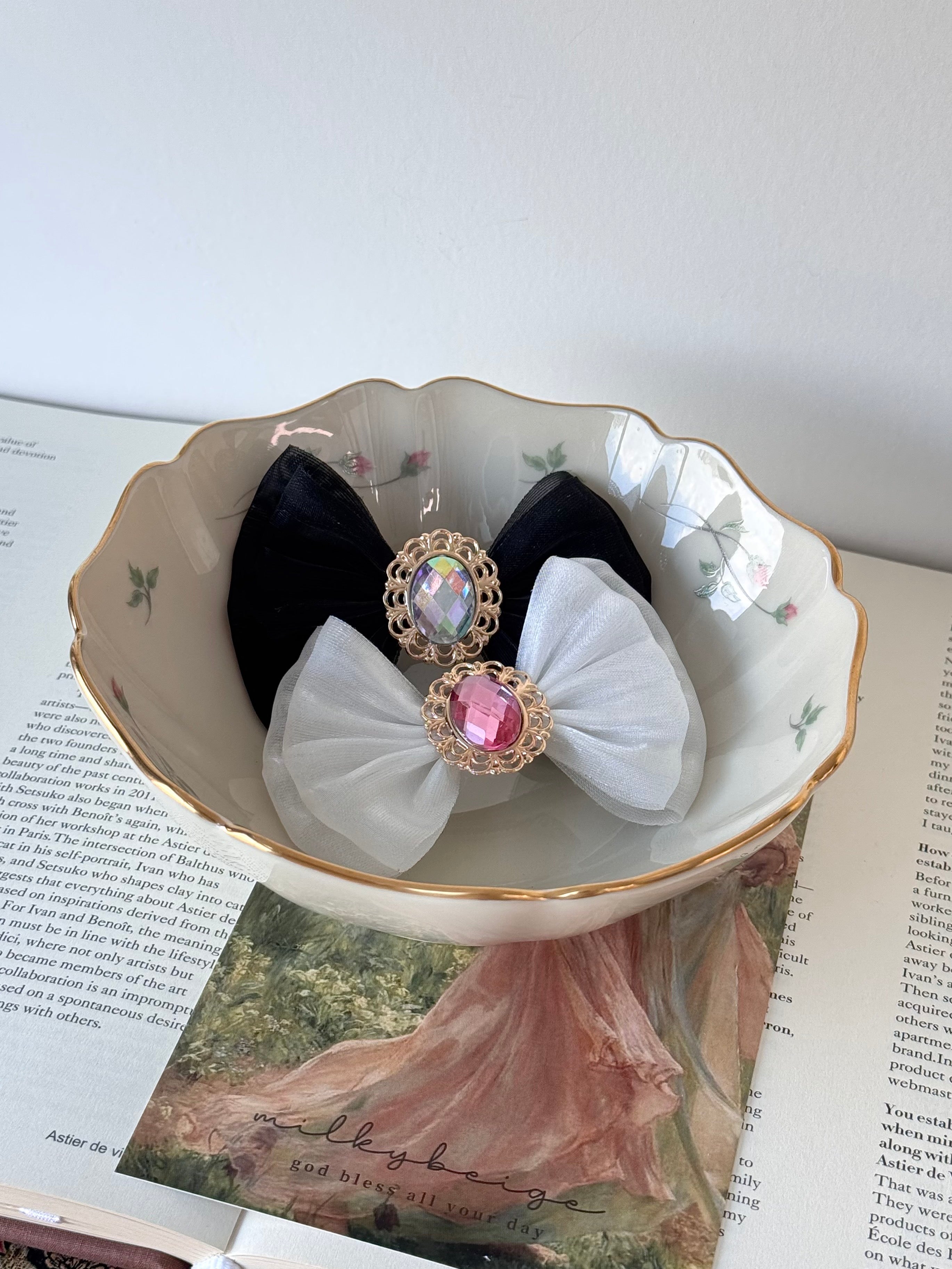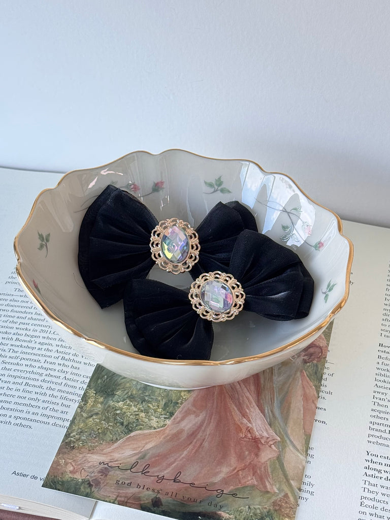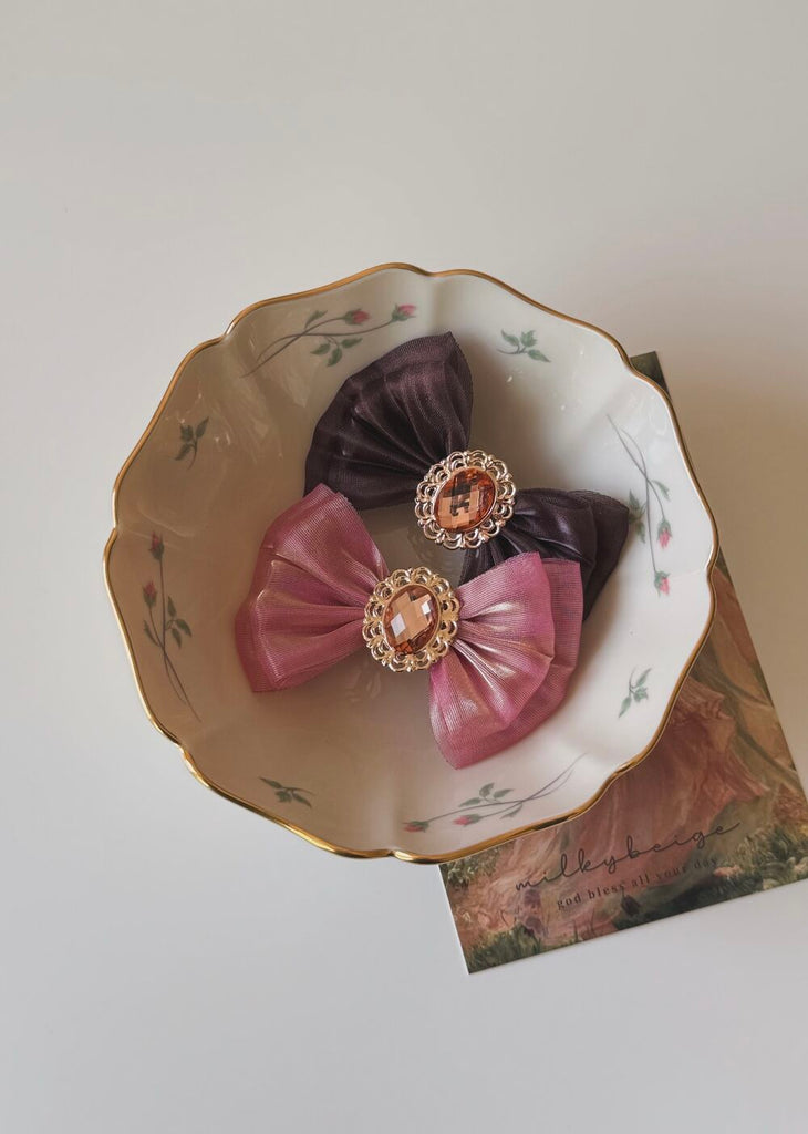 milkybeige, pumpkin ribbon pin 南瓜寶石雙層蝴蝶結髮夾 多色可選
