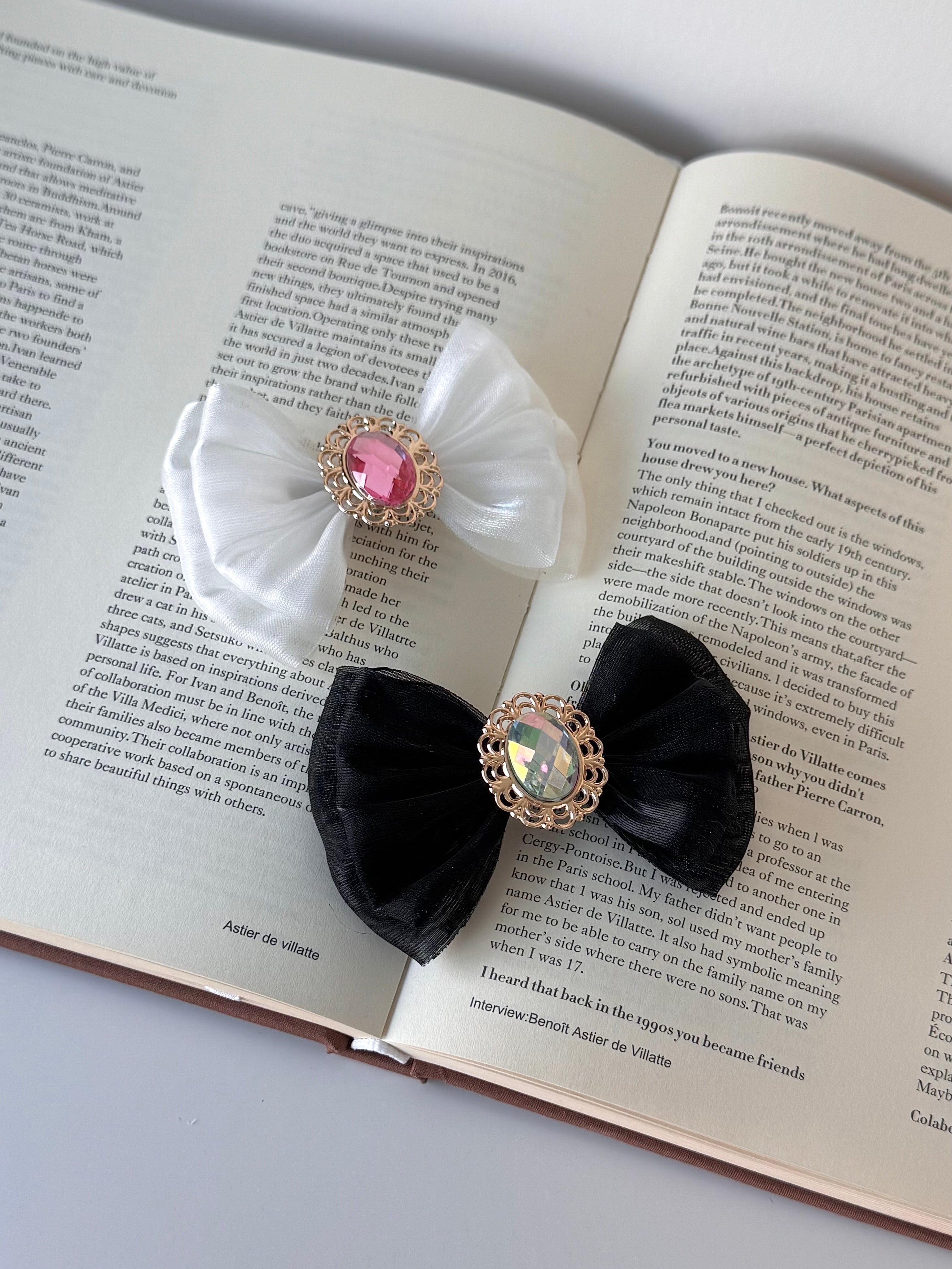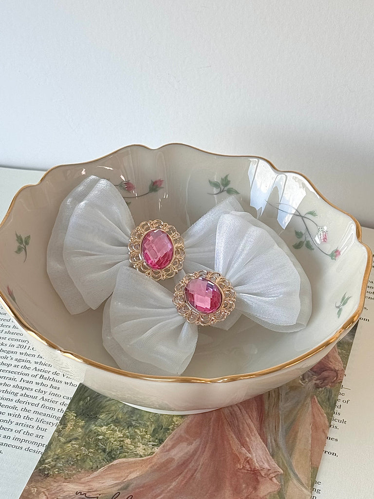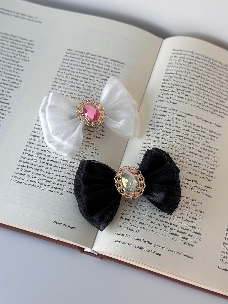 坐上南瓜馬車的邀約,前往夢幻的童話派對!這是款帶有夢幻光澤的蝴蝶結髮夾,層次分明的設計,讓蝴蝶結更飽和可愛。中央鑲著光芒四射的寶石,讓您瞬間化身為童話裡走出來的公主。