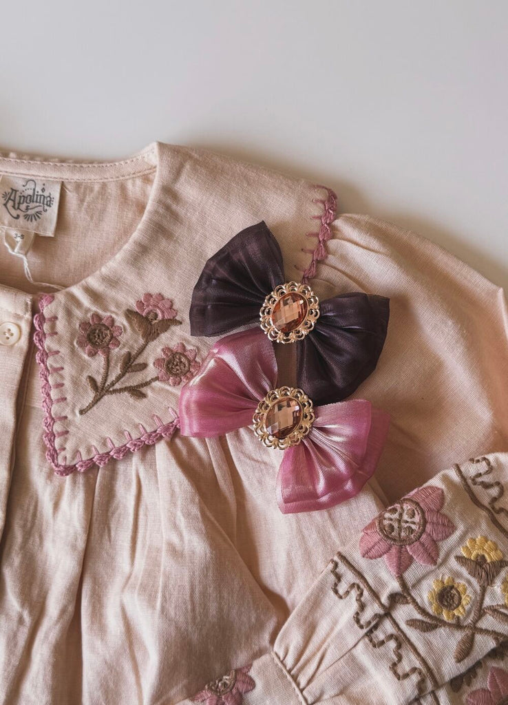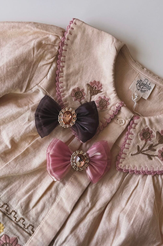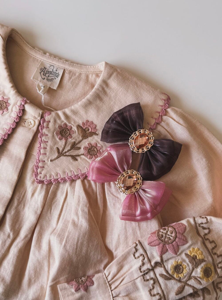 Milky Beige was founded by a mother with a passion for antiques and vintage style. Wanting to create one-of-a-kind accessories for her children, she traveled the world and discovered India, renowned for its embroidery traditions. Using materials she personally sourced and crafted, she began designing embroidered hair accessories. Discover the distinctive sensibility of Milky Beige, where every piece is lovingly crafted with a mother’s touch. Our collection is carefully curated with unique embroidered creations that infuse every detail with this spirit.
