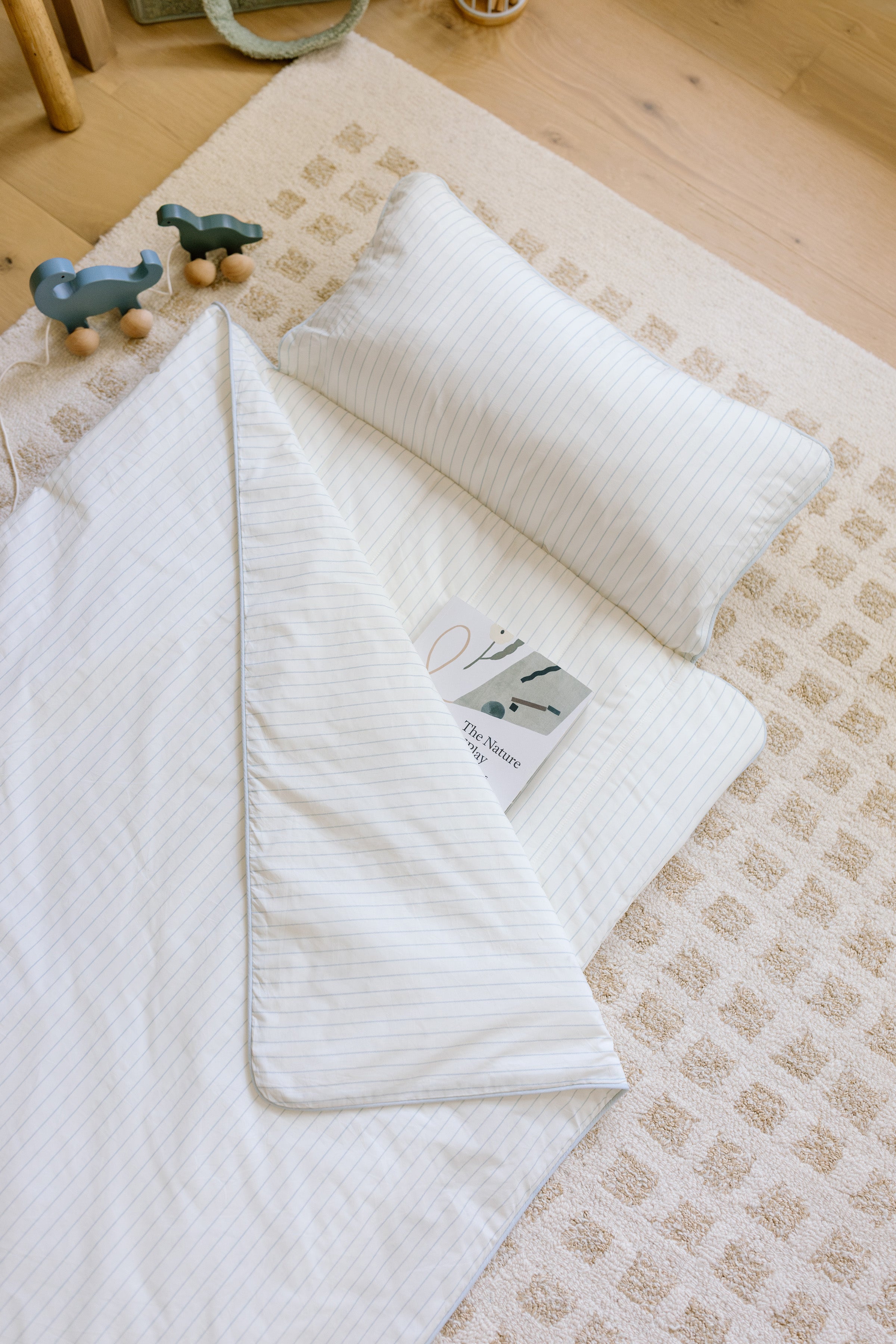 Made from OEKO-TEX® certified, 100% organic cotton with the same 1.5-inch cushioning, it features an all-in-one design: a cushioned pad, sewn-in blanket, and detachable pillow. Lightweight and easy to carry, it’s ideal for kids who move in their sleep or simply love a bit more wiggle room.