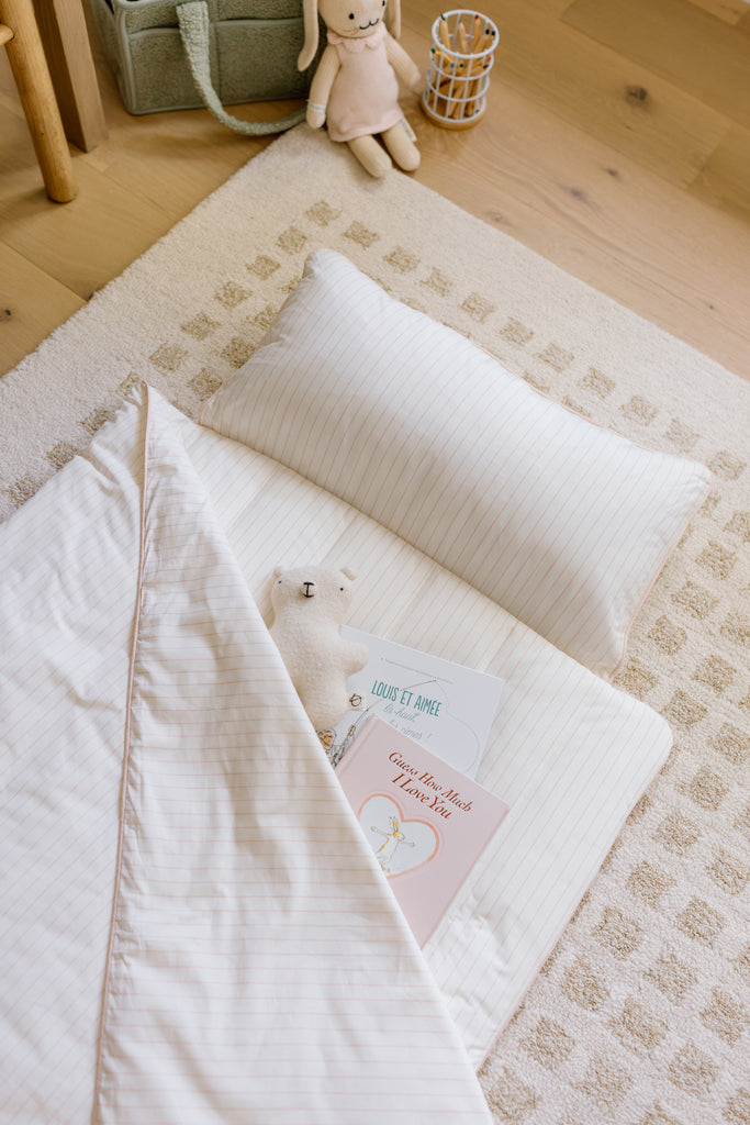 我們的輕便型午睡墊專為實用性而設計, 睡墊、被子和枕頭都縫在一起。它們易於攜帶和折疊,即使對於小小孩來說也是如此方便。