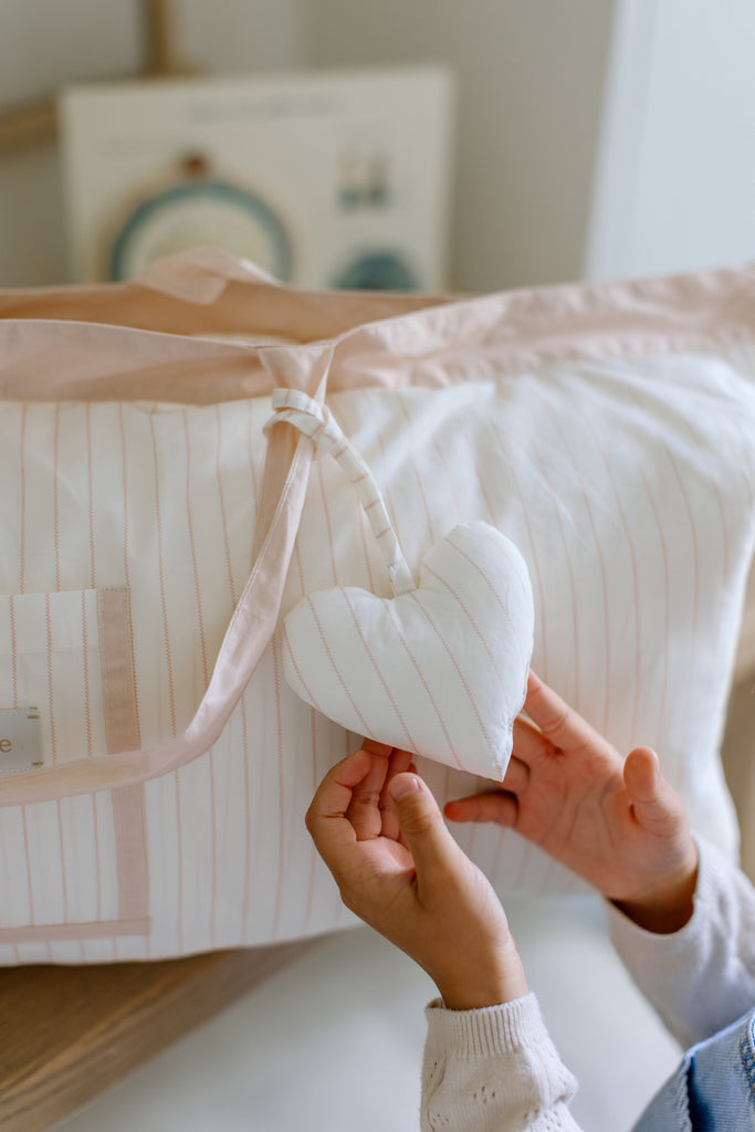 Each set is finished with a soft accent trim and an embroidered Bloomere logo—a refined touch parents love. It also includes a matching carrying bag for a complete, coordinated look, plus a heart-shaped keyring name tag—so little ones can write their name with a pen or marker, making it a sweet, personal detail they’ll treasure.