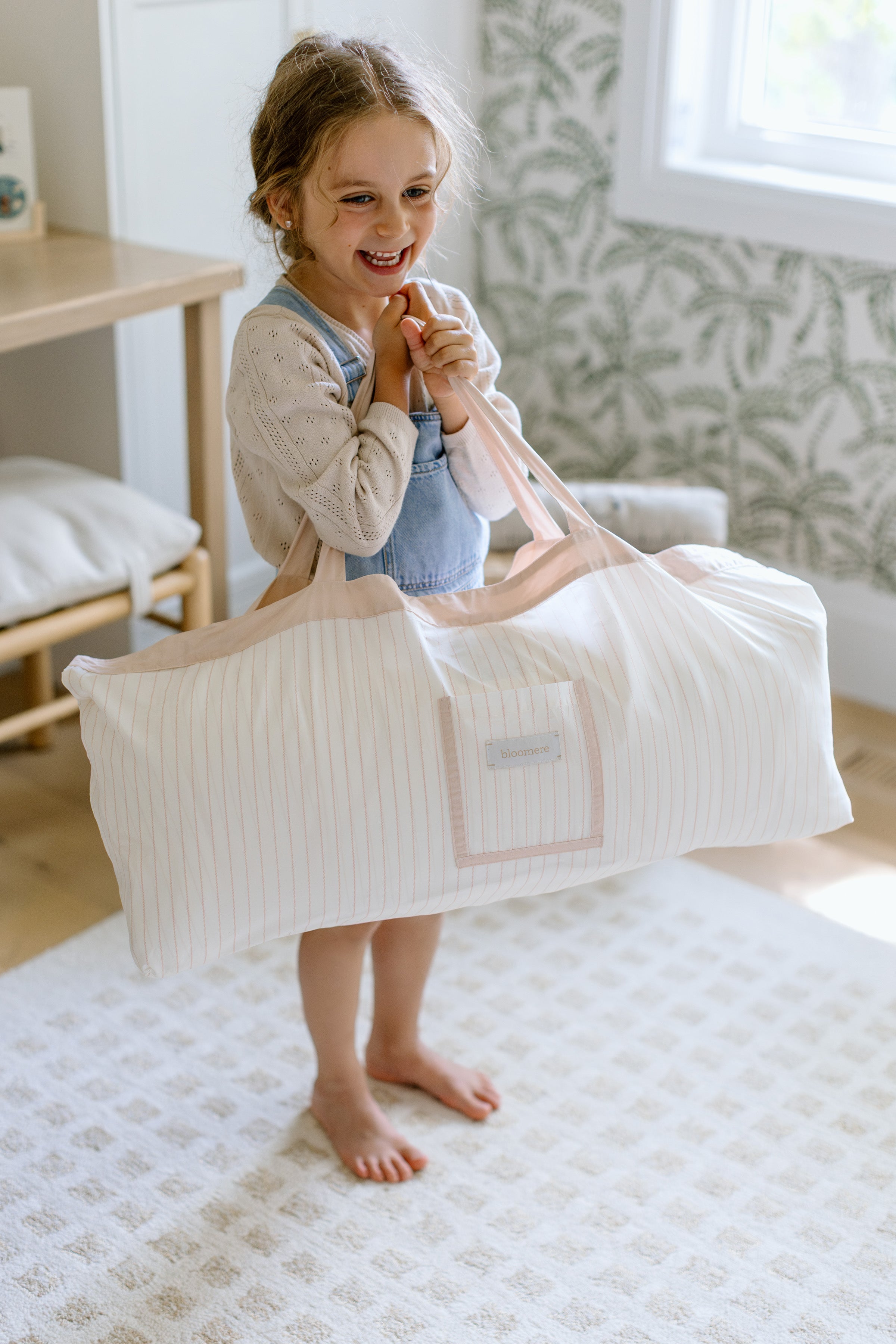 Made from OEKO-TEX® certified, 100% organic cotton with the same 1.5-inch cushioning, it features an all-in-one design: a cushioned pad, sewn-in blanket, and detachable pillow. Lightweight and easy to carry, it’s ideal for kids who move in their sleep or simply love a bit more wiggle room.