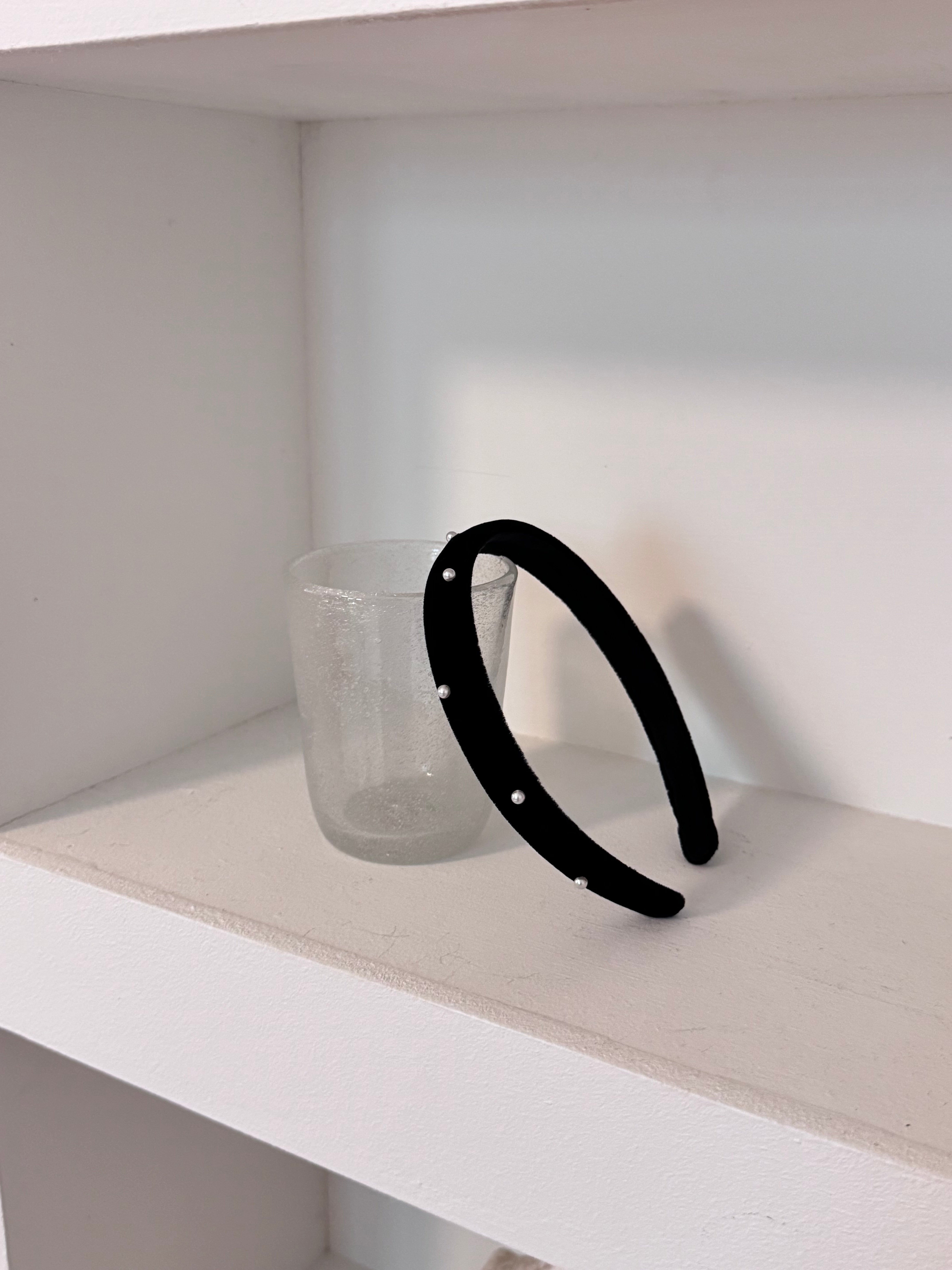天鵝絨珍珠髮箍,這是基本款單品,所以可以搭配任何造型,它帶有防滑墊,能讓髮箍不易滑落的貼心設計。細膩的手工珍珠刺繡工藝,栩栩如生,每一針一線都展現出職人的用心與巧思。散發著低調而奢華的魅力。