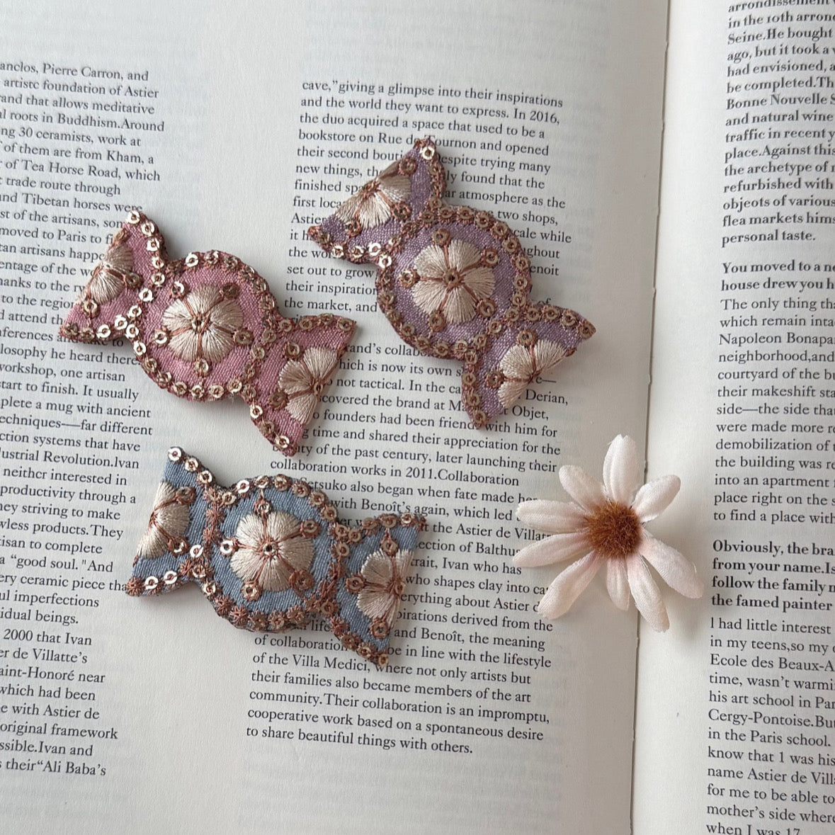 Milky Beige was founded by a mother with a passion for antiques and vintage style. Wanting to create one-of-a-kind accessories for her children, she traveled the world and discovered India, renowned for its embroidery traditions. Using materials she personally sourced and crafted, she began designing embroidered hair accessories. Discover the distinctive sensibility of Milky Beige, where every piece is lovingly crafted with a mother’s touch. Our collection is carefully curated with unique embroidered creations that infuse every detail with this spirit.