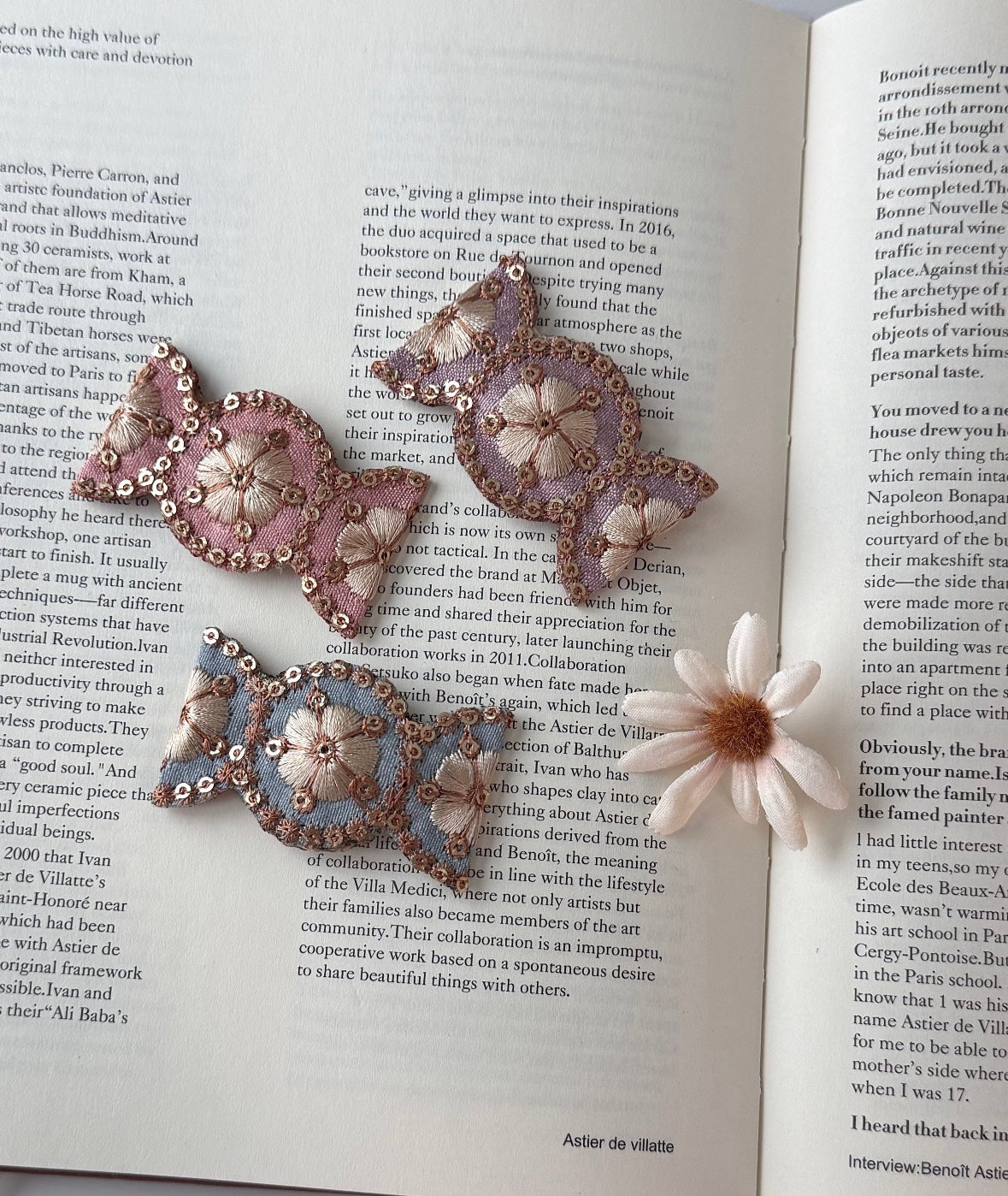 這款獨特的糖果花刺繡髮夾,將復古的印度刺繡工藝與可愛的糖果造型完美結合,為您和寶貝的造型增添一股甜美氣質。細膩的手工刺繡工藝,讓花卉圖案栩栩如生,每一針一線都展現出職人的用心與巧思。每一款都散發著低調而奢華的魅力。