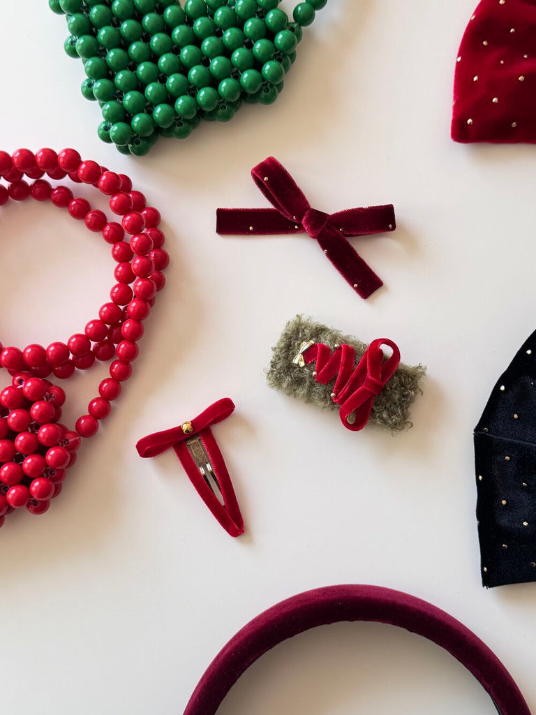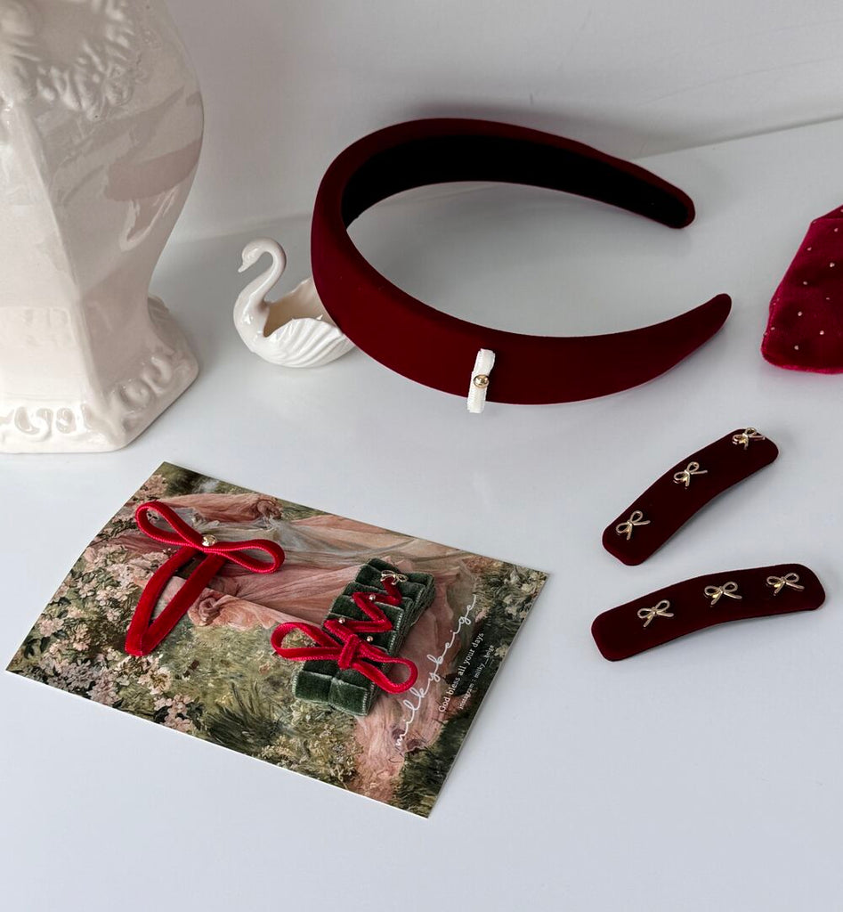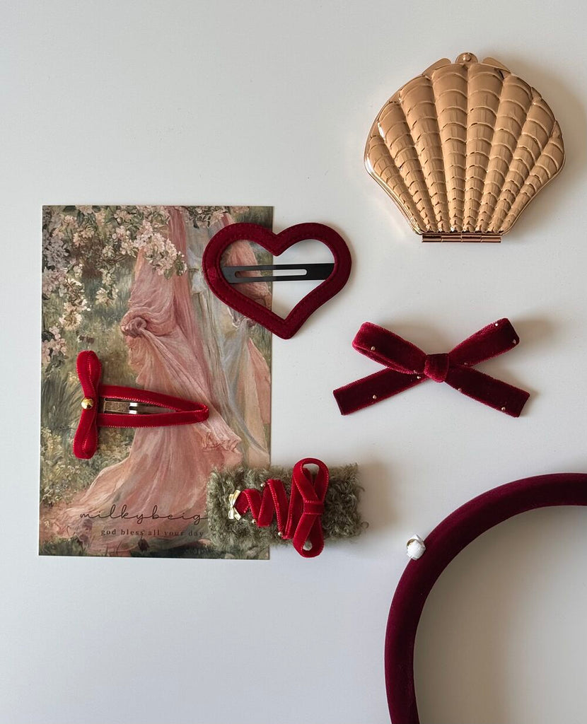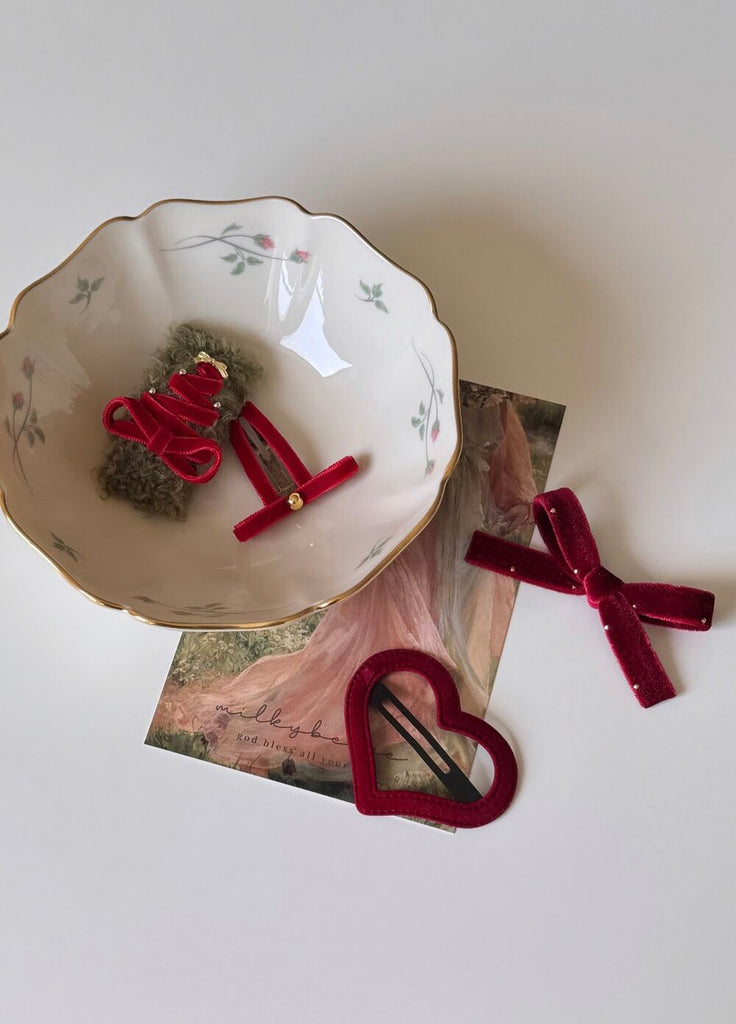 milkybeige, christmas limited set - Red 聖誕限定天鵝絨T蝴蝶結髮夾套裝 2入一組 聖誕紅