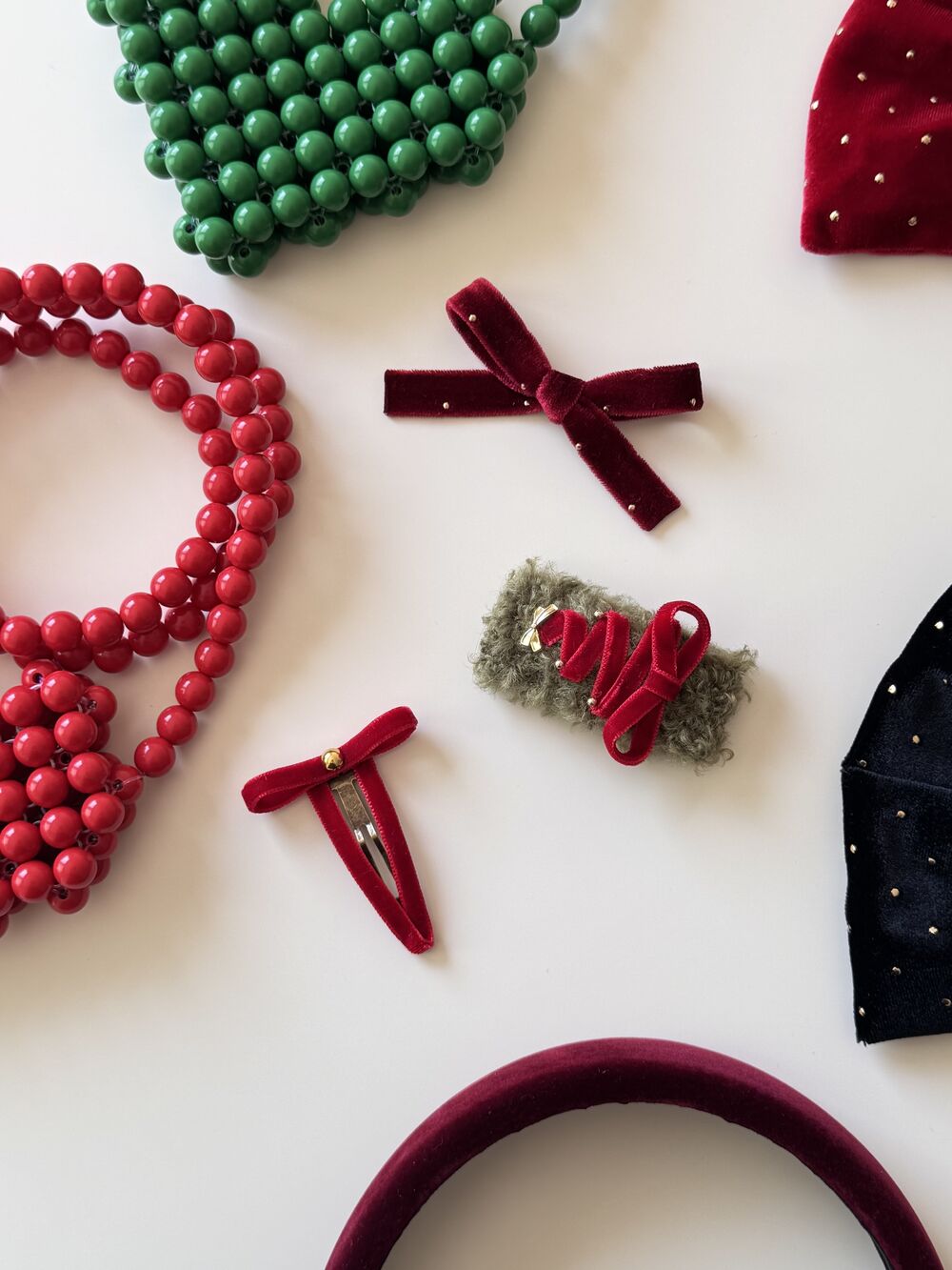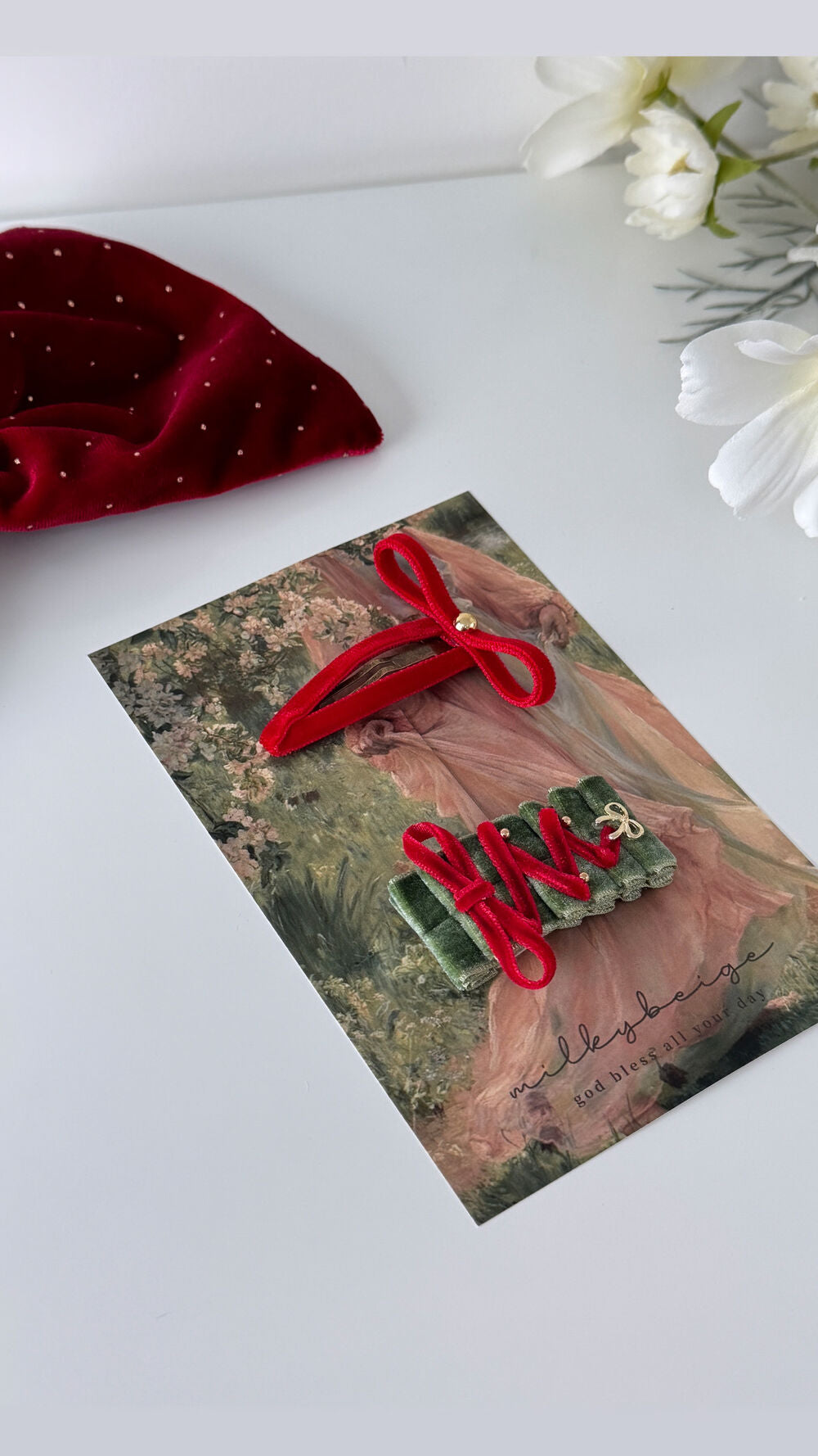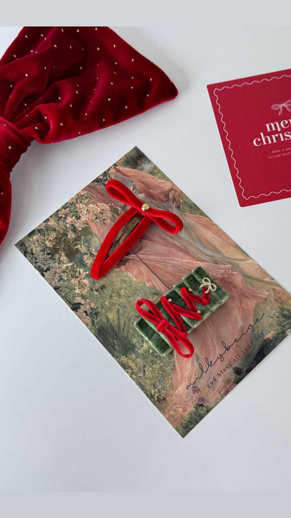 milkybeige, christmas limited set - Red 聖誕限定天鵝絨T蝴蝶結髮夾套裝 2入一組 聖誕紅